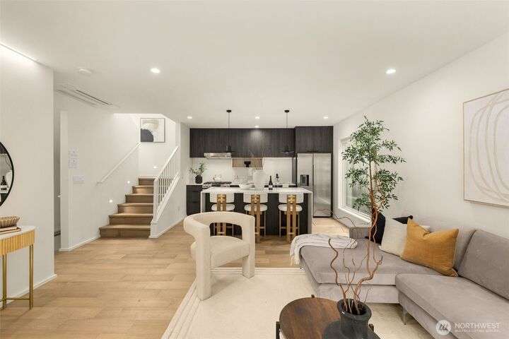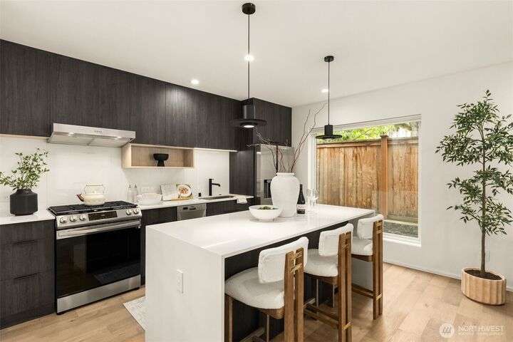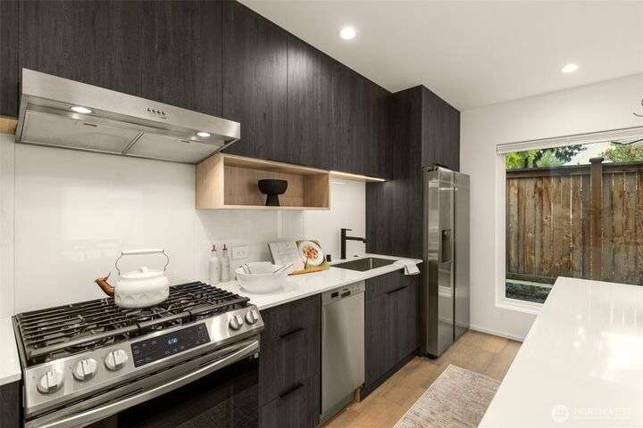 Welcome to the Matchwood Homes Collection in the heart of Seattle! This residence features premium features you simply won't find in other homes - this is one of a kind. Main floor living boasts custom picture windows, high-end fixtures/appliances, an expansive chef's kitchen +island, discreet powder bath & gorgeous warm-toned hardwood floors. Upstairs, enjoy a light-filled primary suite, complete with a serene balcony privately oriented away from the street overlooking trees. Downstairs resides a separate guest bed & bath or additional media space that is ready for you to make your own. 1 block from exceptional local eateries, artisan coffee & pastries, PCC grocery & more! Developed, Designed, and Constructed by Collaborative Companies.