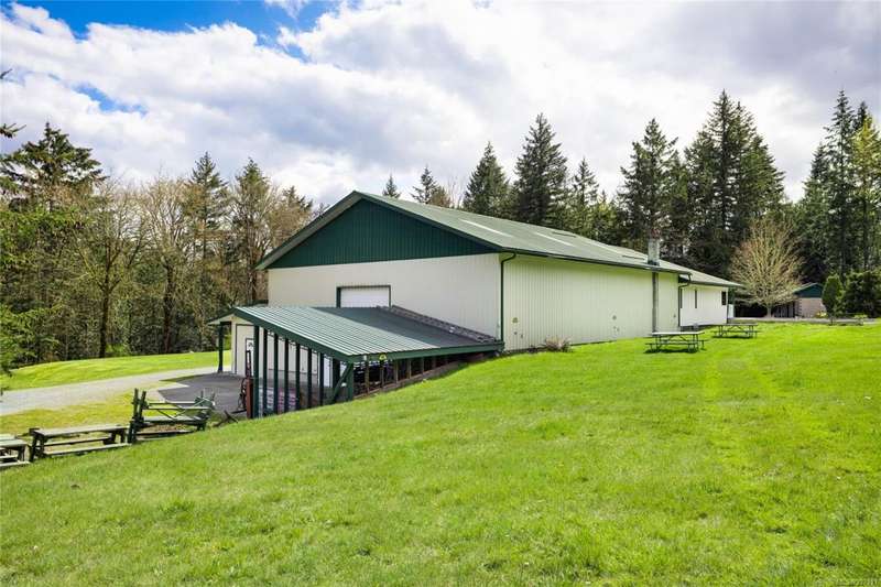 Private Riverfront estate offering over 23acres of lush lawns, forest and beautiful beach areas with great swimming holes on the Chemainus River. The home is over 3600sqft 2 beds 2 bath with a large contained 1 bed 1 bath suite. Abundant storage space and a massive 3100sqft attached workshop/warehouse with overheight garage door access provides an ideal spot for every toy imaginable! The expansive South facing deck is accessed directly off the main living area enjoying all day sun and a perfect spot for outdoor family dining. There are multiple outbuildings, washrooms and laundry facilities which would make hosting family campouts and reunions a breeze. Formally operated as the Chemainus River Campground, the property is being sold as is where is due to a ruling requiring operations to cease due to zoning. Come and view this one of a kind property today!
