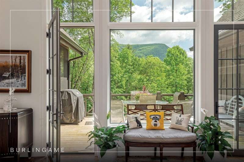 Built in late 2022, this beautiful home offers an incredible opportunity to live in the desirable Burlingame Country Club. Situated on a level-entry lot, it features a fenced and landscaped yard for added privacy and curb appeal. An abundance of windows fills the modern open floor plan with natural light and provides stunning year-round views of Hogback Mountain. The chef's kitchen is a dream, complete with high-end appliances and finishes. A soaring stone fireplace serves as the centerpiece of the inviting living area, perfect for relaxing or entertaining. The primary suite is a personal sanctuary with a luxurious bathroom, while two additional ensuite bedrooms offer comfort and privacy for guests. A finished room with a full bathroom above the garage is ideal for an office or overflow accommodations. Enjoy mountain living on the screened porch or open deck, designed for relaxation and taking in the views. Additional features include a whole-house generator and numerous thoughtful upgrades throughout. Don't miss the chance to own this remarkable home! Membership to Burlingame Country Club is by invitation, offering access to world-class golf, tennis, fitness, dining, and a welcoming social calendar - but is not required for ownership.