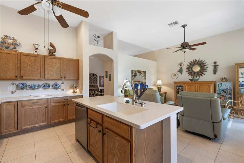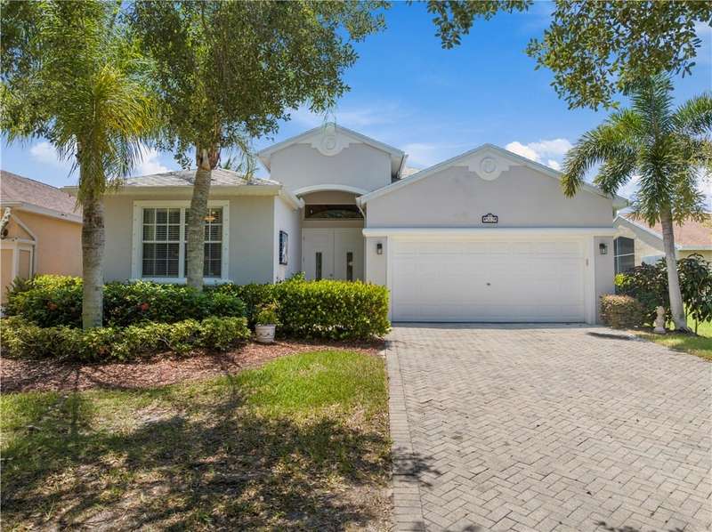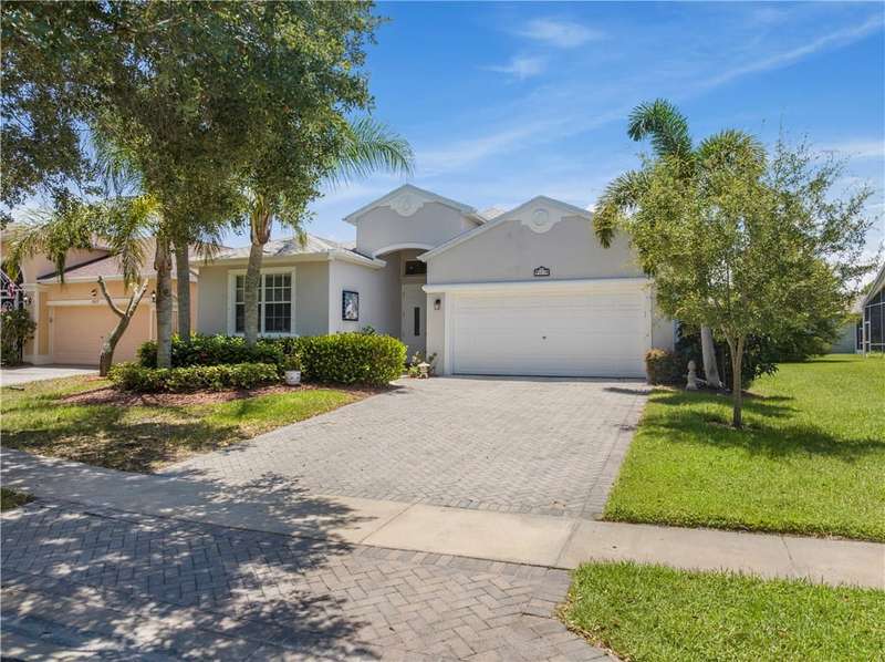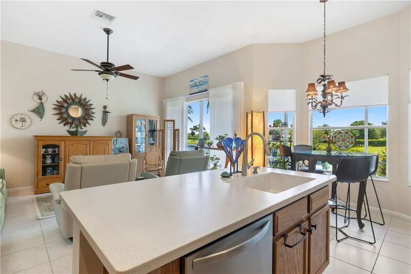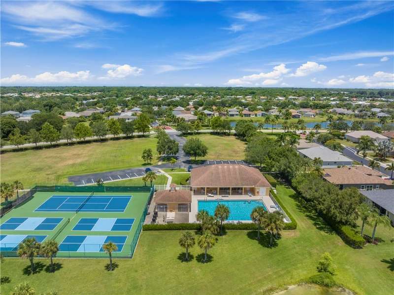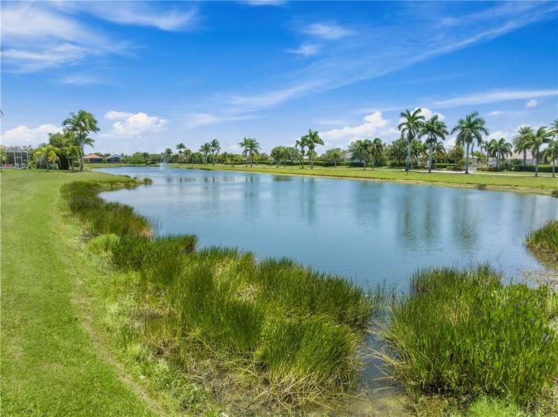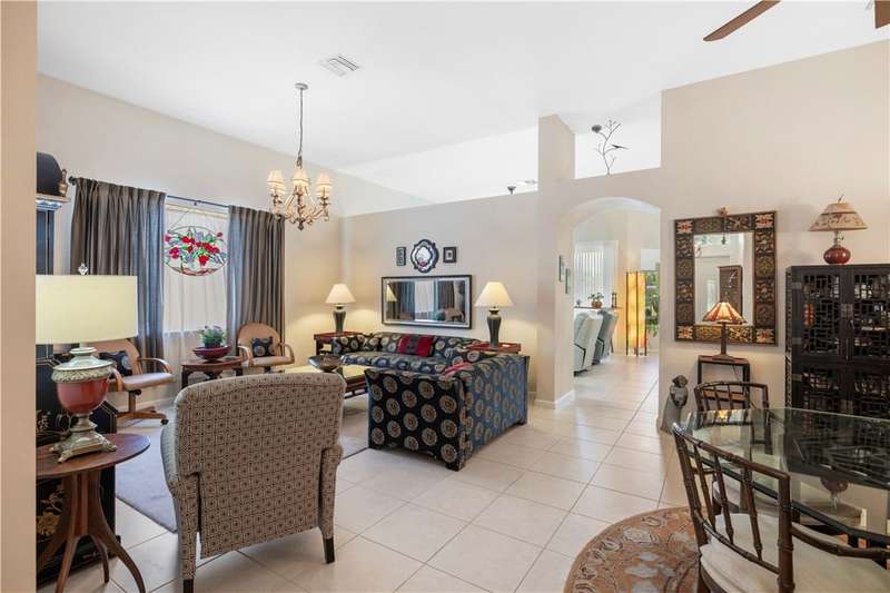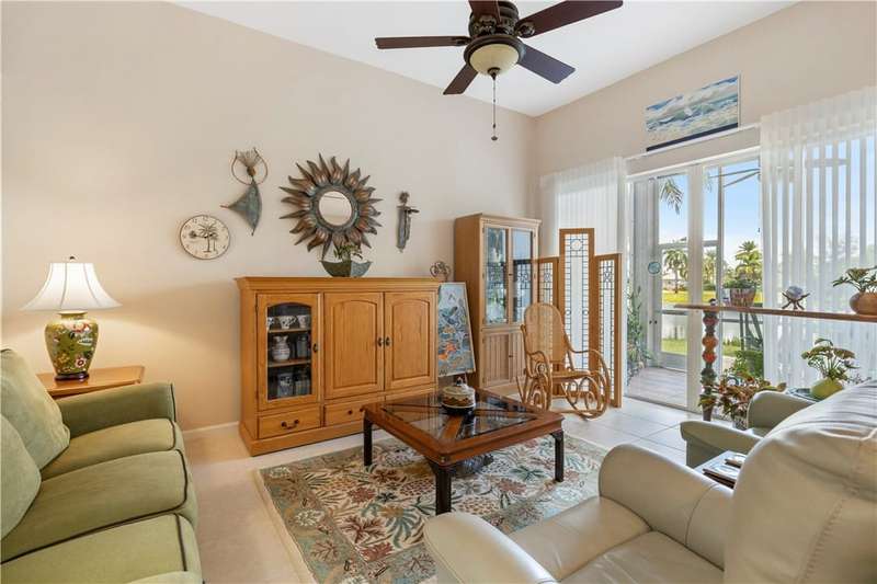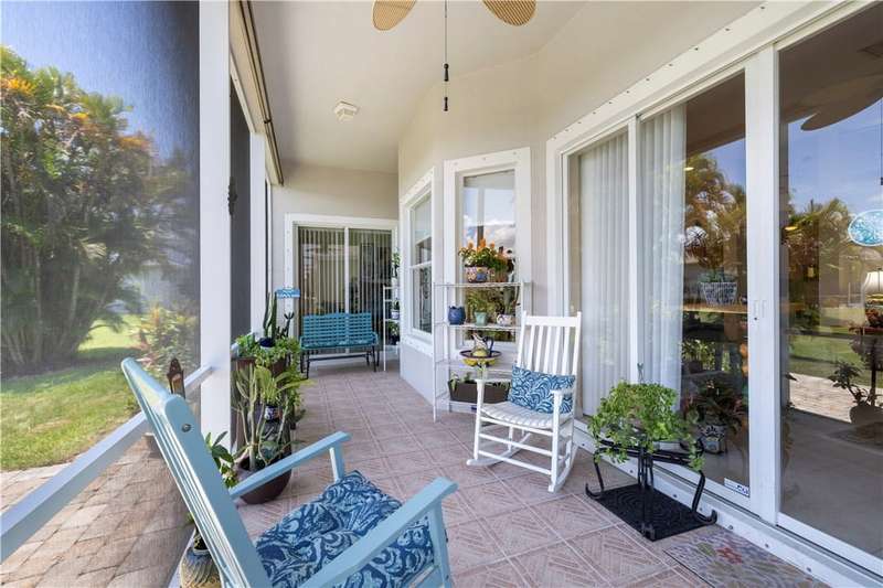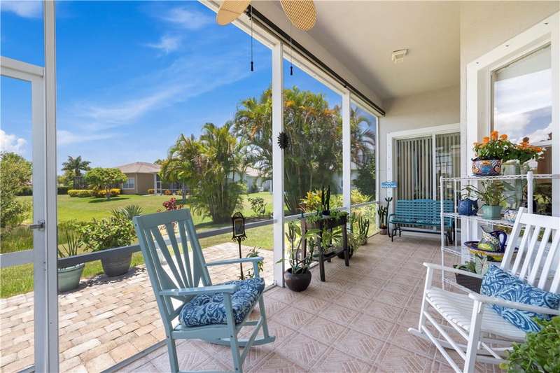 Welcome to this lovely home located on Oak tree lined street w/ sidewalks. 3 bedroom, 2.5 bathrooms, Large screened porch. Den has electric curtains, volume ceiling, grand foyer entrance, new roof, newer appliances, located with lovely water views. This home is a special peaceful oasis with lots of perks, community pool. In house generator, gas stove, worktable, shelves and cupboard remain in garage. This family has already started packing and ready to hand the keys over to the new owner. Concrete block home offers comfort and durability. Easy to show. room sizes appx. & subject to error.