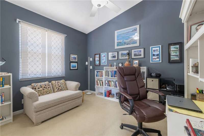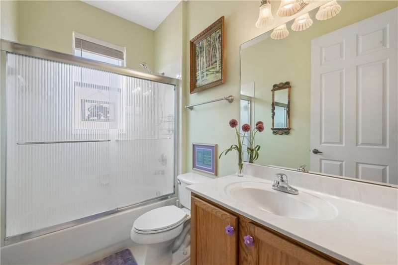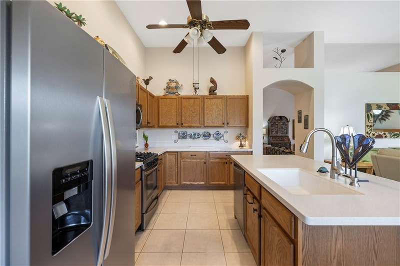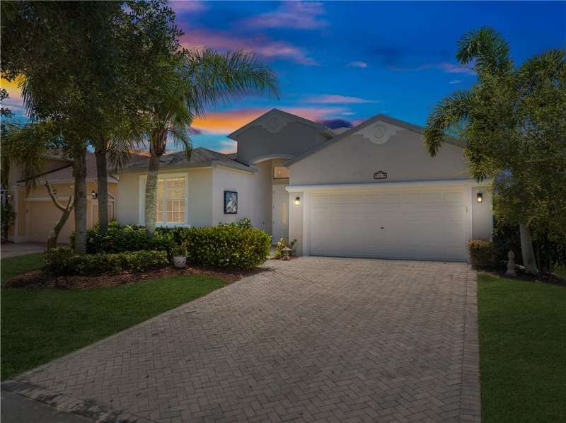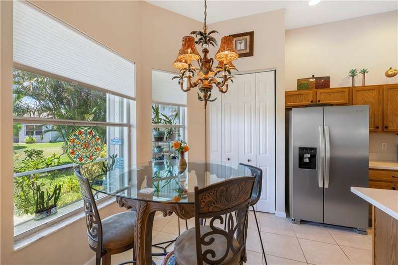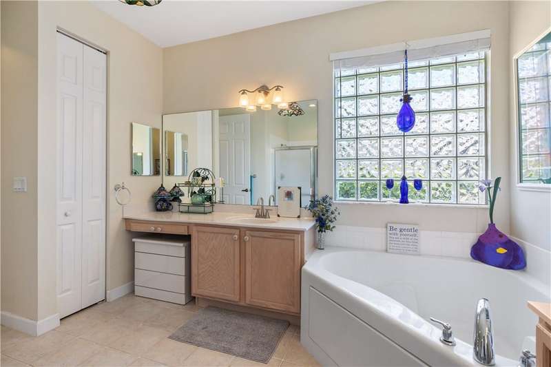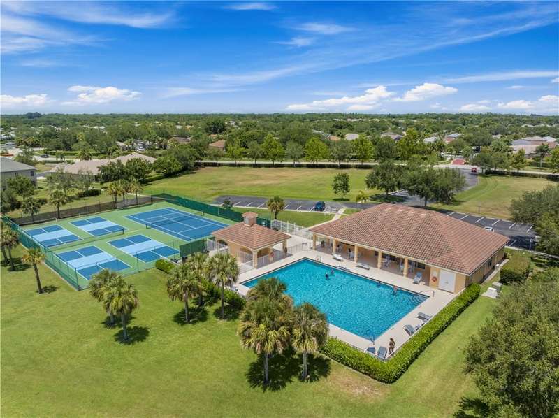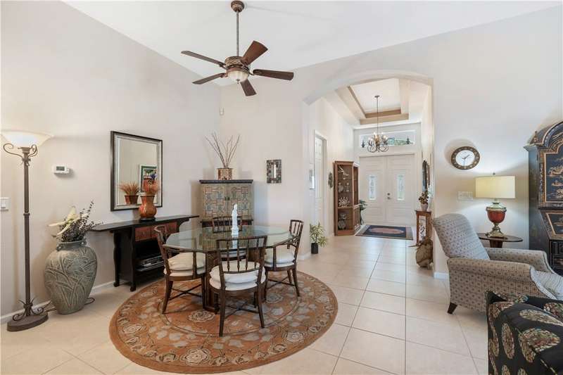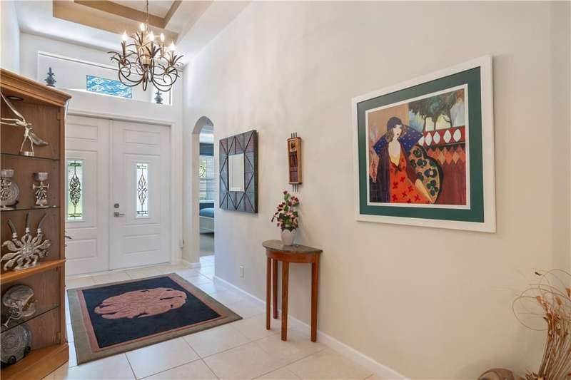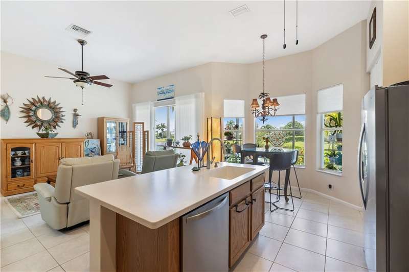 Welcome to this lovely home located on Oak tree lined street w/ sidewalks. 3 bedroom, 2.5 bathrooms, Large screened porch. Den has electric curtains, volume ceiling, grand foyer entrance, new roof, newer appliances, located with lovely water views. This home is a special peaceful oasis with lots of perks, community pool. In house generator, gas stove, worktable, shelves and cupboard remain in garage. This family has already started packing and ready to hand the keys over to the new owner. Concrete block home offers comfort and durability. Easy to show. room sizes appx. & subject to error.