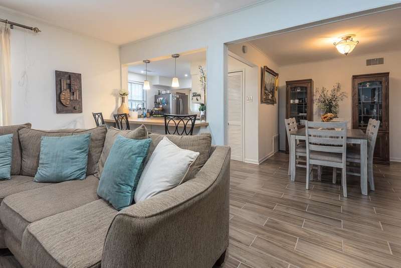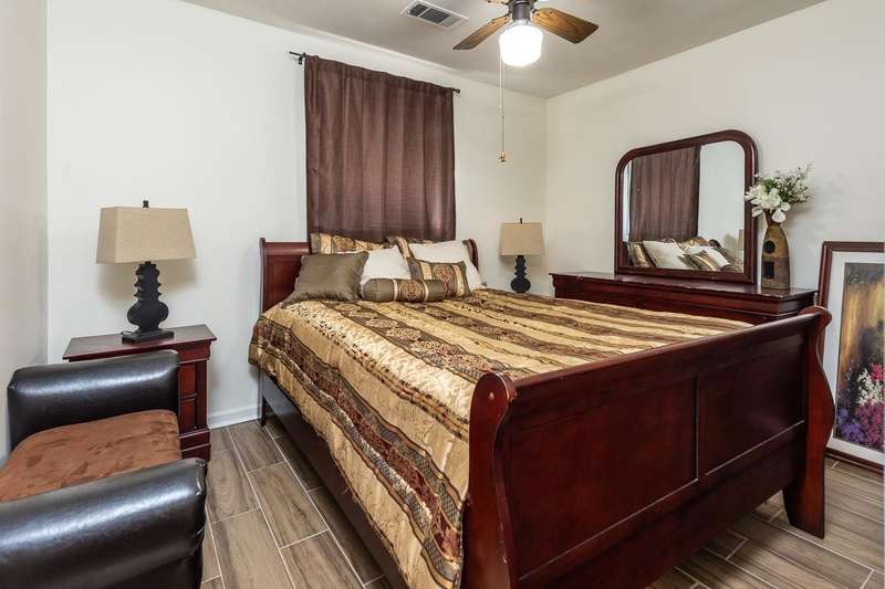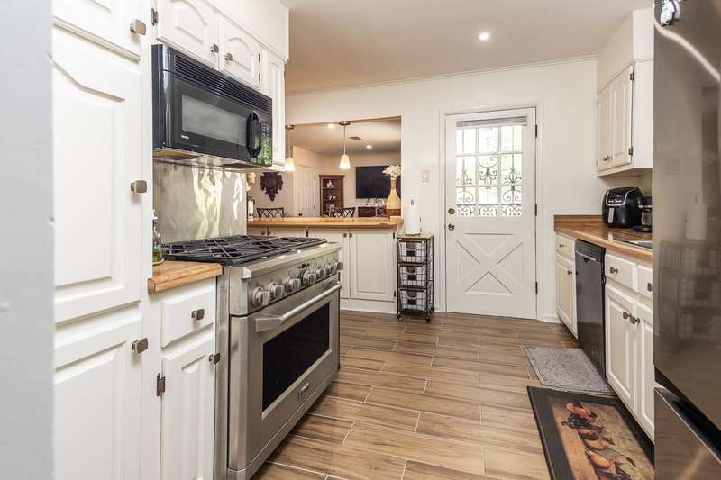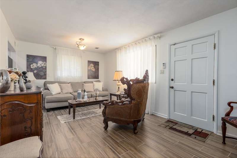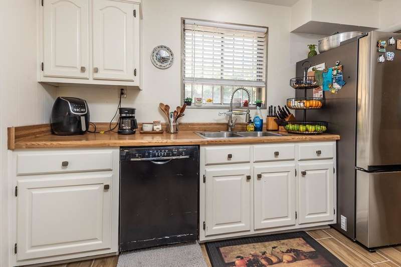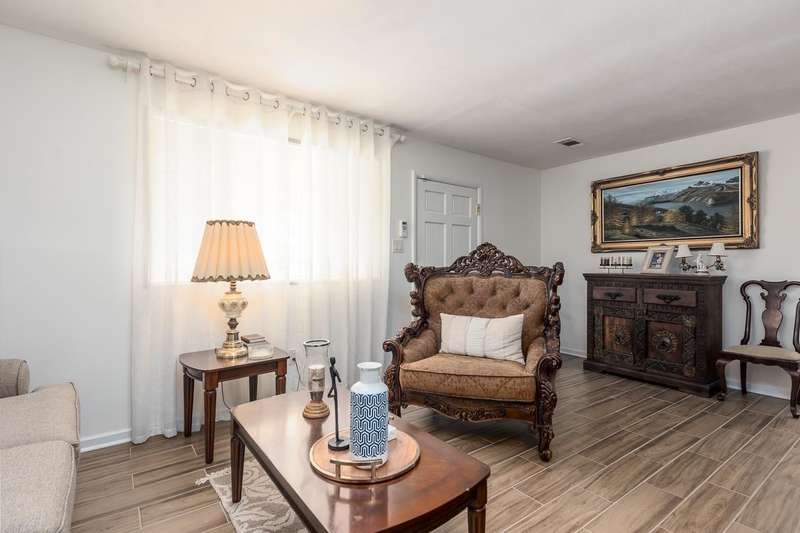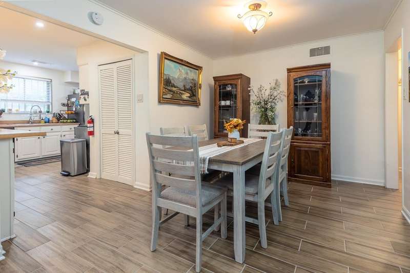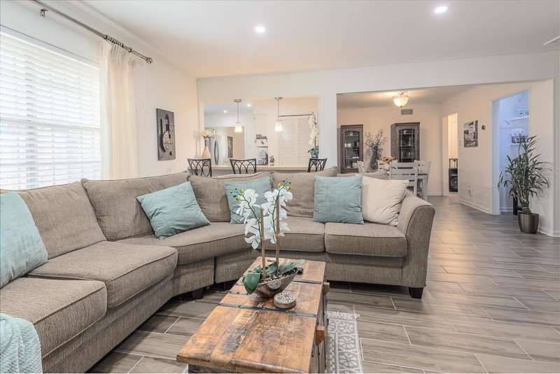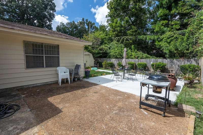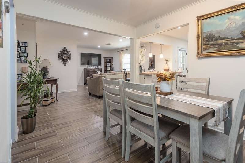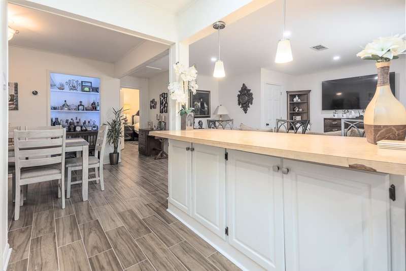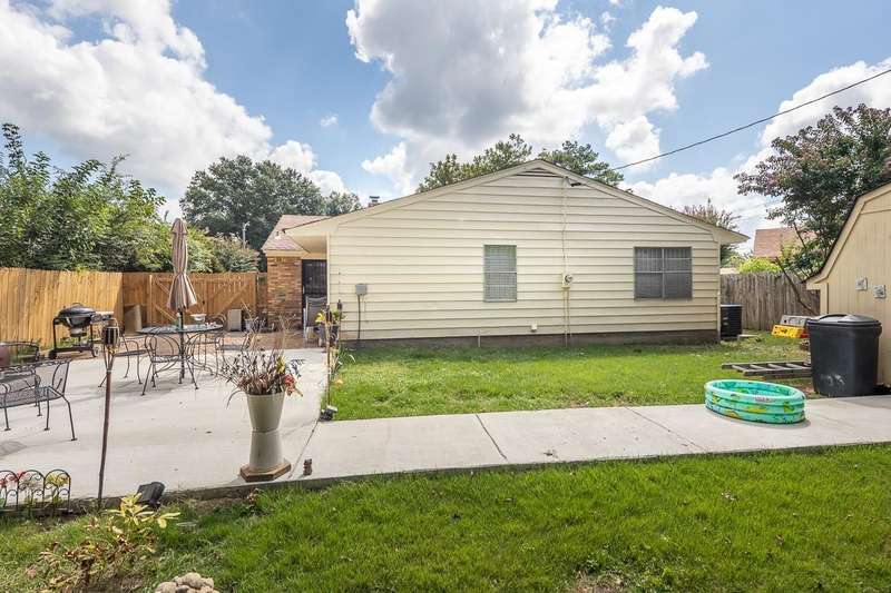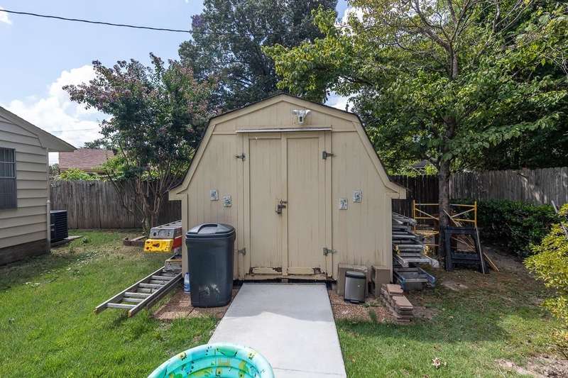Totally renovated home is beautiful. Everything fresh and new. 3 Bedrooms and 2 Baths with Living Room, Dining Room and Den. New 16x9 tile floors, Loads of kitchen cabinets, breakfast bar, Smooth Ceilings, All New light fixtures, Dry Bar in Dining Room, New kitchen sink and plumbing fixtures, Master Bath added and second bath renovated. Separate Laundry Room! New Toilets, New Water Heater, New Electric receptacles and switches, 2 closets in Primary Bedroom, Partial new fence. Large new patio and back yard made for entertaining. Large storage building/Workshop.