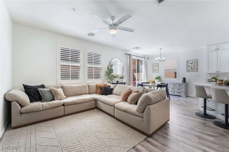 You don’t want to miss this immaculate home nestled in one of Henderson most sought after gated communities. This move in ready home screams pride in ownership. The lower level has a spacious open floor plan is upgraded throughout. Features include: New Luxury vinyl flooring, plantation shutters, brand new stainless steal appliances, recessed lighting and more. The garage has an epoxy finish and is equipped with a 220 Amp outlet. The primary features well designed walk in closet and a thoughtfully designed bathroom. The community amenities are endless too… theres just too much to list!! oh, did I mention Paid Off Solar!? Come check this beauty out and find out for yourself!