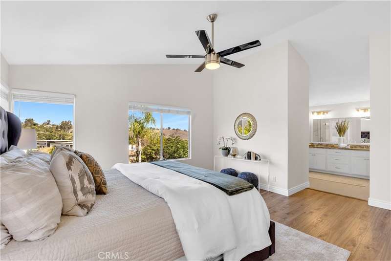 Nestled in the highly sought-after Chatelain Estates of Laguna Niguel, this elegant home offers sweeping sunset, valley, and city lights views from the kitchen, family room, dining room and primary suite. With a rare street-to-street lot, the property features one of the largest backyards in the neighborhood--complete with a built-in six burner BBQ, cozy fireplace, water feature, fruit trees, and ample space for a pool. Just minutes from world-class beaches, resorts, shopping, and top-rated schools, the location is as desirable as the home itself. * Inside, the open, light-filled floor plan is enhanced by fresh designer paint, new chandeliers, and a chef's kitchen with granite counters, stainless steel appliances, and double ovens. The primary suite boasts a spa-like bath with soaking tub, seamless glass shower, and dual sinks, granite counter tops. A downstairs bedroom with full bath provides flexibility for guests, while a spacious upstairs bonus-size bedroom adds even more living options. * Additional highlights include plantation shutters, mirrored wardrobes, a cozy fireplace in family room, and a 3-car garage with high ceilings for abundant storage. Recent updates include a newer water heater, water regulator, and garbage disposal--making this home move-in ready in one of Laguna Niguel's most prestigious communities.