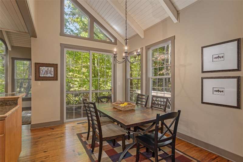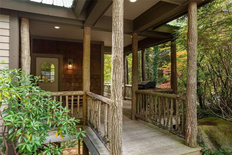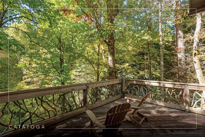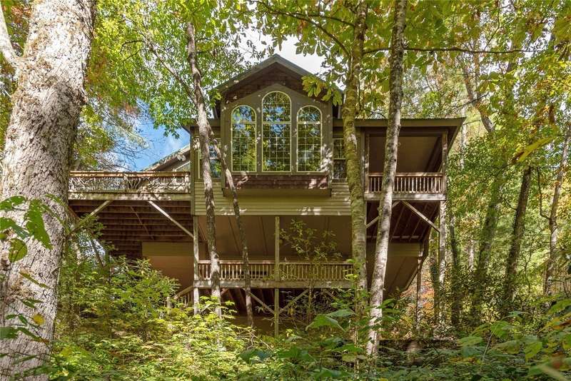 Nestled among the trees and overlooking the pristine waters of Indian Creek, this charming four-bedroom home - affectionately known as "Babbling Brook" - offers a peaceful, turnkey retreat in the heart of the coveted Catatoga community. With a strong rental history and being sold fully furnished, this well-maintained property is ready for immediate enjoyment and income potential. Indoor and outdoor living blend seamlessly here. Spacious decks on two levels are ideal for unwinding and listening to the soothing sounds of rushing water. Inside, the main level features an inviting primary suite with its private balcony - a perfect spot for morning coffee with creek views - alongside a guest bedroom and bathroom, a cozy living room with a stone fireplace and convenient gas logs, an open kitchen and dining area, and a laundry room. Upstairs is a third bedroom and bathroom, while the lower level offers even more flexible space with a fourth bedroom, a full bathroom, and a private porch leading down to the stone pathway with easy creek access. Catatoga's amenities enhance the serene environment, including Lake Catatoga with its charming boathouse, a peaceful trout stream, and private hiking and biking trails with waterfalls to explore along the way. Beyond the gates, enjoy The Plateau's abundance of shopping, dining, and entertainment in Cashiers and Brevard, both just 20 minutes away. Asheville and Highlands are less than 45 minutes away, providing convenient access to the Asheville Regional Airport for a quick escape from the heat and hustle of everyday life or an opening to embrace Western North Carolina's outdoor adventures. This home is a rare opportunity to experience rustic elegance, comfort, and connection to nature - an idyllic mountain getaway in one of the region's most beloved communities. Don't miss the chance to own beautiful Babbling Brook.