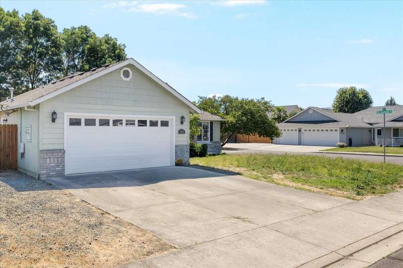 Prime corner lot opportunity in desirable Central Point! This spacious 1,800 sq ft split floorplan home features 3 bedrooms + dedicated office, 2 bathrooms, kitchen with granite countertops and beautiful cabinets, plus abundant storage throughout. A convenient laundry room adds functionality, while the fully fenced backyard provides privacy and security. The finished 2-car garage includes pull-down attic storage for maximum organization. This home sits in a great location within a sought-after neighborhood with easy commute access to amenities. In an uncertain market where inventory is limited and prices are high, this property delivers incredible value. Don't miss this rare chance to secure premium finishes and quality square footage at an unbeatable price point. Call to schedule your showing today!
