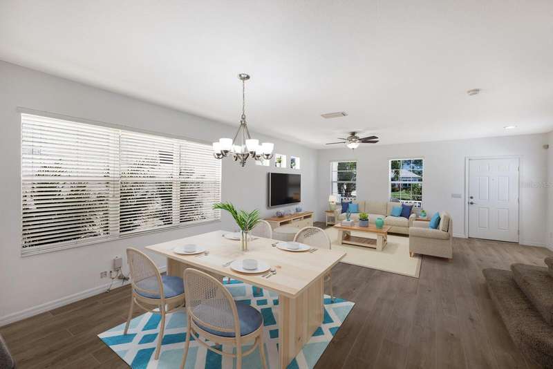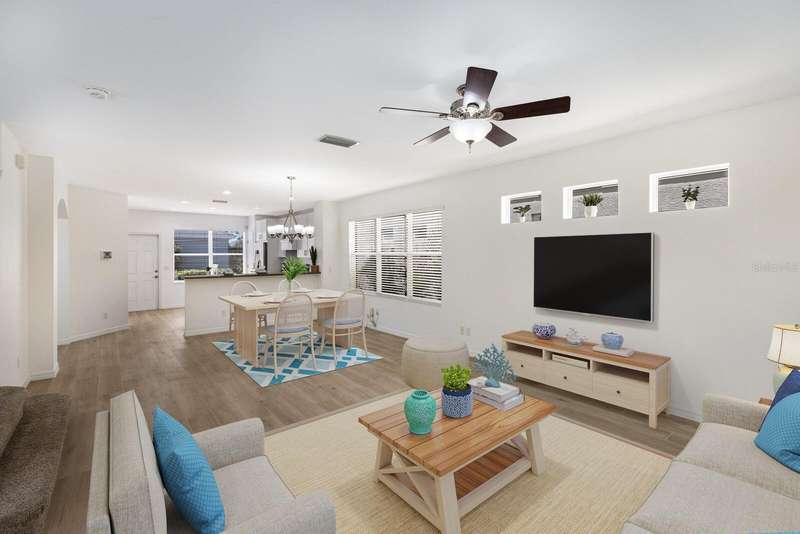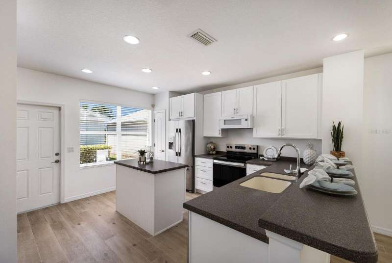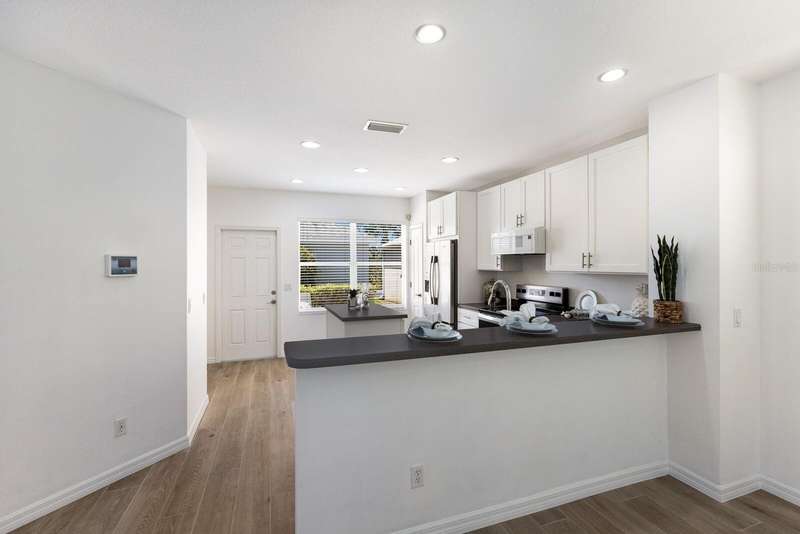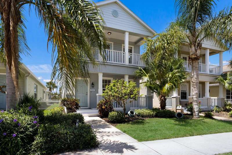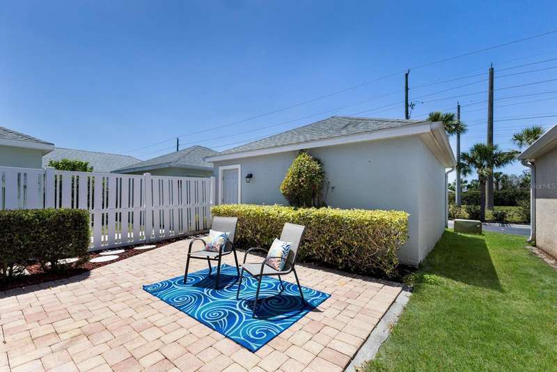 One or more photo(s) has been virtually staged. BRAND NEW ROOF! Welcome to "Gull Cottage," a charming Key West-style 3-bedroom, 2.5-bath home nestled in the gated River Sound community. This thoughtfully designed two-story residence offers 1,680 square feet of airy living space, solid construction, and equipped with metal hurricane shutters for added peace of mind. The unique layout features spacious bedrooms with walk-in closets, a rear-entry 2-car garage, and yard that can be fenced between the home and garage—ideal for pets, gardening, or relaxing in a hammock. A brick-paved patio adds privacy and beauty to the backyard retreat perfect for a bbq grill, outdoor dining, or a cozy firepit. The downstairs features BRAND NEW TILE FLOORING! The kitchen is a host’s dream, featuring NEW KITCHEN CABINETS, Corian countertops, stainless steel appliances, center island, pantry, breakfast bar, and tile flooring that flows into the open great room. A downstairs powder room and two outdoor patios make entertaining and everyday living easy and comfortable. Upstairs, the private primary suite has a tall vaulted ceiling, an en-suite bath with dual sinks & a walk-in shower, and its own balcony!—perfect for unwinding. Two additional guest bedrooms share a well-appointed bathroom, each bedroom features ceiling fans. Enjoy RESORT-STYLE community amenities such as a heated pool, spa, outdoor shower, walking trails, fishing pier, two dog parks, and mature landscaping—all for a low quarterly HOA fee of $435. Pet-friendly and conveniently located just a mile from I-75 where plenty of shopping & restaurants are at your fingertips within 2 miles (the Costco/Target shopping & restaurant area) or 2 exits away is the UTC shopping/restaurant district! White, powdery sand beaches and 3 major airports closeby make this home perfect as a primary residence or a relaxing getaway.