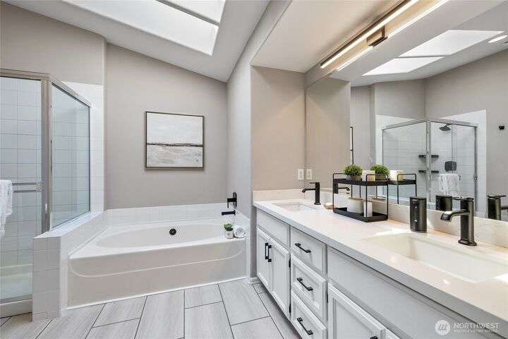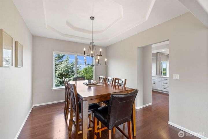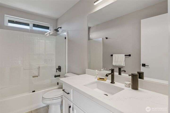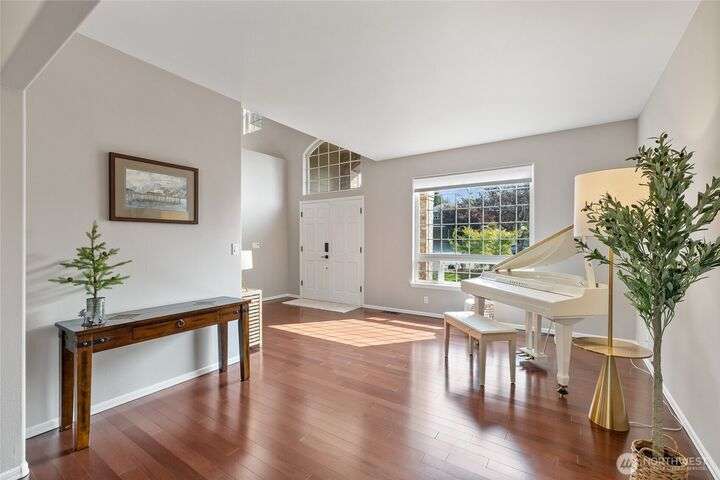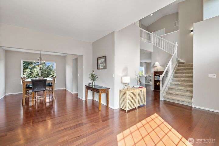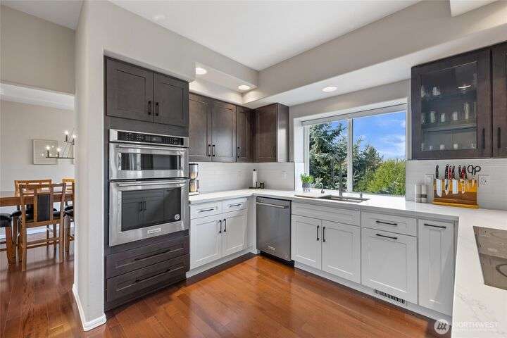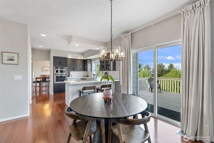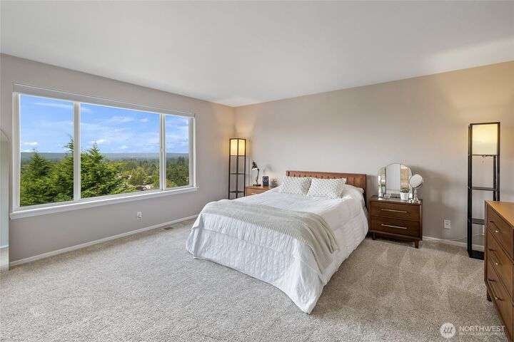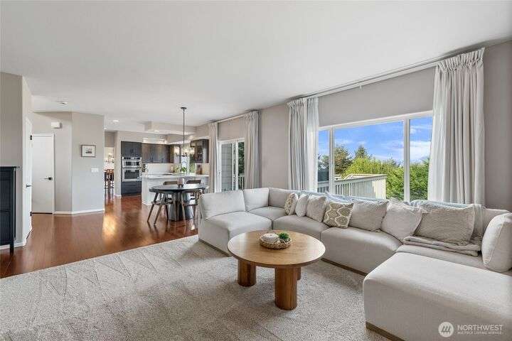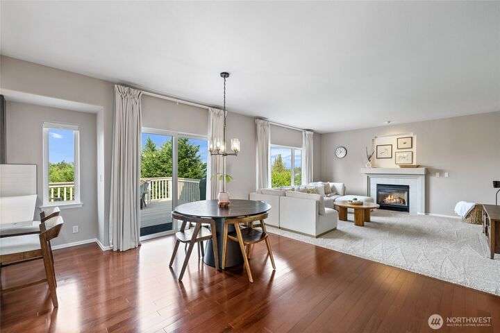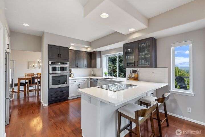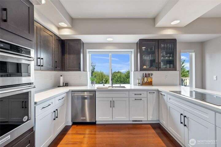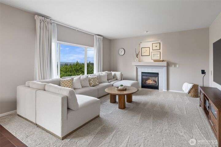 Like new 4 bedroom 3.5 bath 2 story with basement. Full remodel with new kitchen (cabinets, quartz counters, all new KitchenAid Red Dot apps), new hardwoods & designer carpet (memory foam pad). New lighting, upgraded electrical + electrical car charging. Hardiplank siding + ex paint (2020), & 50 year roof (2022). New high efficiency heat pump with A/C. 4 spacious bedrooms upstairs, including Primary suite with remodeled bathroom & walk in closet. Peak-a-boo view of the sound + full territorial views from back yard! All new landscaping, garden space, huge refinished deck. Basement is 80% finished and only needs sheetrock, trim & flooring. Move in ready + room for equity growth. Cul de sac location, Easy commute to Hwy 9!