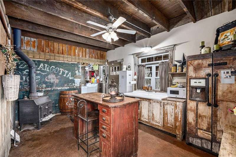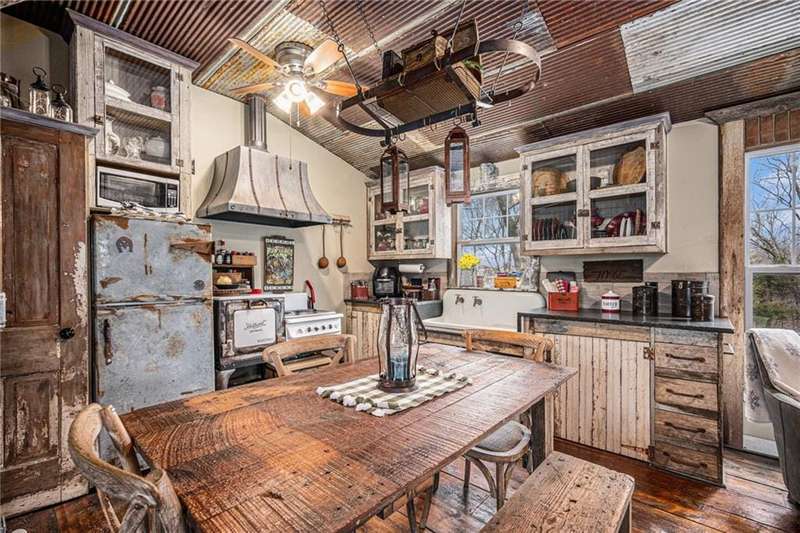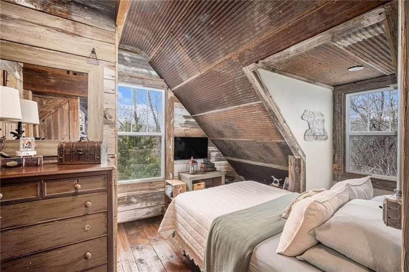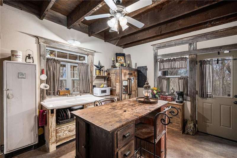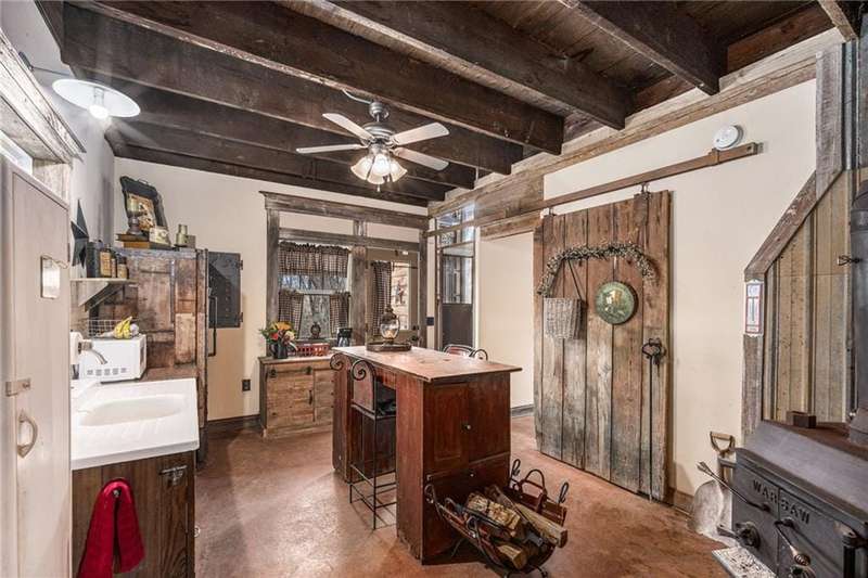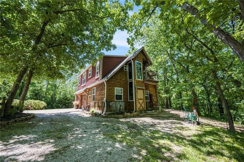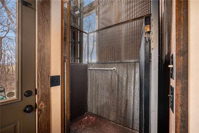 Rustic Country Charm on a Private, Wooded 1.15 Acres!Discover this truly one-of-a-kind rustic 2-story home, perfectly nestled on a beautifully wooded 1.15 acre lot an outdoor lovers dream retreat. Just across from the Archery Range (ideal for practice before hunting season!) and minutes from major highways, shopping, dining, and KCI Airport, youll enjoy the best of private country living with easy access to modern conveniences.On the main level, youll find a spacious 2-car garage with room for a workshop, a laundry area, and a functional kitchen with a center island for casual dining, complete with a charming wood-burning stove. A versatile secondary bedroom with an attached bath offers the flexibility to serve as a guest room, office, or creative studio.Take the custom elevator upstairs to the heart of the home! The upper level showcases rustic character with wide-plank hardwood floors and a striking metal ceiling. The kitchen is a standout with custom-finished cabinetry, an old-fashioned range, pantry storage, and plenty of space for family meals.The warm and inviting living room features an electric fireplace, ceiling fan, and a built-in nook perfect for reading, studying, or working from home. A cozy dormer-style bedroom completes this level, offering a peaceful retreat at days end.Comfort meets charm with heated flooring throughout the home and an efficient PTAC system (Portable Thermal Air Conditioner), providing year-round comfort no matter the season.Whether you crave privacy, natural beauty, or a home with unmistakable rustic charm, this property delivers it all. Dont miss your chance to make it yours schedule your private showing today!