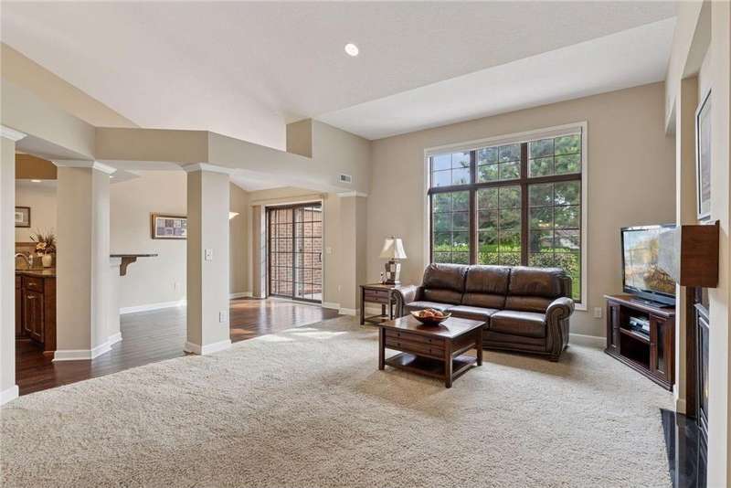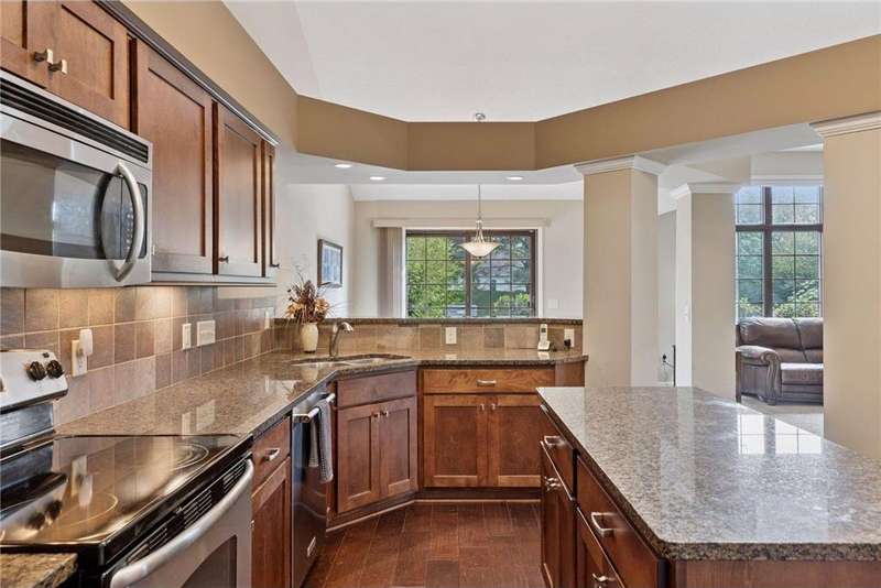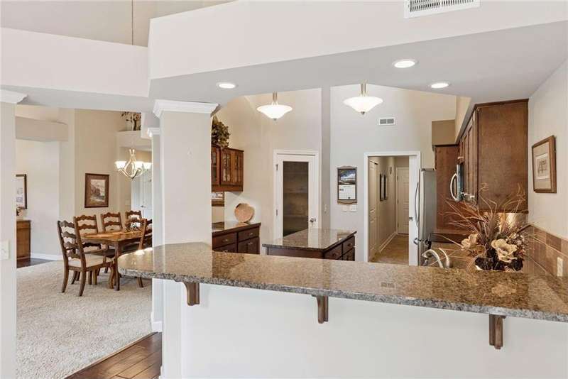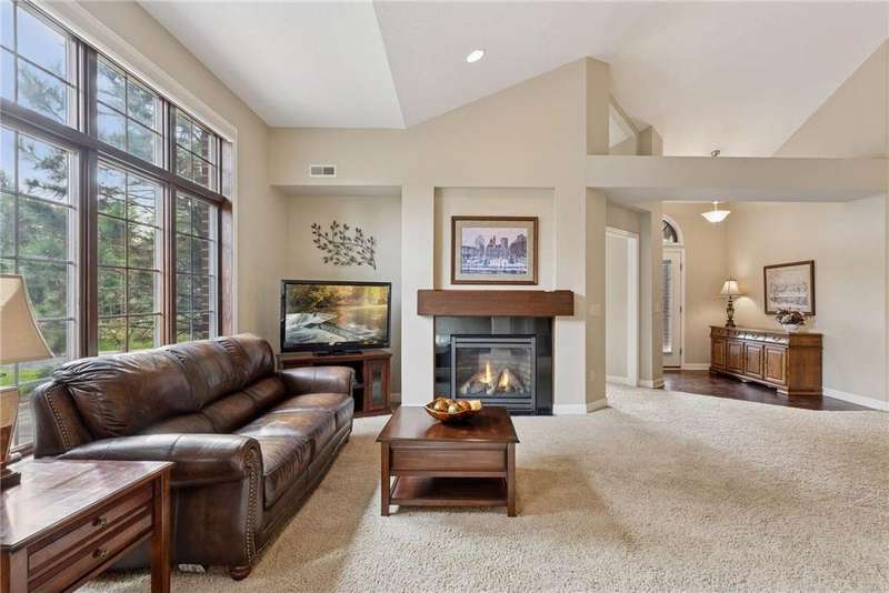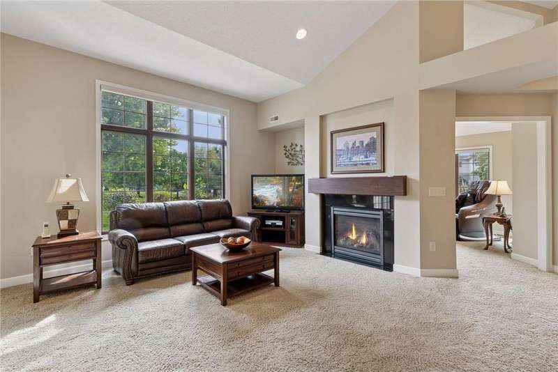 Enjoy one-level living at its finest in Red Cedar Canyon! Say goodbye to yard tools-sell the mower and the blower and settle into effortless living in this beautifully maintained townhome. You'll love the soaring ceilings, neutral palette and open concept floor plan that seamlessly connect the living, dining and kitchen areas. A fabulous kitchen features granite countertops, SS appliances, a center island and abundance of cabinets. Both formal and informal dining, this home is designed for gatherings of all kinds. A cozy gas fireplace adds warmth and charm to the living room, while the sunroom is filled with natural light. Enjoy peace of mind with numerous updates: new roof, driveway, furnace and water heater in 2022. High end Hunter Douglas automated window treatments adorn the Andersen Windows throughout the home. Step outside to a huge private patio, surround by lush green space. Oversized garage includes extra storage accessible by ladder and features built in shelves and lighting. All of this is located in a quiet neighborhood with walking paths, park, tennis courts and close proximity to restaurants, medical facilities and more. This is low-maintenance luxury living-don't miss your change to make it yours.