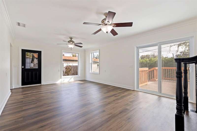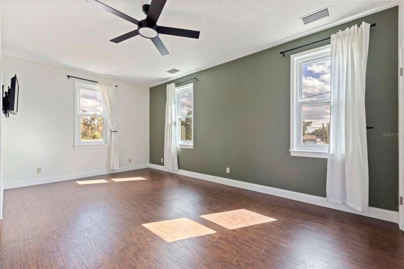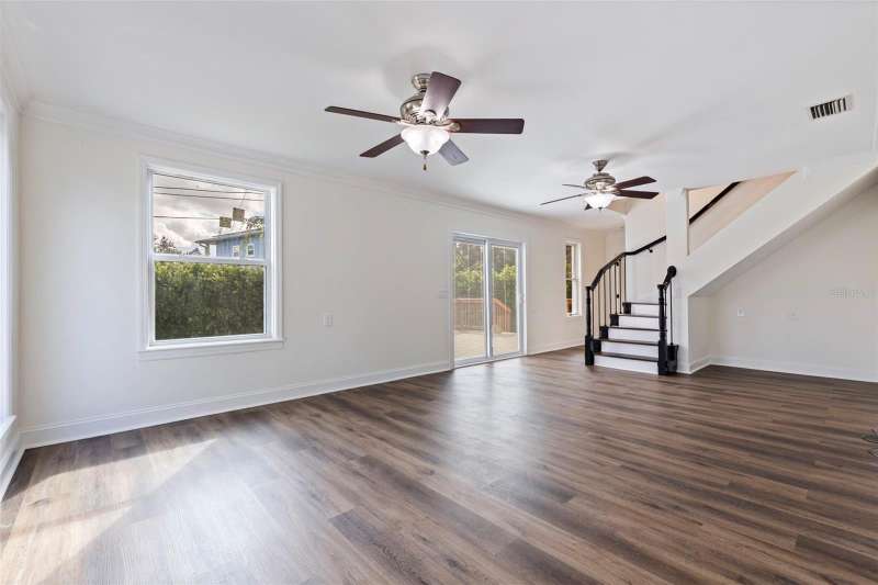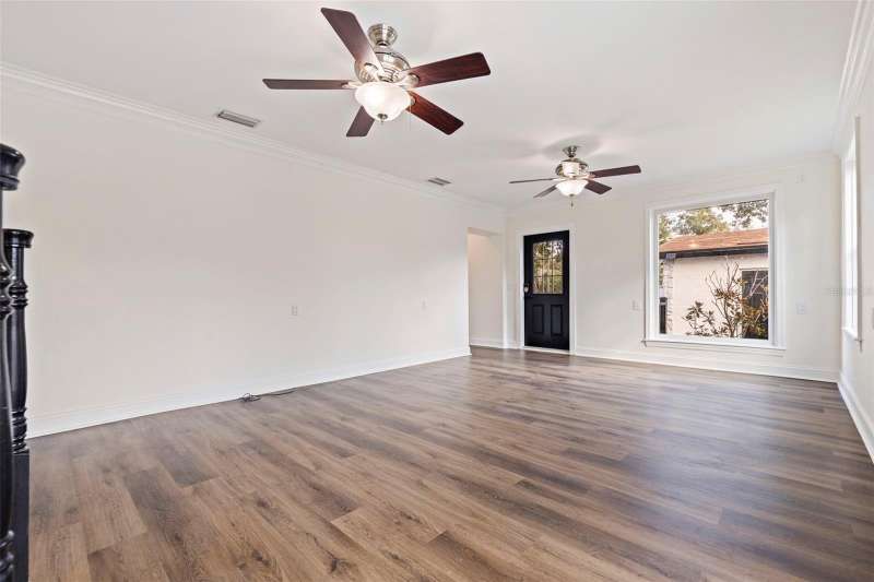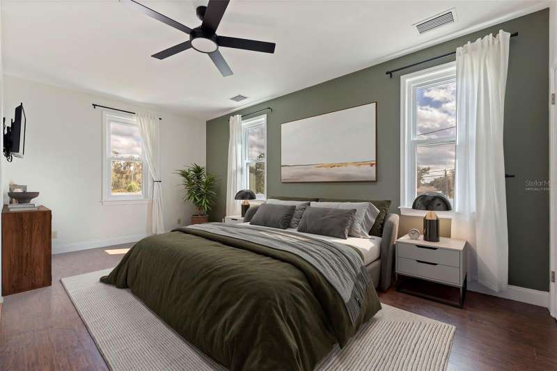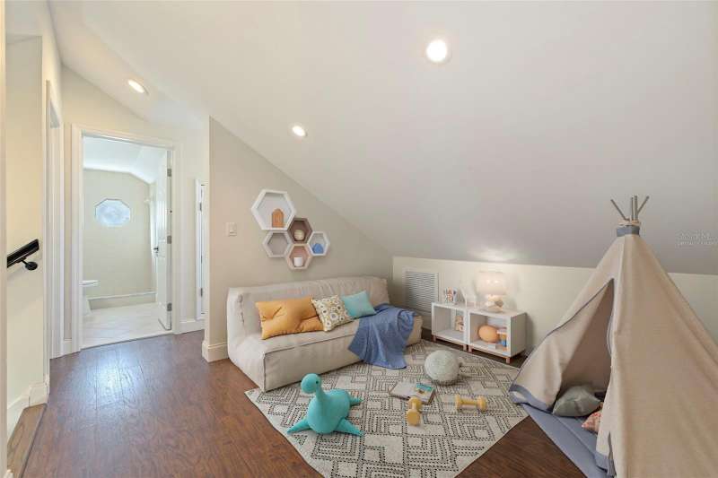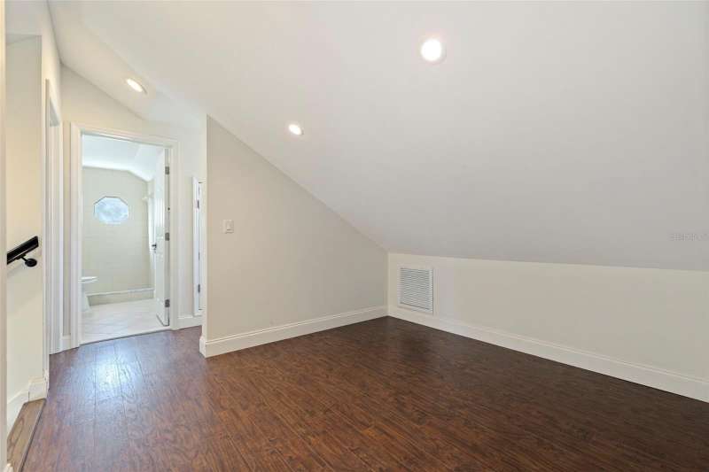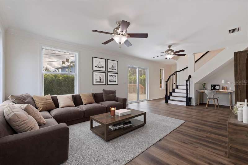 MODERN FARMHOUSE CHARM MEETS CONTEMPORARY COMFORT IN THIS NEWLY RENOVATED BEAUTY! Welcome to this stunning Modern Farmhouse–style residence, where timeless design meets everyday functionality. This spacious two-level single-family home offers an inviting blend of warmth, elegance, and modern convenience—perfectly situated on an oversized double lot with exceptional outdoor living spaces. Step through the cozy covered front porch and into a bright, open-concept lower level designed for both relaxing and entertaining. The front great room combines the living room, dining area, and gourmet kitchen into one seamless flow, highlighted by rich wood ceiling beams, 6-inch floor moldings, and luxury vinyl plank flooring throughout. The modern kitchen features gleaming stainless steel appliances, including a French door refrigerator, natural gas range with convection oven, dishwasher, and a microwave/convection combo oven. Elegant quartzite countertops and white wood cabinetry provide both beauty and function. At the rear of the home, a spacious family room opens through sliding glass doors onto a large TREX deck overlooking the fenced backyard—perfect for gatherings, play, or peaceful evenings outdoors. The lower level also includes two comfortable bedrooms, one and a half baths, and a large laundry room for added convenience. Upstairs, retreat to your primary suite, featuring a luxury ensuite bathroom with a freestanding soaking tub, oversized walk-in shower, and elegant modern finishes. A second bedroom, additional full bath, and a versatile loft space—ideal for a playroom, reading nook, or fitness area—complete the upper level. Outside, enjoy exceptional functionality with a detached two-car garage that includes a workshop area and a vintage full bathroom ready for renovation. (This area could easily be converted to an ADU for additional equity-earning potential!!) A circular driveway ensures ample parking, while masonry block construction, vinyl siding, and newer hurricane-rated windows and doors throughout the home provide durability and peace of mind. Both the roof and HVAC systems are newer as well, and there is natural gas utility for the kitchen stove/range, water heater and laundry room/dryer connection. From its picture-perfect curb appeal to its thoughtfully designed interior, this home embodies modern Florida living with farmhouse-inspired warmth. Conveniently located near downtown St. Petersburg and downtown Tampa, and within a bike ride or short drive to Weedon Island Preserve/Park for kayaking, hiking and boating. You will also be within easy access to two major airports, top-rated dining, shopping, and entertainment, and beaches --this property truly has it all.