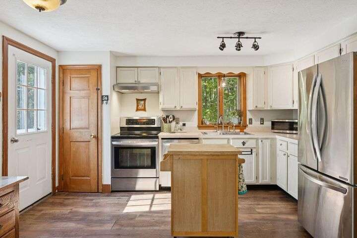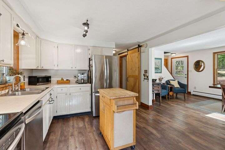 Nestled on over 2 picturesque acres and just 1/2 mile from Little Ossipee Pond, 7 Cortland Lane offers the perfect blend of charm, comfort, and lifestyle. This classic Cape-style home sits on a beautifully landscaped lot featuring a timeless rock wall edging the back of the property, a cozy firepit area for gathering, a new shed, and sunny garden spaces ready for your green thumb. Step inside to a light-filled main level with an inviting flow. This level includes a living room/den, a bedroom, a spacious open-concept kitchen and dining area, and a full bath with a new vanity and updated lighting. Just off the kitchen, a generous sun-drenched deck extends your living space outdoors—perfect for morning coffee, grilling, or soaking in the peaceful surroundings. Upstairs, you'll find two additional bedrooms, offering flexibility for guest space, home office, or playroom needs. The recently refinished lower level adds even more living space with a warm and welcoming bonus room complete with a woodstove—ideal for movie nights or a quiet retreat. Major system upgrades provide peace of mind, including a new propane boiler in 2024, sump pump with French drain and battery backup installed in 2022, a bubble-up water filtration system, and a Rinnai system less than a year old. Whether you're relaxing on the sunny deck, gathering by the firepit, cultivating gardens, or heading down the road for a day on the water, this property offers a lifestyle of ease and enjoyment in a serene setting. Welcome home.