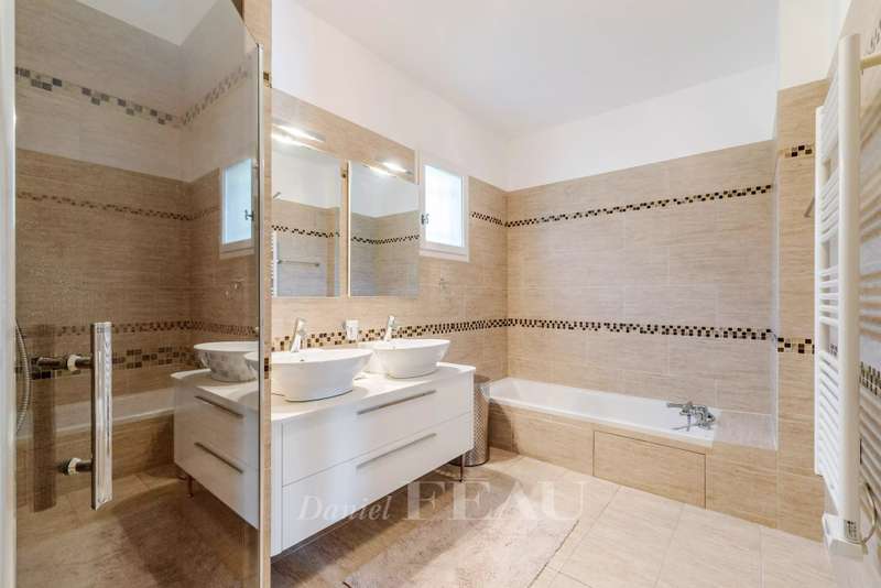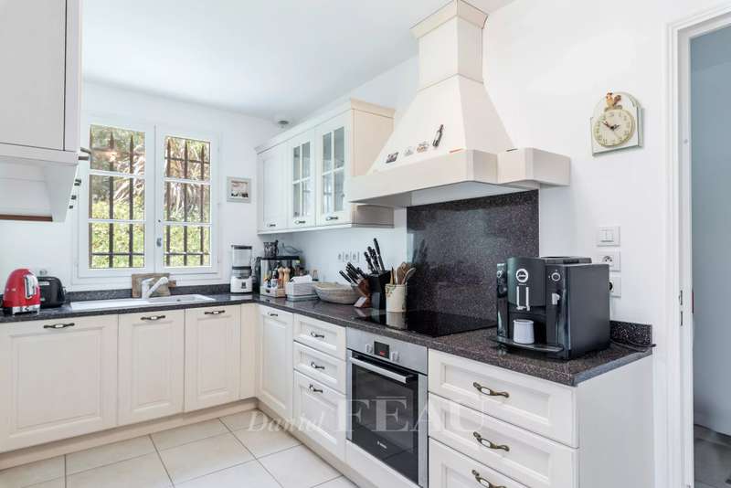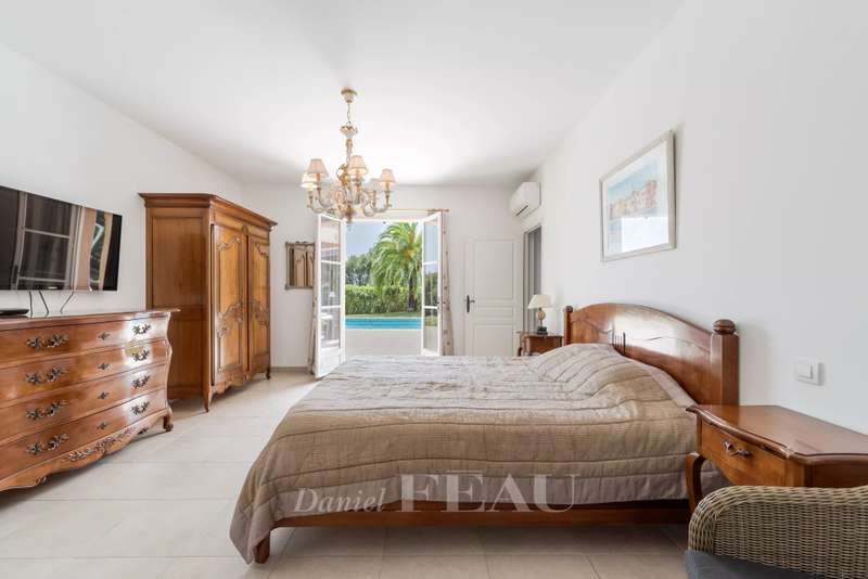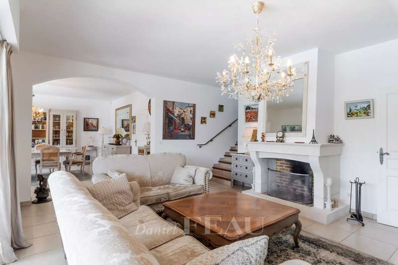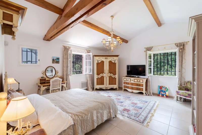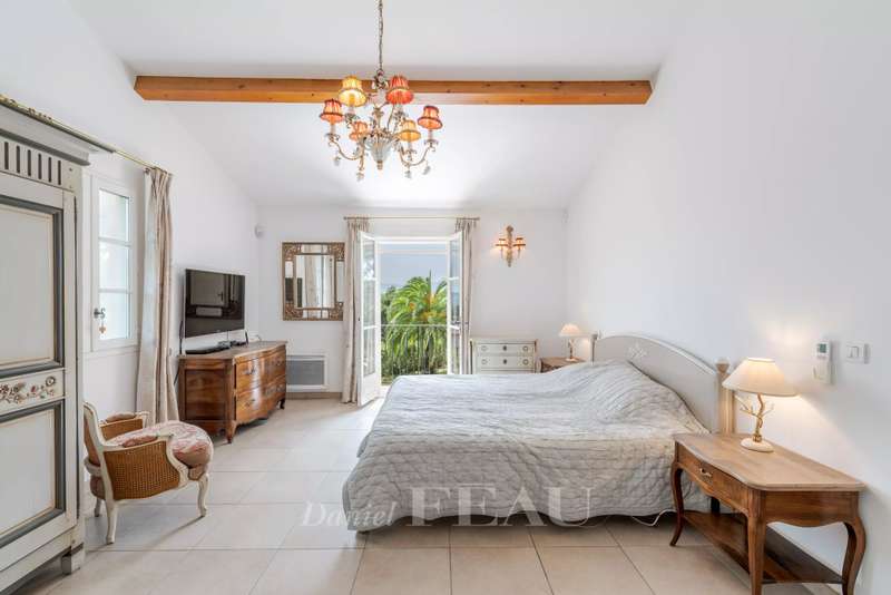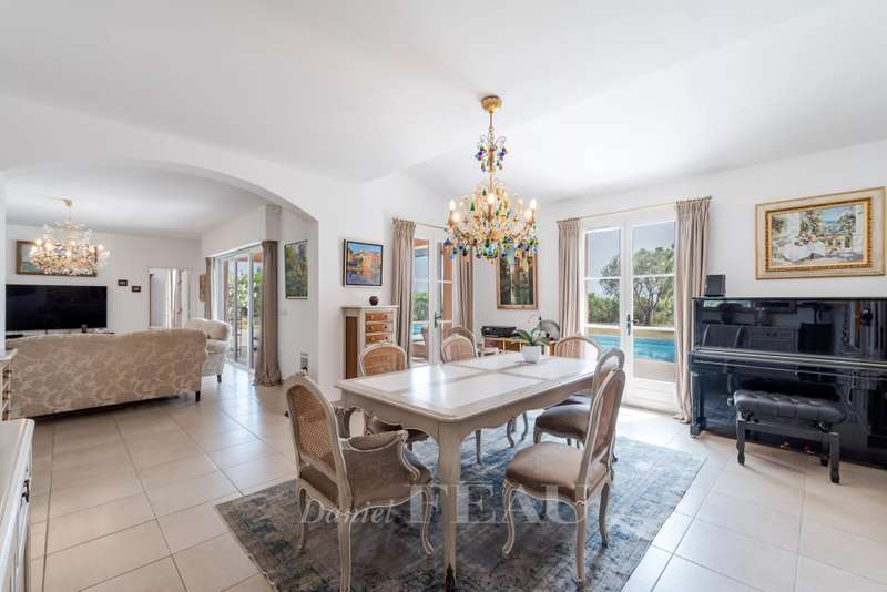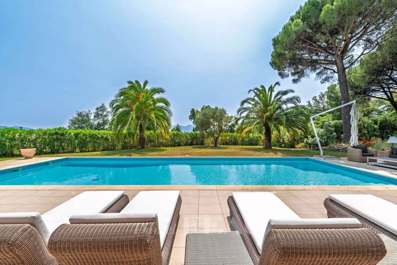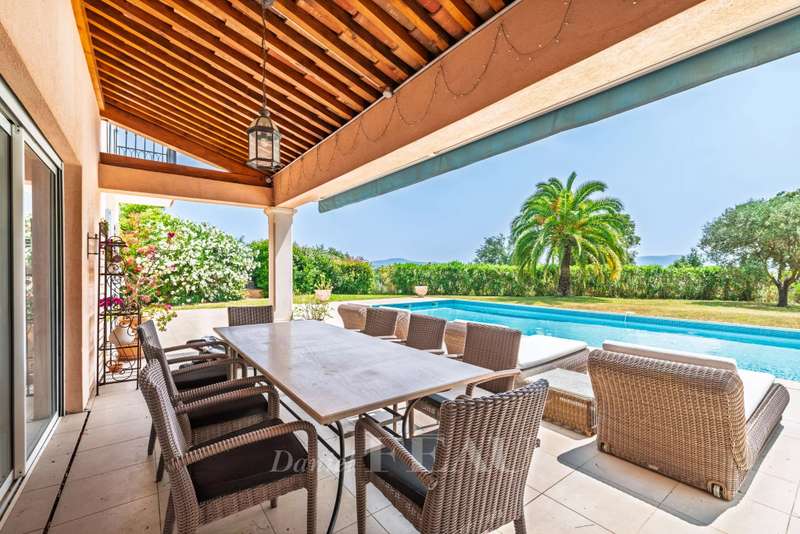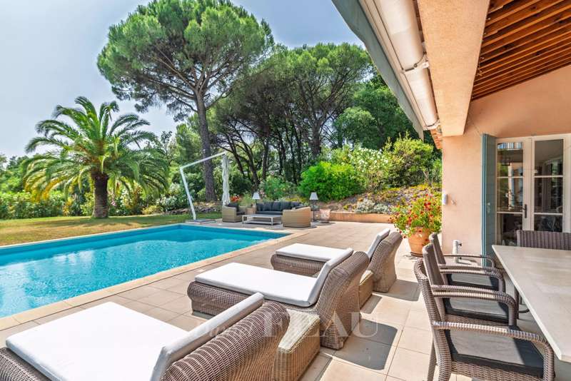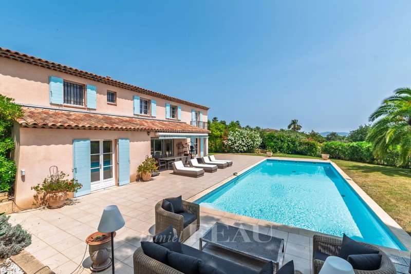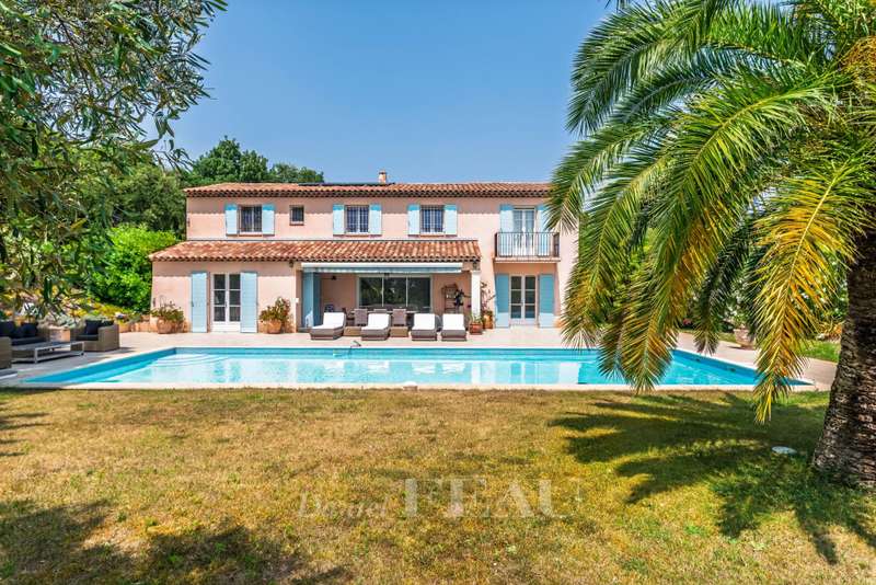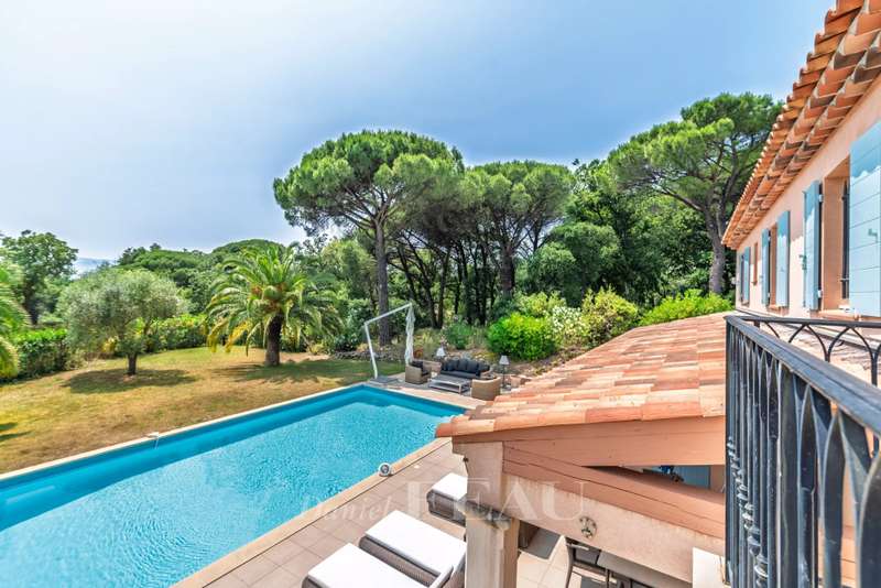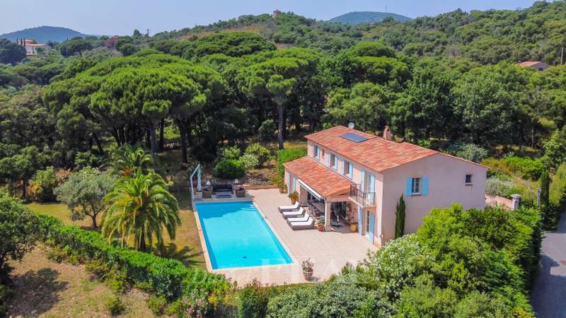 This near 222 sqm property in a residential neighbourhood between Grimaud and Port-Grimaud is set in a 2957 sqm plot with a landscaped garden. It includes a bright living/reception room with a fireplace opening onto a covered terrace and a swimming pool, a dining room, a fully equipped kitchen, a storage/utility room, a service entry, and a spacious suite with a bat/shower room/wc and a dressing room. Upstairs are three suites each with a dressing room and enjoying views of the garden, the swimming pool and the hills. Reversible air conditioning, double glazing. With a heated swimming pool, and a 2-car garage accessed from the utility room.