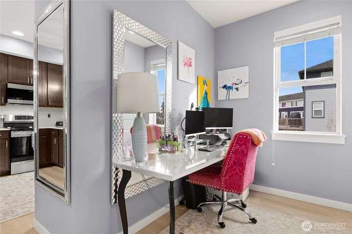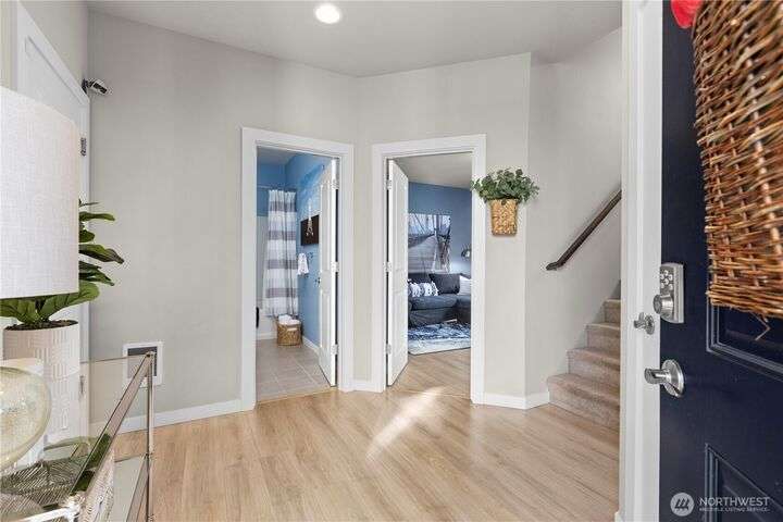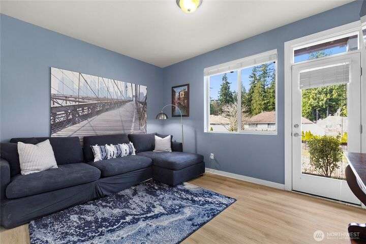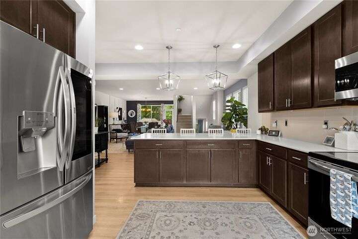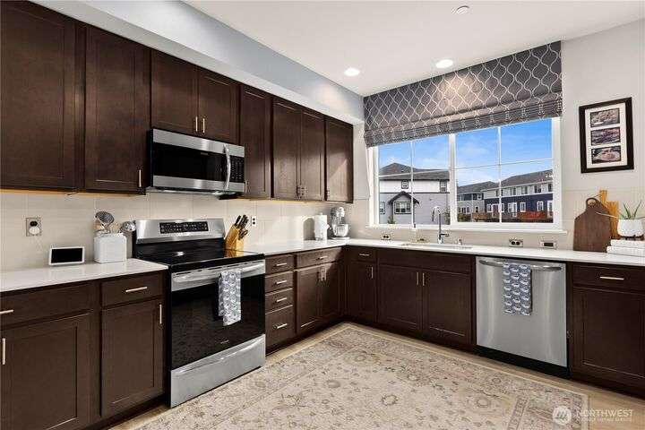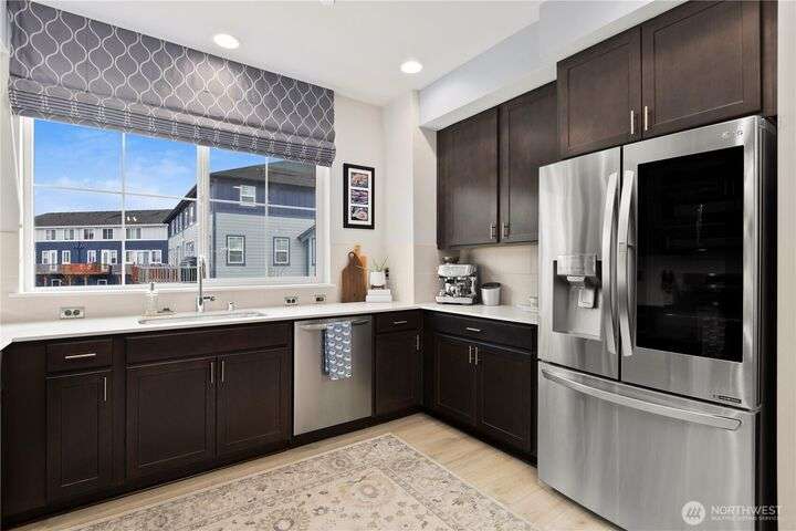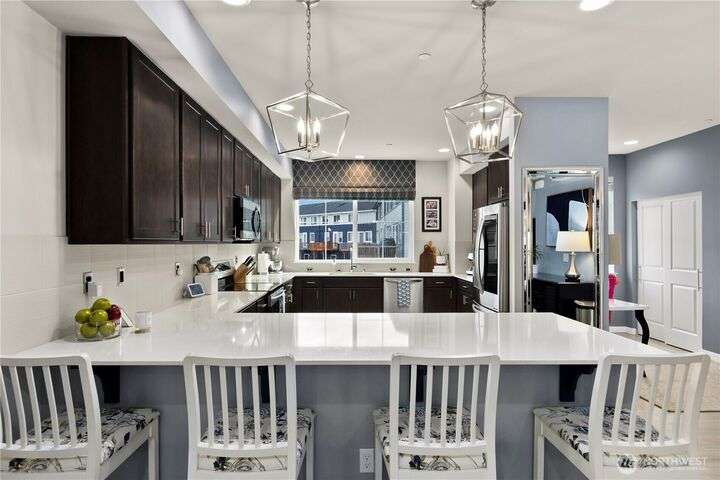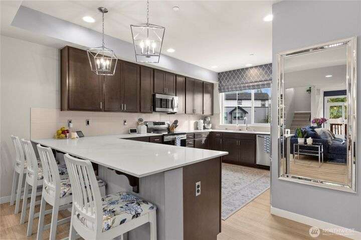 Stunning corner-unit townhouse that offers the perfect blend of modern luxury & convenience. Spanning 3 levels, this home feels as spacious as single-family house but w/the ease of low-maintenance living. Step inside to open flr plan flooded w/natural light, beautiful engineered hardwood floors & sleek chef’s kitchen w/induction stove & top-tier appliances. Comfort is key w/HP split AC unit, generous parking, & smart storage solutions. Upstairs, Primary Ste is serene retreat w/peaceful pond views, while spa-like baths & upscale finishes elevate the entire home. Outside, enjoy walking trails & the best of Bothell’s urban-suburban charm. This isn't just a home—it’s a lifestyle.