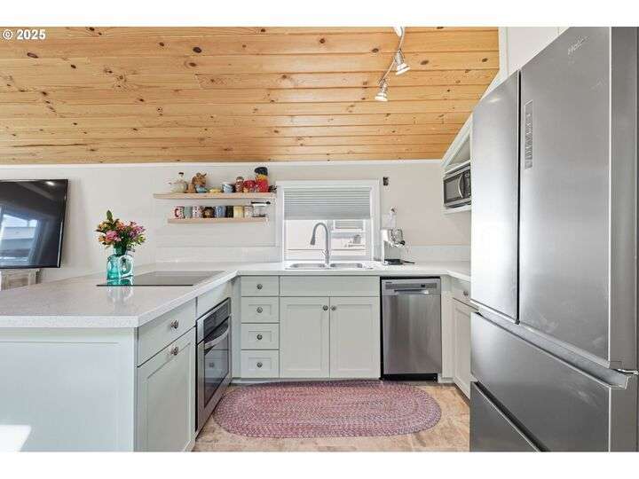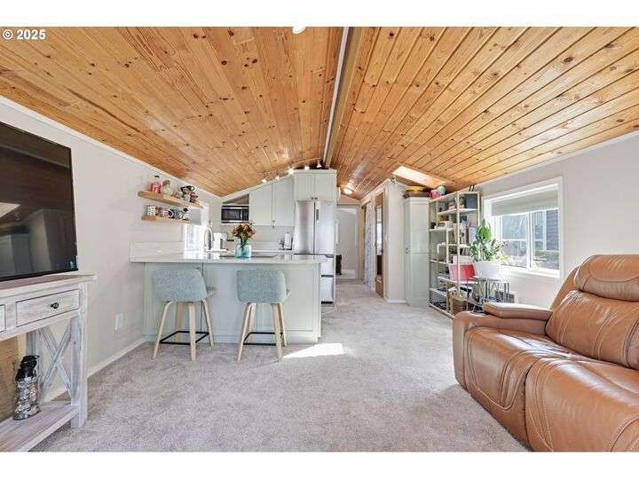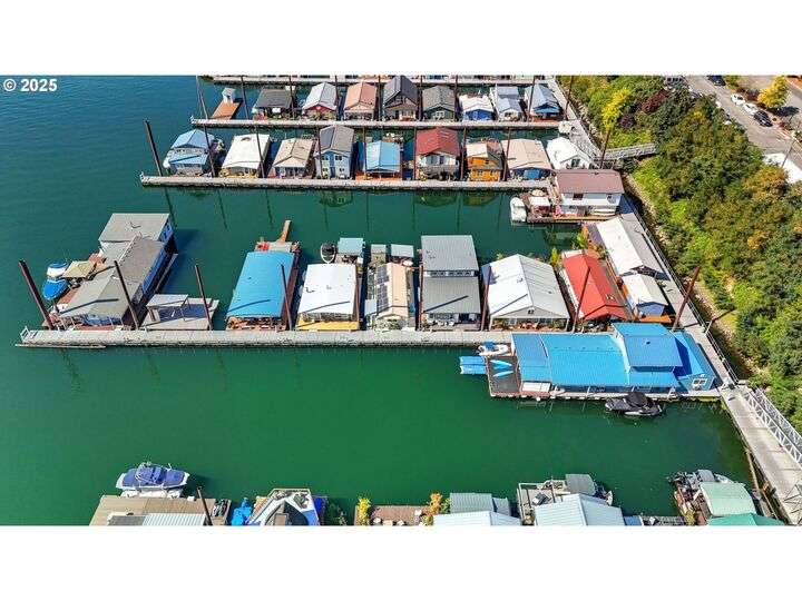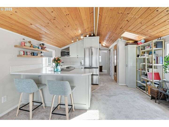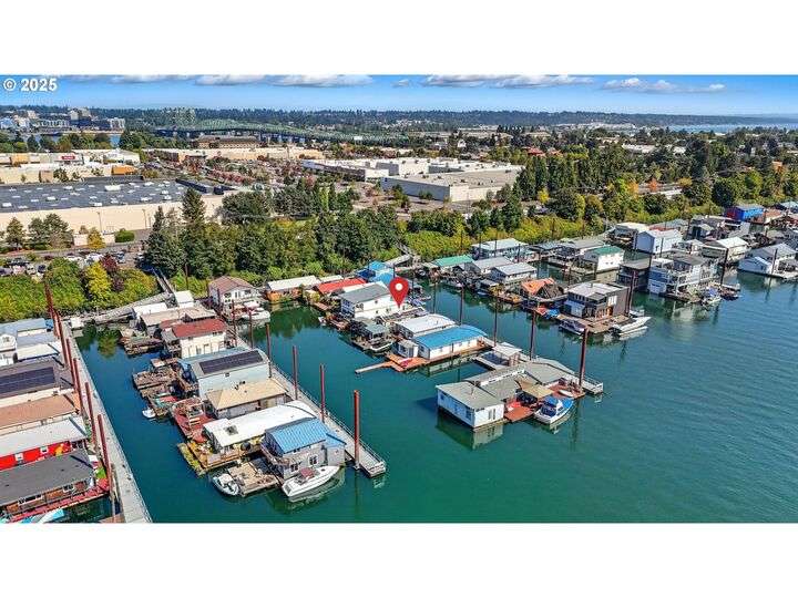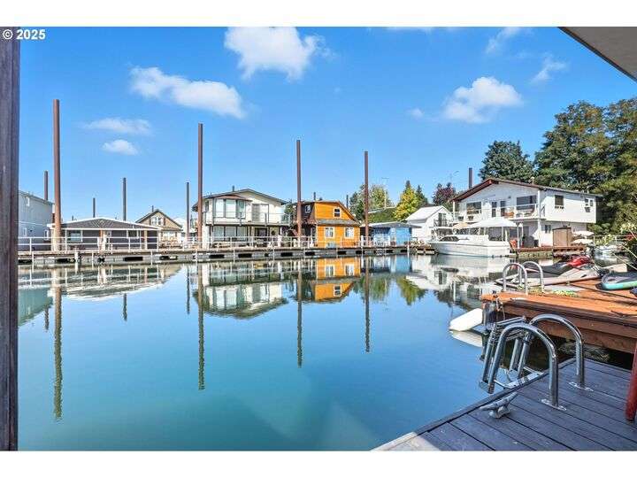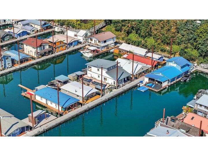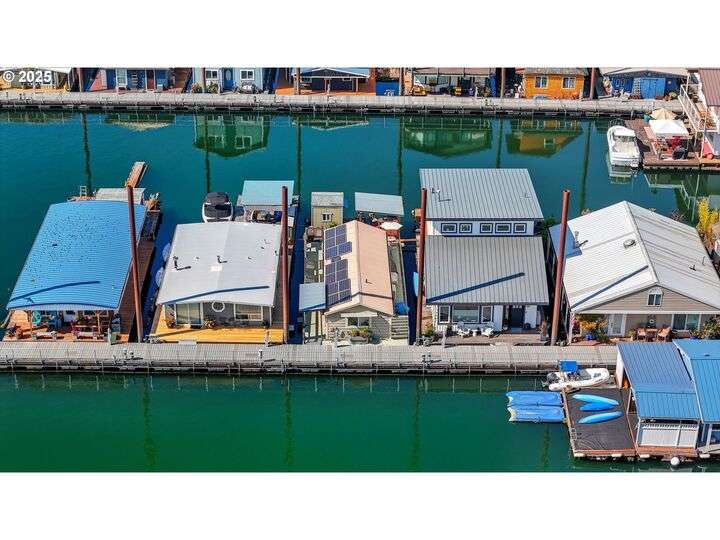 Tidy, well-maintained cottage tucked between two wide channels with close ramp access. Sunlight fills the west-facing living room, which opens through sliding doors to a spacious deck/patio and a covered riverfront gathering area for true indoor/outdoor living—perfect for relaxing or entertaining by the water. Updates include a high-end kitchen with quartz counters, custom cabinetry, heated floors, and counter seating; a remodeled bathroom with floating fixtures and beautifully tiled bath/shower; washer/dryer; and newer 24,000 BTU HVAC mini-split. Plush carpet in the bedroom plus peaceful water views. Equipped with solar panels for low monthly costs and eco-friendly living. Includes your very own boat slip and insulated shed ideal for storage or hobby use. HOA provides excellent upkeep of common areas at a very reasonable fee in a safe, clean, inviting gated community. Includes 2 car spaces (uncovered)