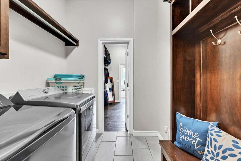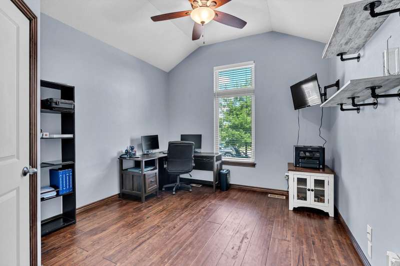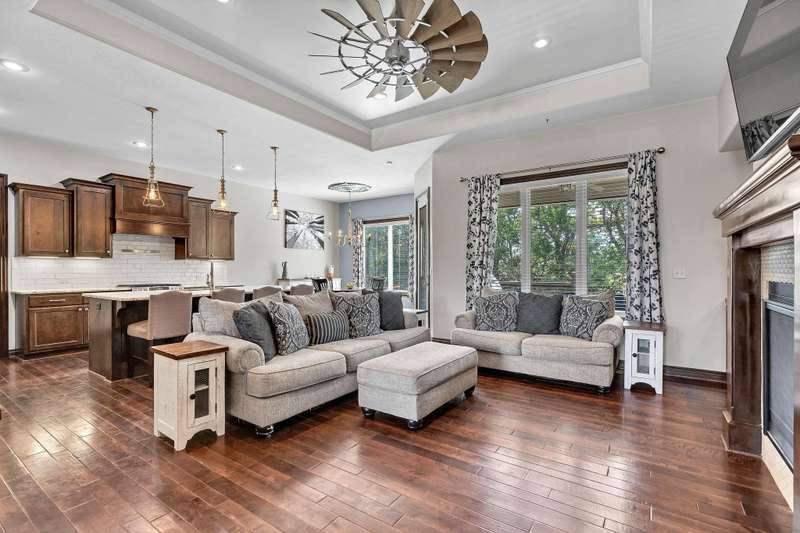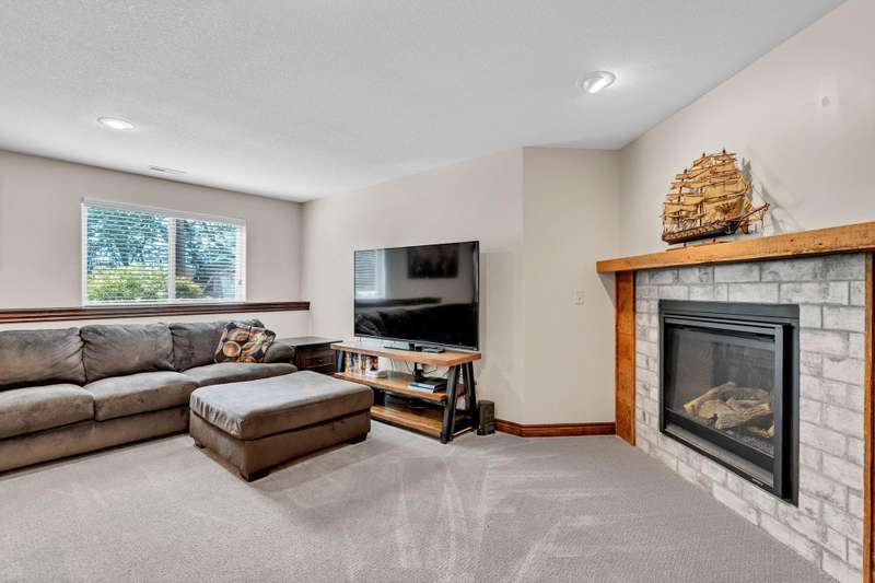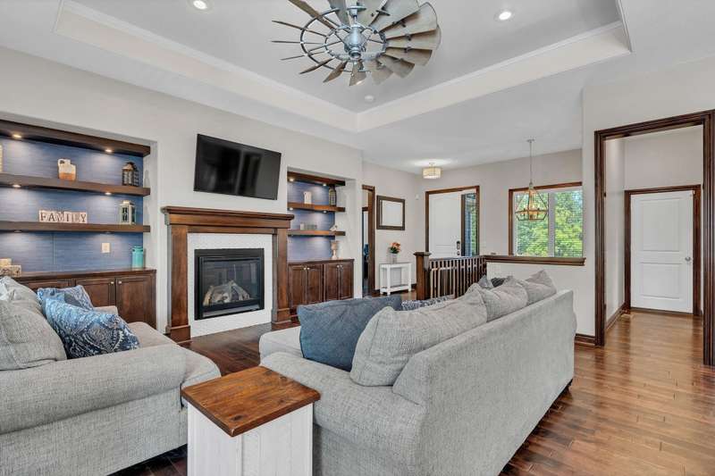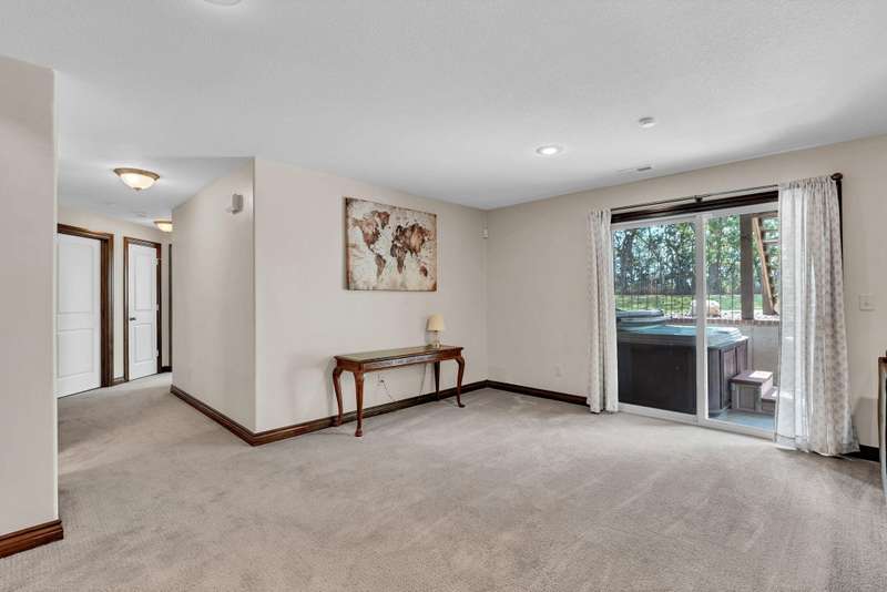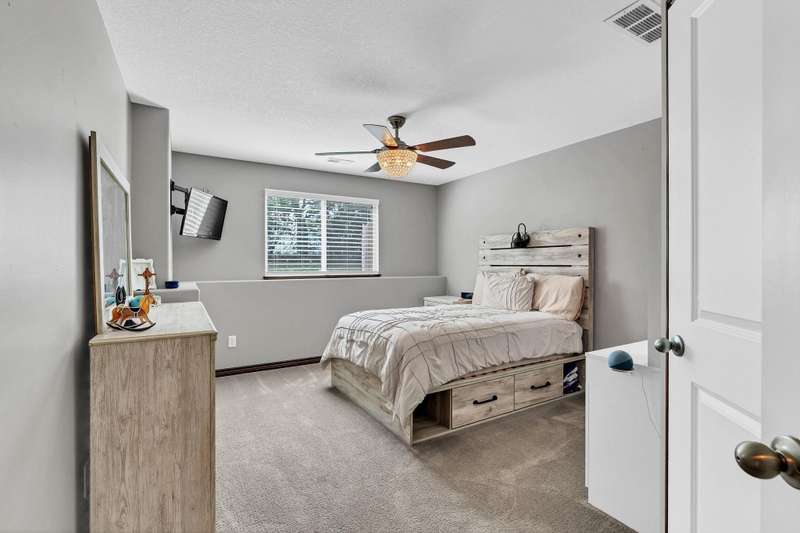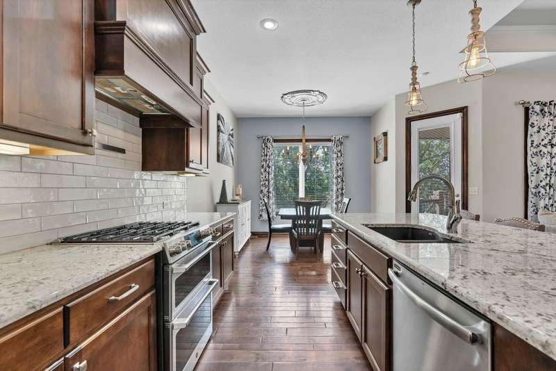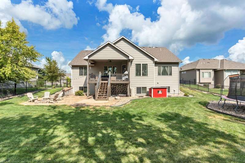 Welcome to this immaculately maintained home in desirable Shadow Rock, situated on an expansive fenced lot backing to a beautiful tree line with no neighbors behind in the Andover school district. Offering 5 bedrooms, 3 full bathrooms, and a 3-car garage, this home boasts walk-in closets in every bedroom. Step inside to find stunning views and abundant natural light, complemented by hardwood floors, custom built-ins, and a cozy fireplace in the main living area. The kitchen features a Caf gas oven with six burners, a spacious walk-in pantry, a large island, and a dining area. The split main-floor layout includes a pass-through master suite connected to a private laundry room with a drop zone that can be closed off from the garage hallway. The master bath offers dual vanities, a walk-in shower, a soaker tub, and a water closet. Beautiful wooden stairs lead to a lower-level entertainers dream with a wet bar and seating, a second fireplace, a full bath, two large bedrooms with walk-in closets, a bonus room, and generous storage. Functional upgrades include a water softener, humidifier, and battery backup for the sump pump. Outside, enjoy your own private oasis with a hot tub, fire pit, and a beautifully landscaped, expansive yard. With thoughtful extras throughout, this home is best experienced in personschedule your showing today!