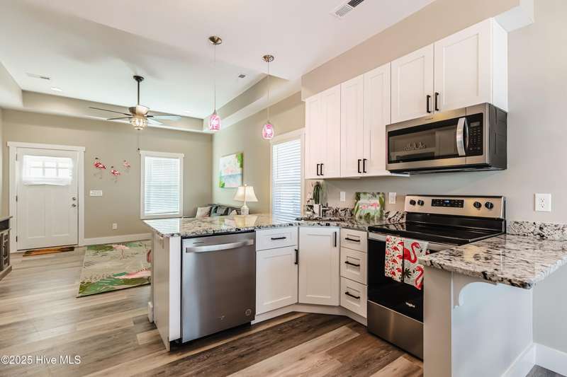 A rare opportunity that does not come on the market often! This fully furnished duplex in Ocean Isle Beach is less than a mile from the beach, located in an X zone, with NO HOA. You can take a golf-cart straight to the island, making it an ideal investment, second home, or a mix of both. Rent out both sides or enjoy one for yourself while generating income from the other. Each side features 2 bedrooms and 1 bath, with charming personality throughout, one unit playfully decorated in a flamingo theme and the other in a whimsical mermaid motif. Both kitchens offer granite countertops and stainless-steel appliances, making them turn-key and rental-ready. Outside, you will find a large backyard perfect for relaxing or entertaining, complete with a shared covered common area, picnic table, and wet bar an inviting space guests will love. This property is adorably decorated, immaculately maintained, and sure to steal hearts the moment anyone enters through the door. A truly special find in one of the most beloved coastal towns. Don't miss your chance to own this versatile and delightful beach retreat!