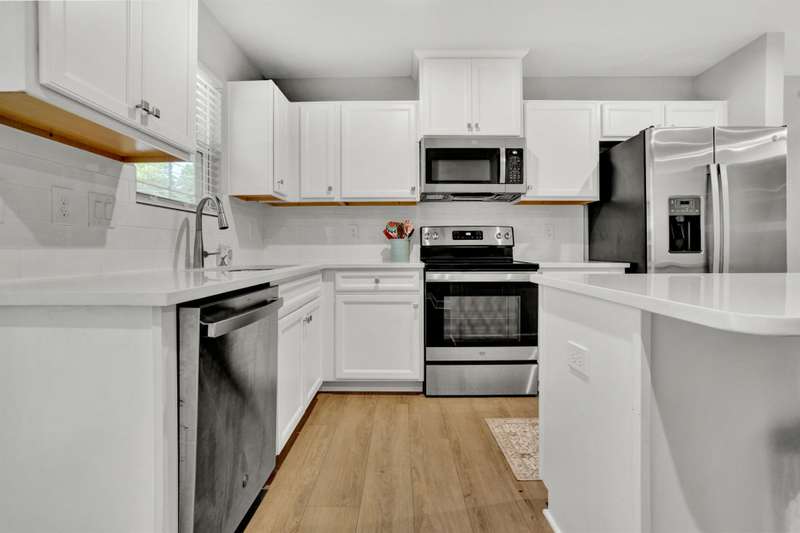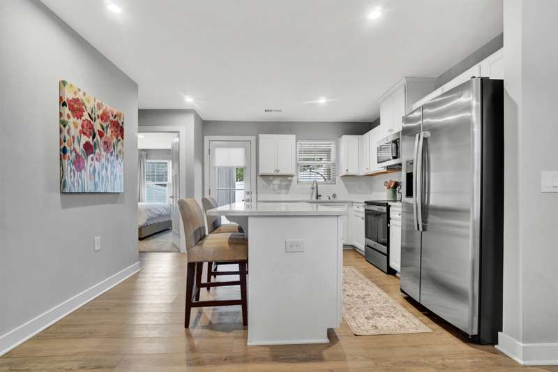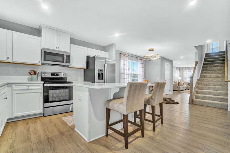 Move in Ready! Discover this beautifully appointed former model home in the sought-after Berkeley community, where resort-style living meets everyday comfort. This 3-bedroom, 2.5-bath, end unit, townhome features the original floor plan, offering a spacious and open layout with thoughtful upgrades throughout. The oversized kitchen is a true standout, boasting an expanded layout with a rare picture window above the sink?filling the space with natural light. Enjoy upgraded cabinetry, premium countertops, and a deluxe appliance package that elevate both style and function. The main-level primary suite offers privacy and convenience, complete with a luxurious full tile shower and modern finishes. Upstairs, two additional bedrooms and full bathroom provide flexible space for guests, family, or a home office. Additional highlights include a fully finished garage, hardwired security system, and a generous fenced-in backyard?perfect for relaxing or entertaining. Located in the vibrant Berkeley community, residents enjoy access to top-tier amenities, just look at that clubhouse and pool! With the HOA taking care of all of your lawn maintenance (inside and outside of your fence), you can take advantage of pool time at every chance! Don't miss out on owning this upgraded and thoughtfully designed townhome in one of the area's most desirable communities!