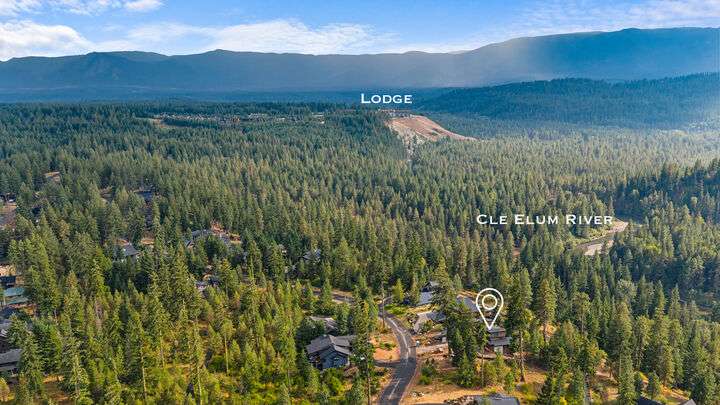 Situated on one of the best view sites in Suncadia, this stunning new modern mountain home by Benchmark Custom Homes offers panoramic views in the gated River Ridge neighborhood. This 5-bedroom + den home includes a separate lower-level living room, high-end kitchen with walk-in pantry, main-level ensuite, upstairs primary & guest bedrooms, and a lower-level bonus with more bedrooms. Radiant heated floors in the basement and main living room. Enjoy custom tile, flooring, steel staircase & more. Entertain on the elevated deck or ground-level patio with direct trail access to the river or Nelson Farm Pool. Completion Fall 2025.