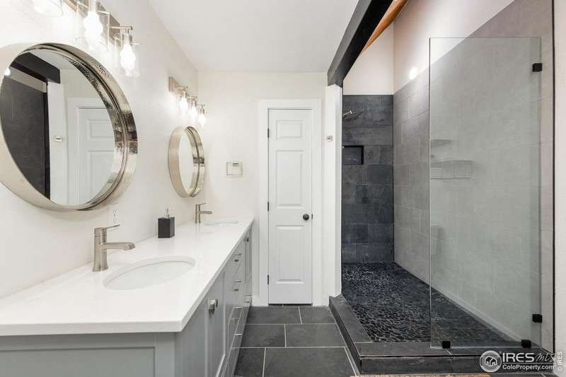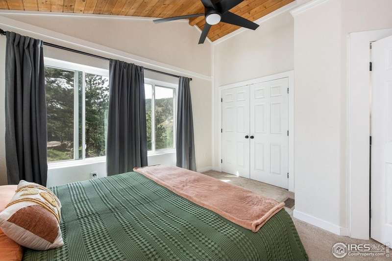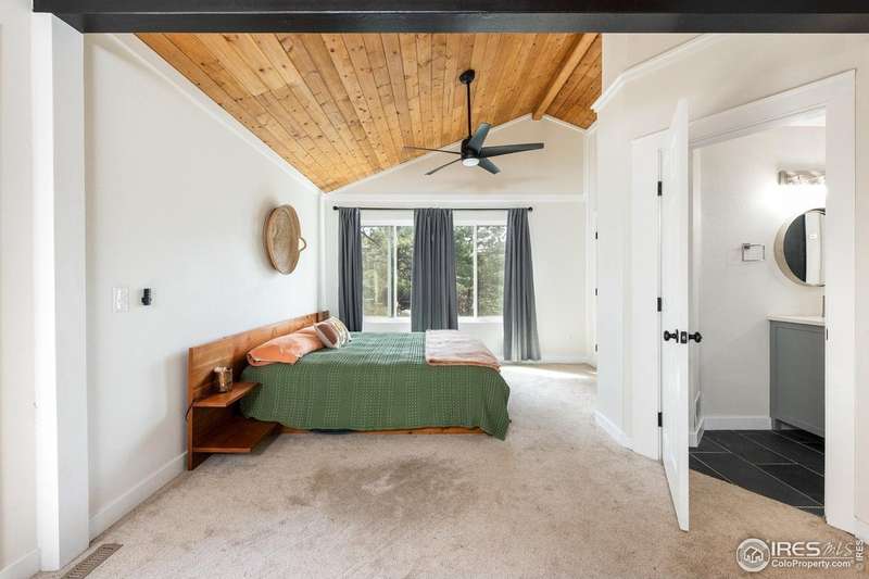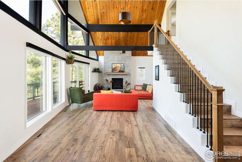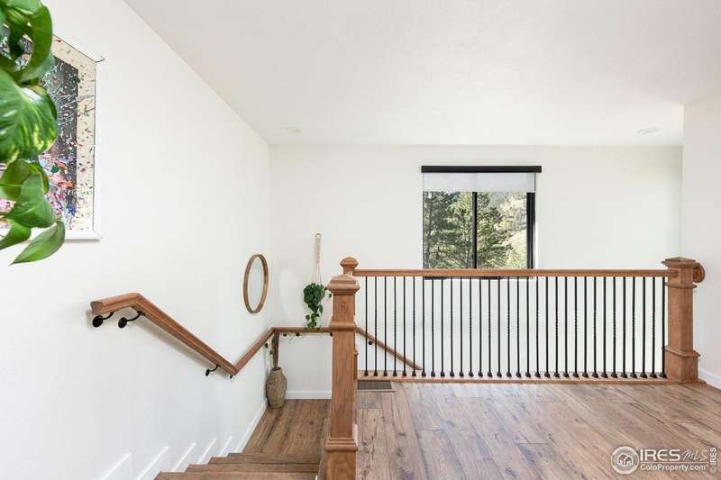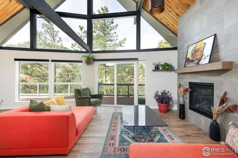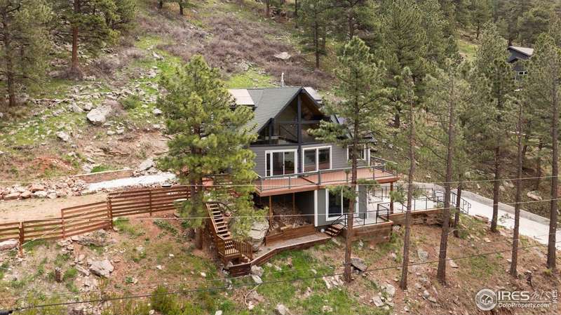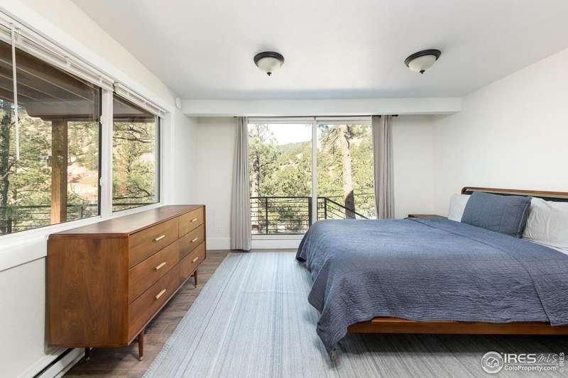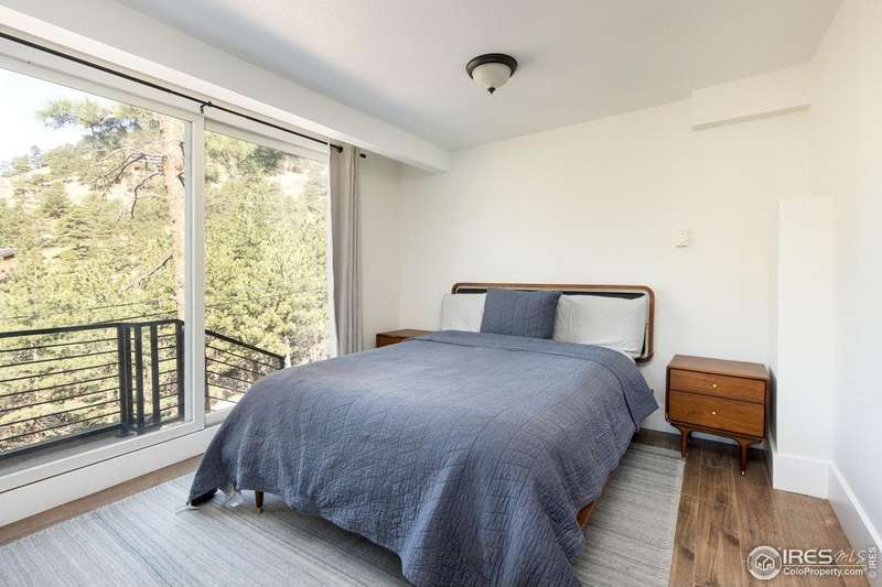 Located in the Pine Brook Hills neighborhood. Escape to the mountains and still be 10 minutes to downtown Boulder and a short walk to hiking trails. Completely remodeled with 20 foot ceilings in the living room. Main floor has a large living area, dining room, kitchen, bedroom and bath. Second floor has a primary suite, with a private patio as well as another bedroom and bath. Step outside to enjoy a clean, low-maintenance backyard with crisp white rock landscaping and a flat side yard for relaxing or entertaining. This move-in ready gem offers comfort, style, and peace of mind in one of Boulder's most desirable neighborhoods. Recent upgrades (all within the last two years) include: solar panels, new driveway, new electrical panel, motorized blinds throughout the house, new furnace, new water heater, new induction stove, new entrance downstairs for ADU or mother-in-law suite, new shelving throughout the house, new radon mitigation system, updated HVAC ventilation system, new ceiling fans throughout the house, Ring doorbell system, new front yard lighting.