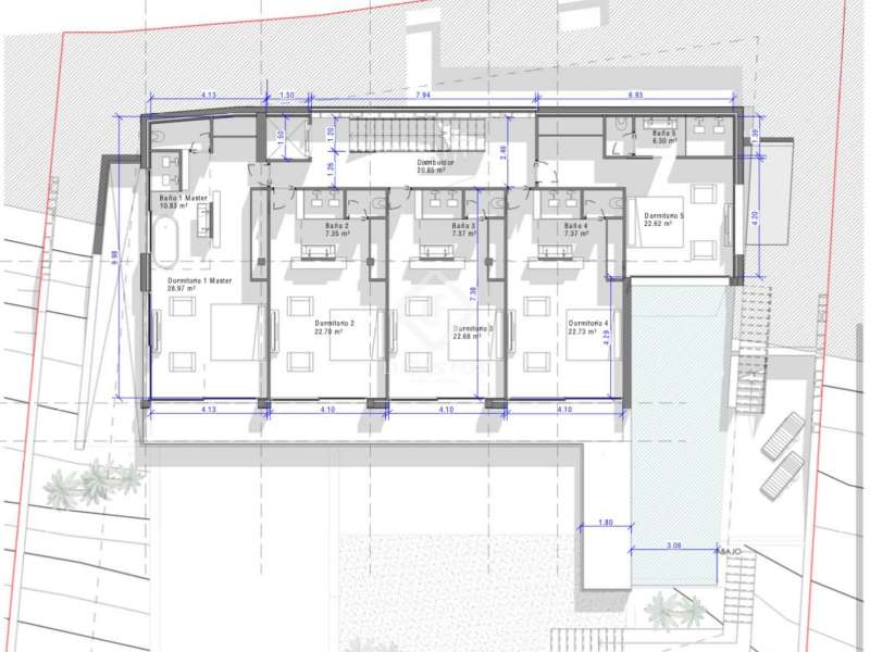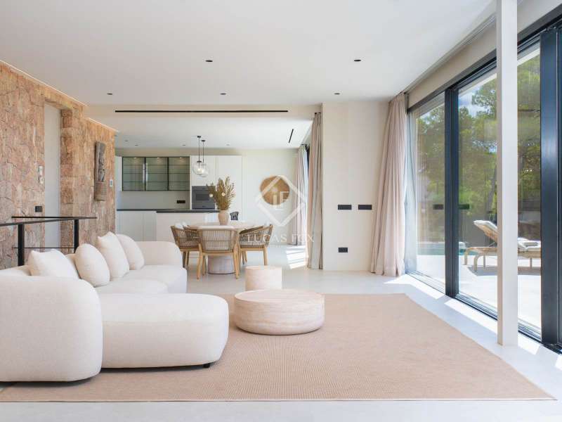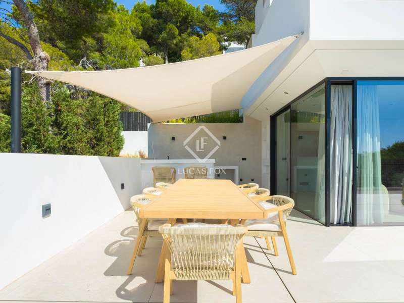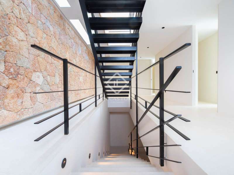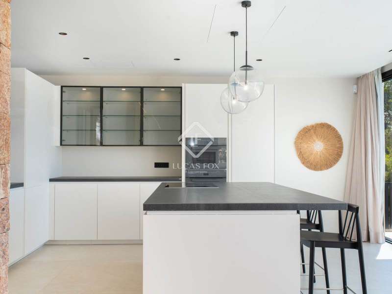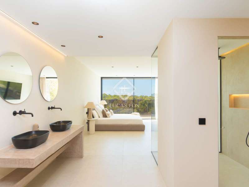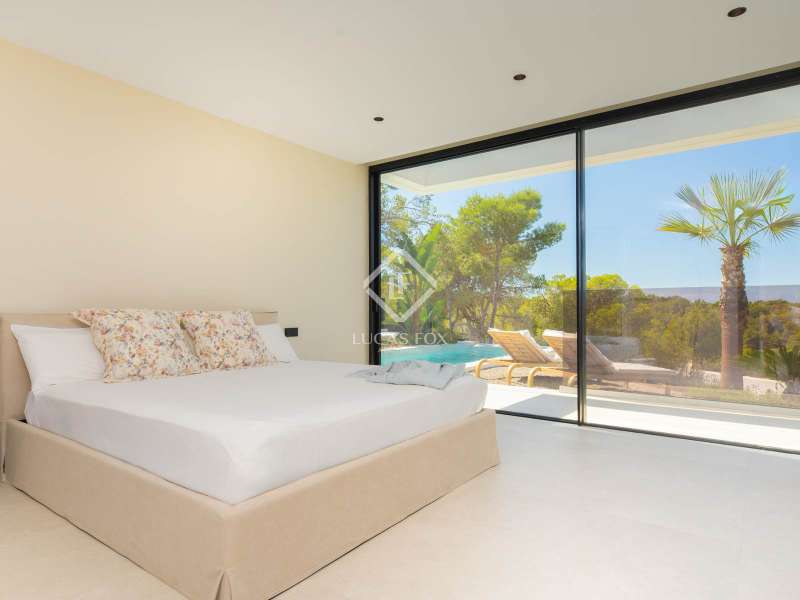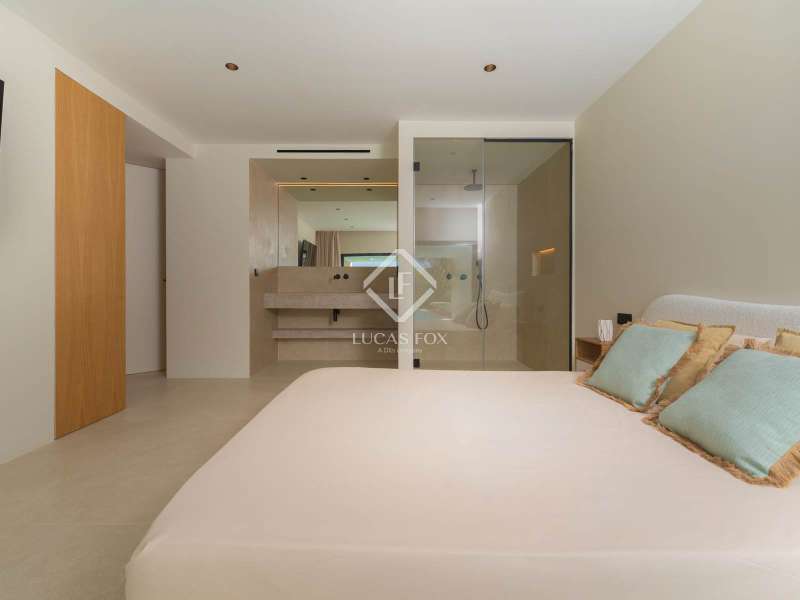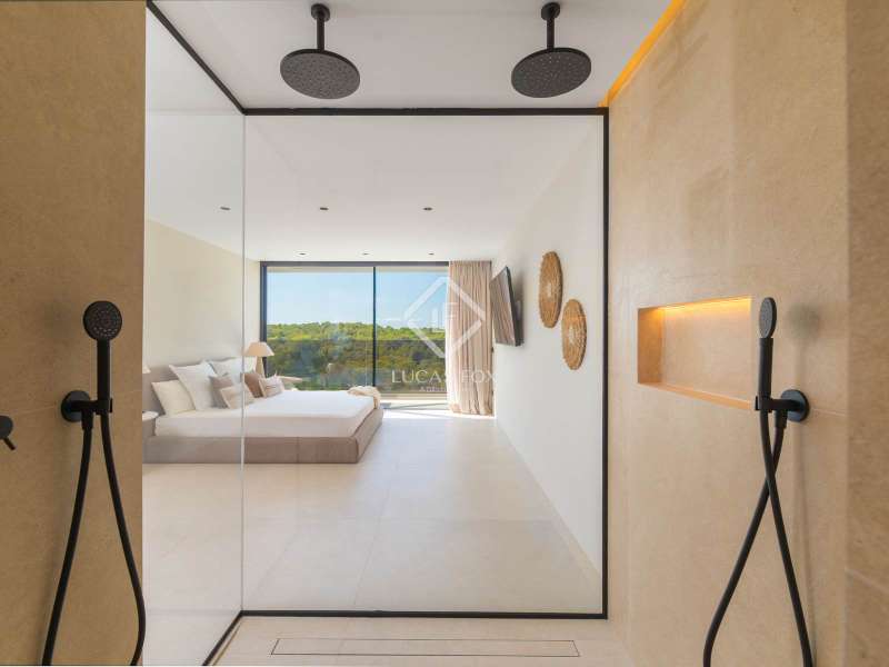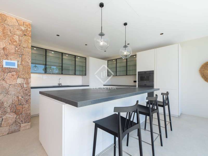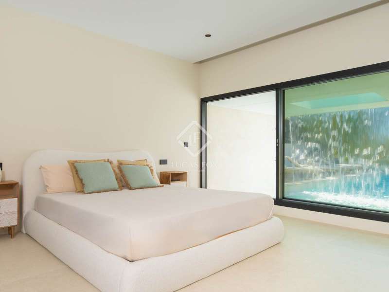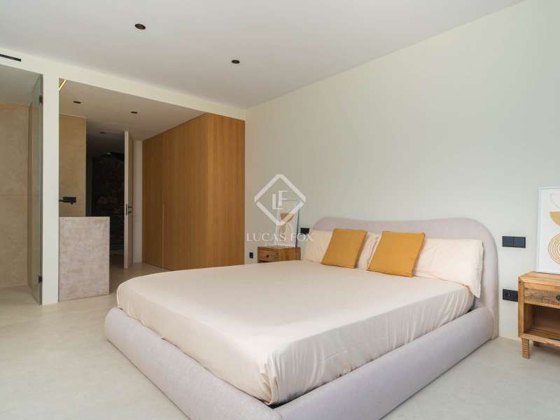 This exceptional residence offers a truly unique design, perfectly suited for a one-of-a-kind home. Designed by a renowned architect in the Balearic Islands, the project showcases a contemporary architectural style, blending cutting-edge elements with the natural beauty of the island. The house stands majestically overlooking the famous Cala Salada, boasting uninterrupted, panoramic sea views. Its striking three-story structure features two cantilevered levels that extend over the lush garden, creating a sense of grandeur and innovation. The property also includes a stunning outdoor swimming pool with a cascading waterfall, enhancing its sophisticated architectural allure. This avant-garde villa is constructed using the finest materials, with a minimalist aesthetic and top-of-the-line finishes throughout. The modern, polygonal design seamlessly integrates with the island’s traditional character, forming a harmonious blend of innovation and natural beauty. Spanning 551 m² across three floors, the villa offers five spacious bedrooms, each with an en-suite bathroom, and an array of luxurious amenities. These include an impressive infinity pool, a large terrace complete with a chill-out area, and a garage that accommodates multiple vehicles. Situated on a 1,000 m² plot, the property provides ample space for both relaxation and entertainment. Access to the villa is available from both the second floor and the ground floor. On the second floor, you'll discover a spacious living room and a state-of-the-art kitchen, both opening up to a vast terrace. This terrace features a splash pool that serves as the waterfall for the larger infinity pool below, adding an extra element of luxury and tranquility. A sleek staircase provides easy access to the pool area, offering a seamless indoor-outdoor living experience. The first floor houses the villa’s five generously-sized bedrooms, all equipped with en-suite bathrooms. Each shower is encased in glass, allowing you to take in breathtaking views while enjoying complete privacy. The minimalist aluminum-framed windows are fitted with acoustic and solar glass, flooding the home with natural light while maintaining energy efficiency and soundproofing. On the ground floor, you will find a spacious garage with room for several vehicles, a large storage room, and a utility area. This level can be accessed either via the internal staircase, the house’s private lift that connects all floors, or through the automatic gate at the front of the property, offering convenient vehicle access. On the second floor is the 86 m² rooftop terrace. This space has been thoughtfully designed with a dedicated chill-out area, complete with comfortable sofas, making it the ideal spot for relaxation and social gatherings. From here, you can take in the unparalleled views of Cala Salada and enjoy the stunning sunsets that grace this part of the island during the summer months. The terrace offers a panoramic view of the beach, providing a serene and picturesque backdrop to your everyday living experience. In every aspect, this villa represents the pinnacle of modern, luxurious living, combining avant-garde design, functionality, and the best of what the Balearic Islands have to offer.