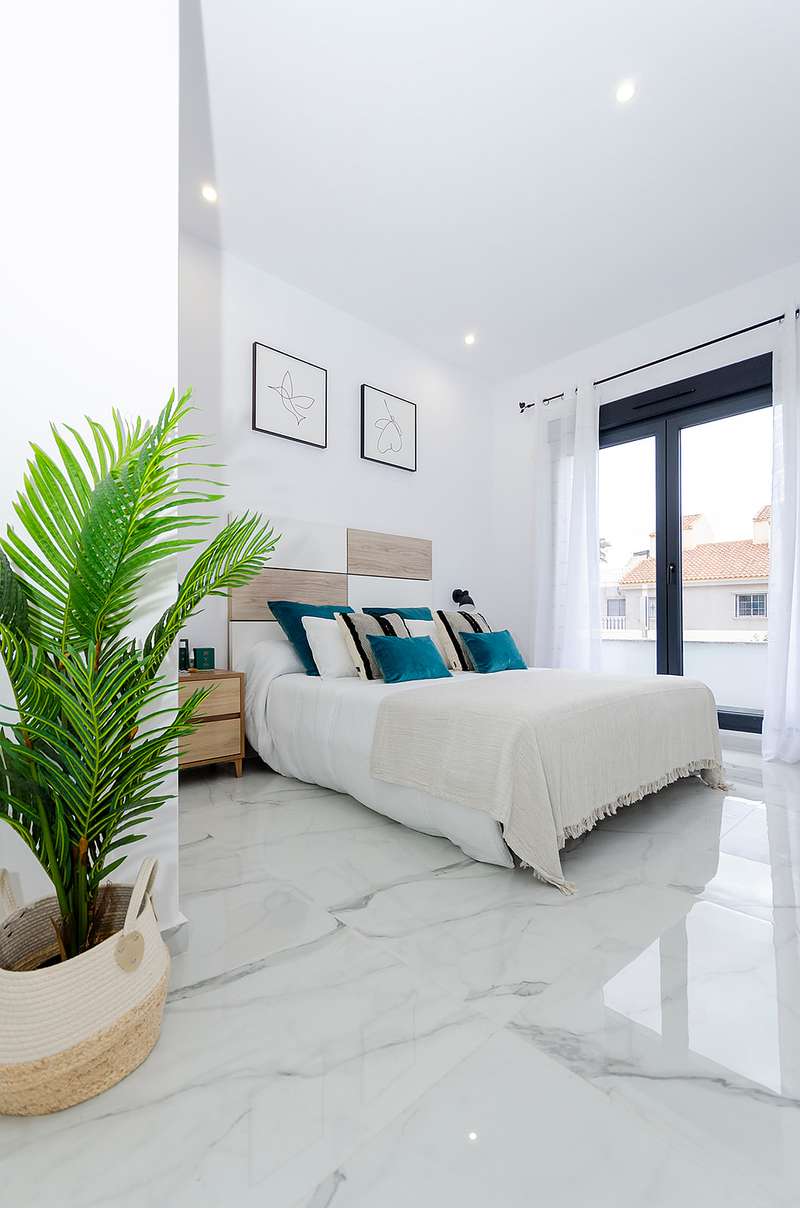 These residences enjoy an ideal location, close to the charming Torrevieja salt lake. The villas for sale in Torrevieja Alicante are situated just 1.8 km away from the renowned open-air shopping haven, Habaneras, and 2.2 km from both the Torrevieja water park and sports center. The stunning Playa del Cura beach is a mere 3.5 km away, while the lush fairways of the 18-hole La Marquesa golf course beckon at a distance of 12.5 km. Conveniently, the international airport of Alicante is just 44 km away, ensuring easy access for travelers.