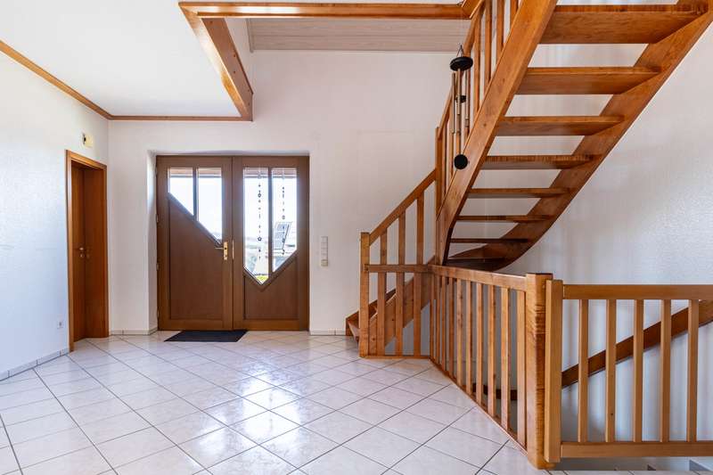 We present a very well-maintained detached house from 1992, which impresses with its high-quality construction and numerous features. With a living space of approx. 185 m², the property offers a comfortable and spacious home for families. The attractively designed house is situated on a plot of approx. 785 m² in a quiet residential area of Siedlinghausen. In addition to a spacious kitchen, the house has a total of five rooms, including a generous bedroom with en-suite shower room on the first floor and three bedrooms and a well-equipped bathroom on the upper floor. The room layout is ideal for families and also offers a private area for guests. Upon entering the house, you are greeted by a spacious, inviting entrance area that leads directly into the other rooms. The open-plan living area offers plenty of space as well as a modern wood-burning stove, which provides cozy warmth and a cozy atmosphere. Directly adjacent is the well-equipped kitchen, which offers amateur chefs every opportunity for culinary development. Another highlight is the light-flooded conservatory, which creates a special quality of stay and offers a perfect connection between inside and outside. From here, you have direct access to the terrace and the beautifully landscaped garden, which invites you to spend relaxing hours outdoors. Upstairs, three spacious bedrooms offer plenty of room for the family. The bathroom is accessible both from the hallway and directly from the master bedroom. All rooms are functionally designed and offer a high level of living comfort as well as flexible usage and design options. The energy-efficient construction of the house contributes to low energy consumption and is supported by a photovoltaic system, which enables environmentally friendly and economical operation. A garage integrated into the house offers space for two cars and additional storage space. There are further storage options in the basement, which offers additional space for household goods or hobby equipment. The location of the property is also remarkable. At an altitude of over 520 m above sea level, the house offers a pleasant and healthy climate. In addition, the quiet residential area offers quick access to schools, shopping facilities and leisure activities.