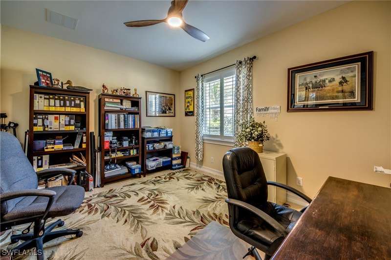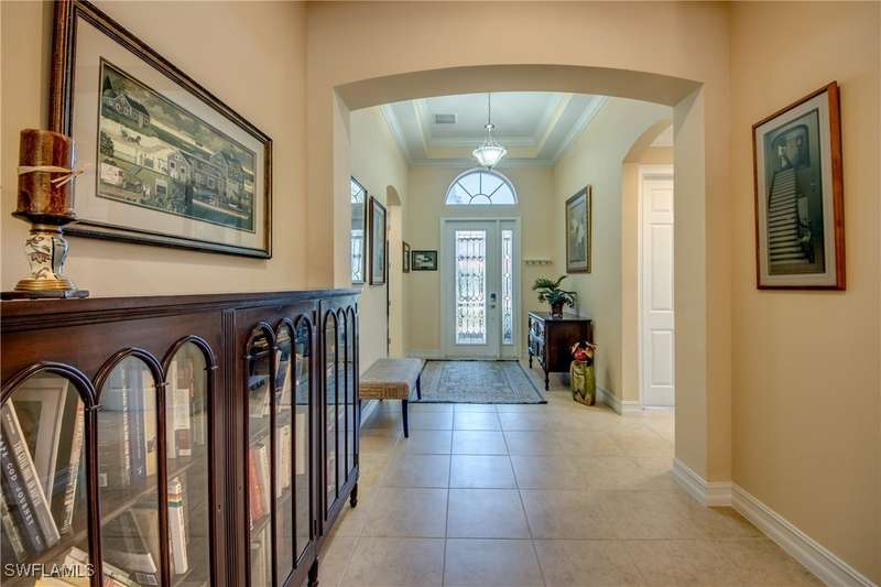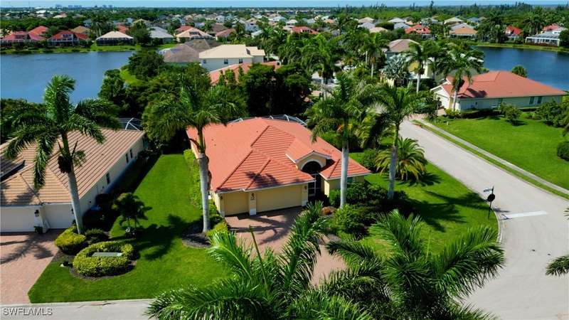 SELLER MOTIVATED! Presenting 2620 Stonyhill Ct, a gorgeous estate lot with room for a pool and a water view home in Sandoval, Cape Coral's premiere gated community! This 3BD+ Den/3 BA/ charmer boasts an air-conditioned 3 car garage and is nestled among majestic royal palms and lush tropical landscaping on a corner lot that has been meticulously maintained! Upgraded features include lovely crown molding, tray and vaulted ceilings with fans, arched doorways and plantation shutters, LVP flooring and neutral tile throughout. The fully equipped gourmet kitchen boasts SS appliances, rich dark cabinetry, a walk-in pantry, upgraded lighting, granite countertops and a decorator backsplash. And the large dining area and high-top bar are perfect for family gatherings and entertaining. Newer fridge and dishwasher added in 2025! The primary bedroom enjoys a separate lanai entry, two walk-in closets and a large ensuite bath with a separate shower and garden tub as well as two separate vanities and a convenient makeup desk. There are two additional bedrooms, one with its own ensuite bath and another full-sized bath and designated office/den that lend to the abundance of living space. The great room's pocket slider opens onto an inviting, oversized lanai with an electric rolldown shutter. And the side yard features delightful fruit trees including avocado, citrus and coconut. A gardener's paradise and perfect for enjoying SWFL's indoor/outdoor lifestyle. Schedule your personal showing today!