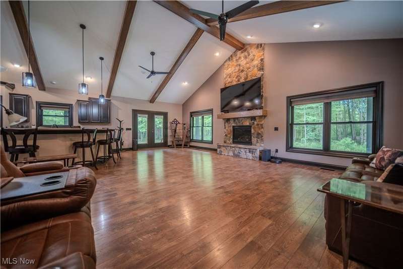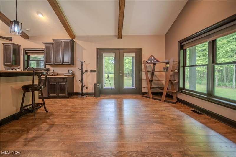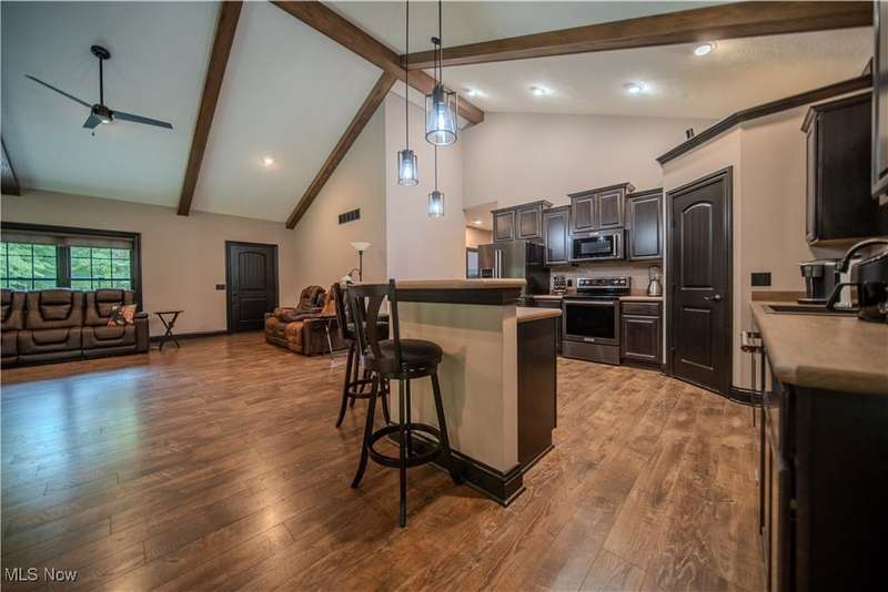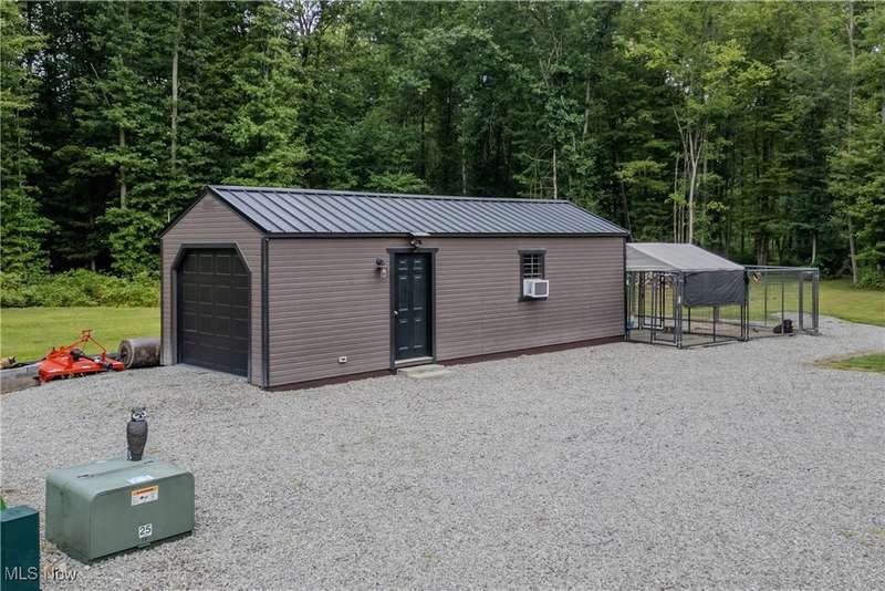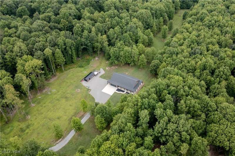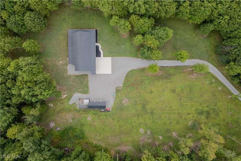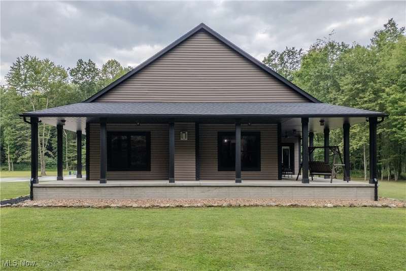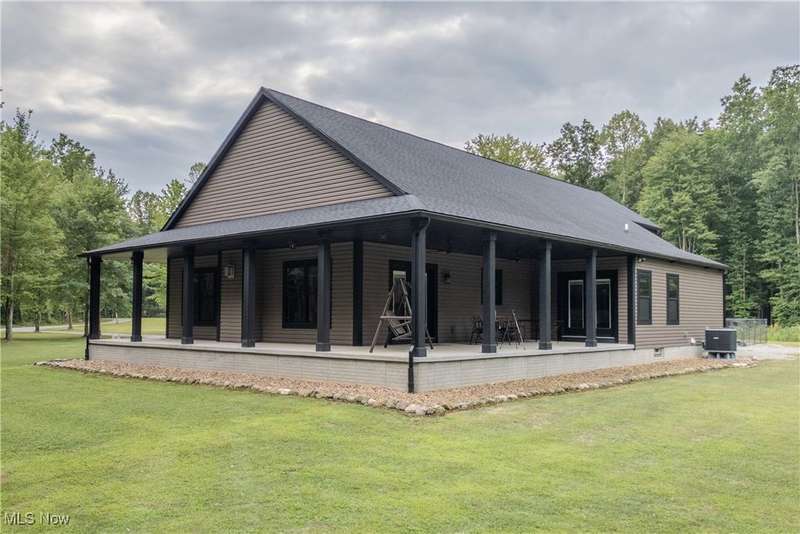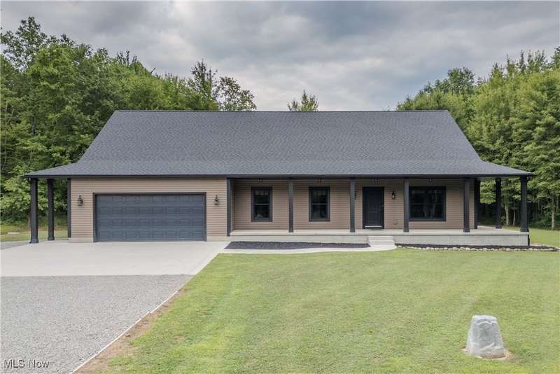 10 plus acres with a newer Ranch home that has covered porches wrapping around 3 sides. This is an exceptional property. The winding drive opens up to a magical landscape, secluded and bursting with nature's beauty. This home shows like new. 3 bedrooms and 2 full bathrooms. 9' ceilings on the first floor and the lower level. Ceiling fans in every room and on the porches. Open floor plan with fireplace in the great room with cathedral ceiling that is open to the dining area and kitchen with breakfast bar and soft closed cabinets. 1st?floor laundry. The lower level is roughed in for a bathroom. There are 2-waterheaters and many added touches. The home is lovely. There is a 12'x 32' shed with electric, heat/AC and a dog kennel. This is a property where the front yard is as lovely as the back. If you like nature and are looking for first floor living this is the property for you. It is being resurveyed and the parcel number will change at closing. Please call your favorite realtor for an appointment and come see what makes this unique find so special. Close to the college of medicine, Kent State and Akron University.