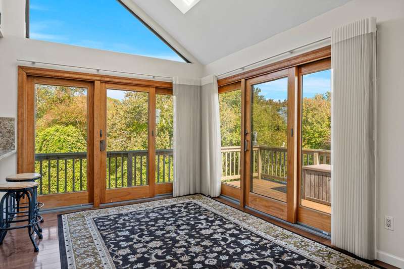 Villas on the Bay, a very sought after community sited on the quiet waters of Harts Cove with magnificent vistas onto Moriches Bay and beyond to the Atlantic. This upper end-unit with 2 bedrooms, 2 baths, one an en-suite, living room, dining area, kitchen with plenty of storage, a washer and dryer in the unit, and a huge deck overlooks paradise. The second level has a loft space and den. The main floor has vaulted ceilings and because it is an end unit there are fabulous views of the woods and the pond on the community's multi-acre property. There is a one car garage and basement in tandem. The amenities at Villas on the Bay include two tennis and pickleball courts, a heated gunite 50' pool, chaises and tables for your convenience and a shaded canopy. The wildlife is spectacular with many species of birds, Blue Heron, Cranes, and many other beautiful bird life, including the 2 swans that have made their home on the waters at the Villas. Spectacular sunrises are right outside your windows and sliders. The enjoyment of nature and beautiful glistening water offers an abundance of serenity and privacy. A perfect year round rental, bring your own furniture and settle into a restorative lifestyle. Listing ID: 926132