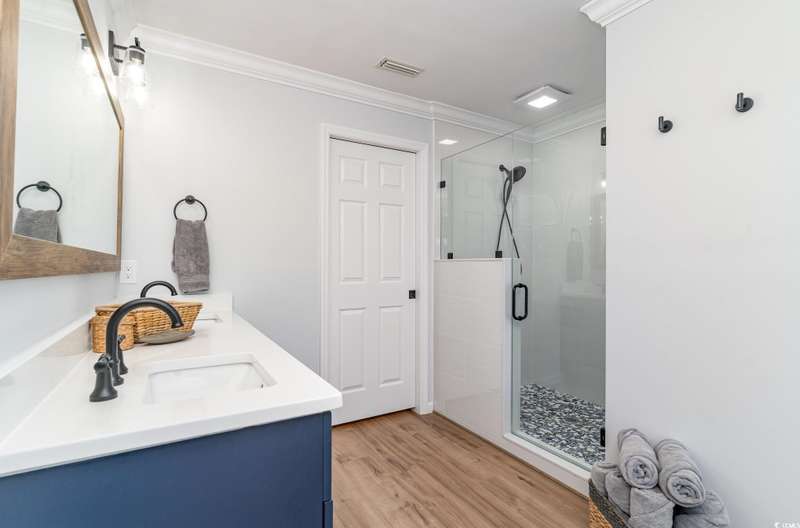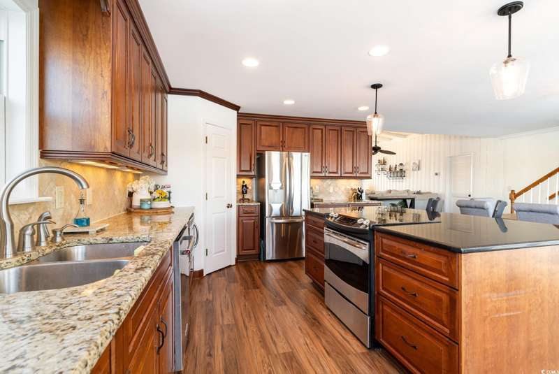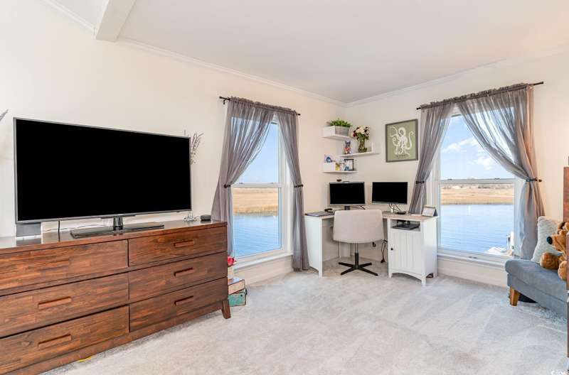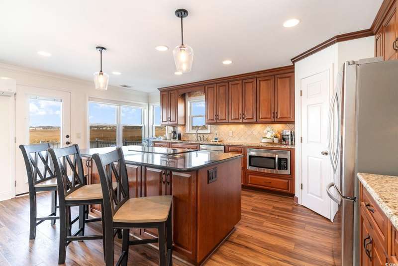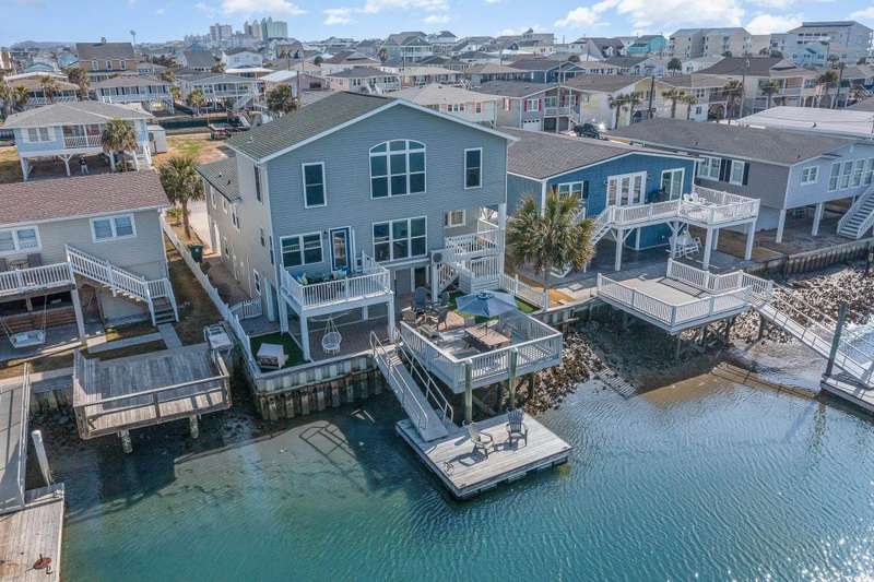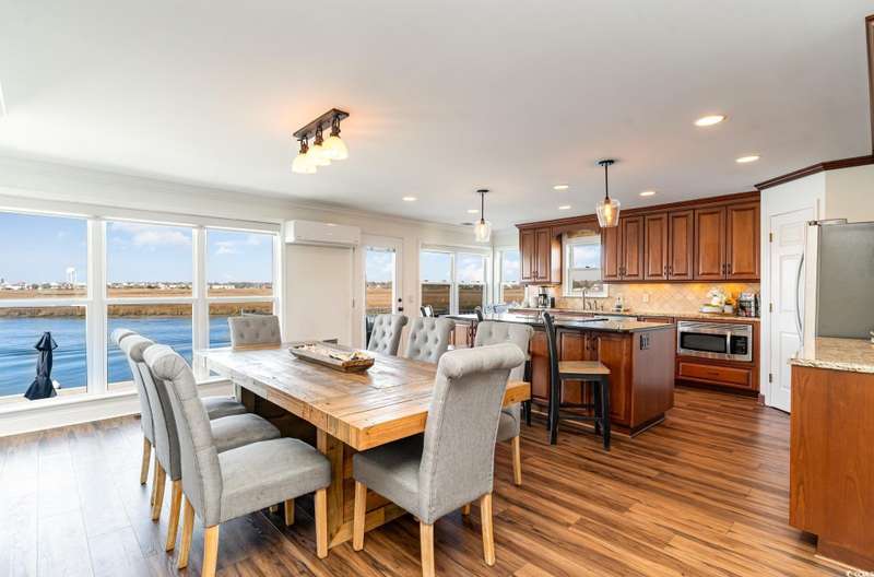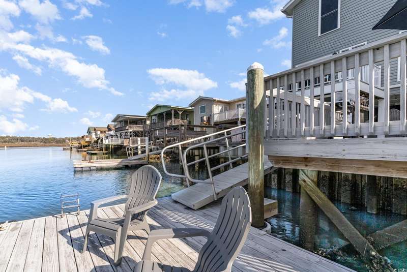 This is the one you've been waiting for! Welcome to your dream waterfront retreat. This stunning home offers unmatched inlet views, deep water access with a floating dock, and is just a short walk to the beach! As you enter the home, you will be blown away at the expansive water views. The large, elegant kitchen is what dreams are made of with crown molding throughout, a working island, stainless steel appliances, granite countertops and ample custom cabinetry. There are 4 bedrooms, 2 bathrooms, and a great living room on the main level that have been updated with luxury vinyl plank and tile flooring. The whole top level is dedicated to a private master suite with more breathtaking inlet views, 4 closets, and a renovated private bathroom with dual vanities and walk-in tile shower. There are many more updates to the home including two new HVAC systems, new windows, new siding and moisture barrier, new hot water heater, kitchen refrigerator and dishwasher, and fresh decking and railing on the rear porch. Out back is the perfect place to relax overlooking the water where there are frequent visits from dolphins. Fishing, crabbing, boating, or kayaking are very convenient from the floating dock. The massive two car garage adds to the convenience with lots of storage, parking space, and even a shower for rinsing off after a day at the beach. This home truly offers all of the best that coastal living has to offer, and it's being sold completely furnished making it "turn key"! Don't miss out on this rare opportunity to own the perfect beach home; schedule your showing today. All information is deemed reliable, but verification is the responsibility of the buyer.
