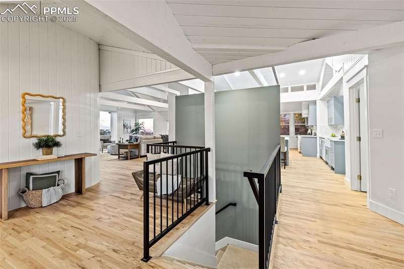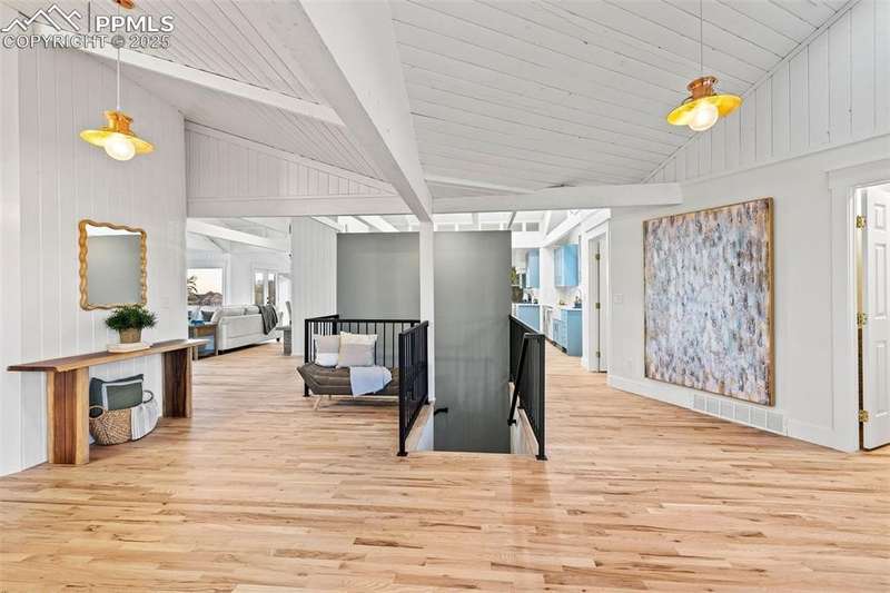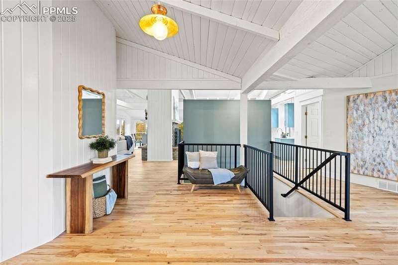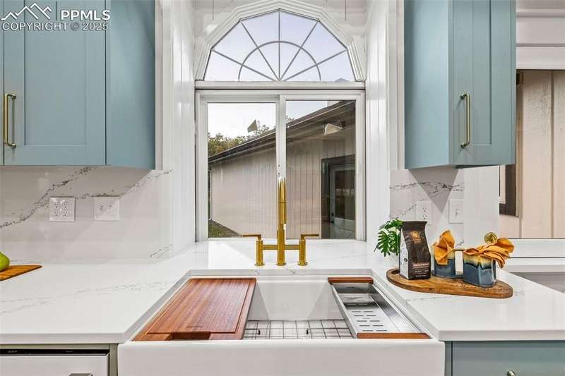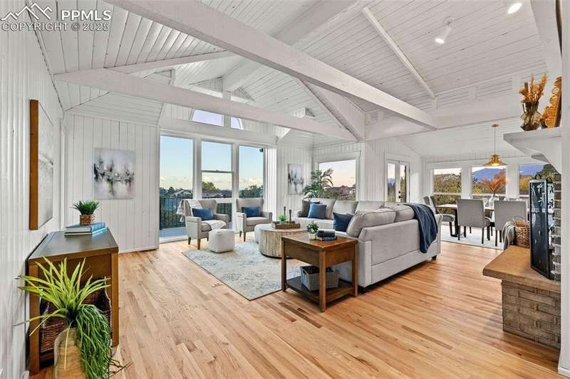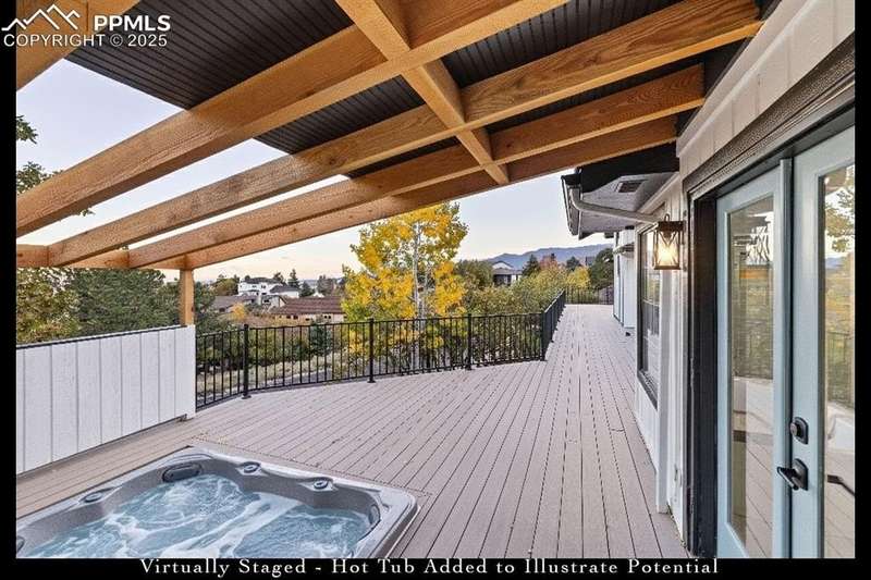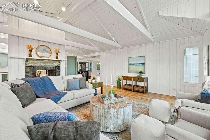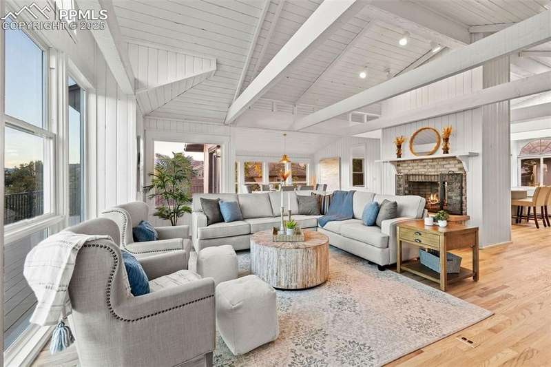 Rare Southern Cape Cod/Beach Style Retreat in Colorado Springs – City & Mountain Views! Welcome to this fully remodeled, one-of-a-kind Southern beach-inspired rancher perched in one of Colorado Springs’ most sought-after neighborhoods. Blending coastal charm with mountain living, this home offers breathtaking panoramic views of both the city skyline and the Front Range — a truly rare find in the region. Step inside and you will immediately notice the vaulted, beamed ceilings with tongue-and-groove detailing, setting a warm, airy tone throughout the open-concept main level. The heart of the home is a gourmet chef’s kitchen, featuring high-end GE Café appliances, double oven, and a stunning pass-through fireplace from both the kitchen and living areas. The expansive main-level master suite feels like a private retreat, boasting generous space, custom finishes, and spa-like elegance. Designer touches are found throughout the home, from curated lighting to premium flooring and custom cabinetry. Enjoy true indoor-outdoor living on the brand-new 1,800 sqft composite deck, perfectly positioned for spectacular city views and engineered for a drop-in hot tub. The walk-out basement offers additional living and entertainment space, seamlessly connecting to the beautifully landscaped yard. The home has new windows, deck, concrete patios, roof, A/C, all new landscaping and sprinkler system, interior/exterior paint, custom kitchen cabinetry, quartz backsplash, and everything cosmetic. This home is turn key and move in ready!