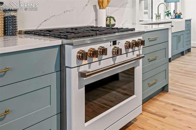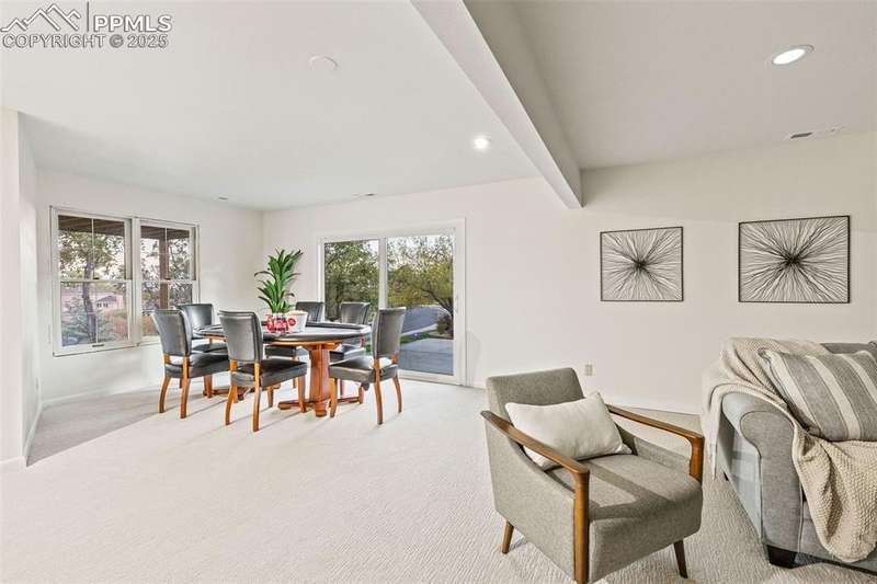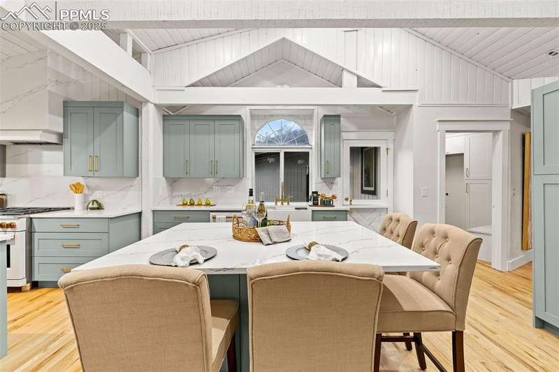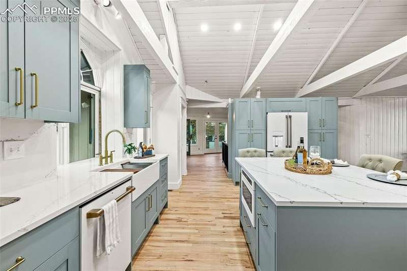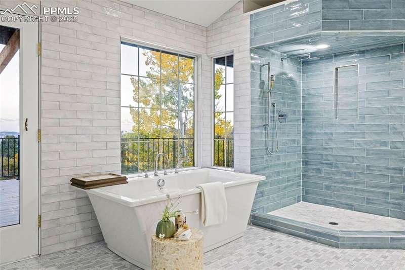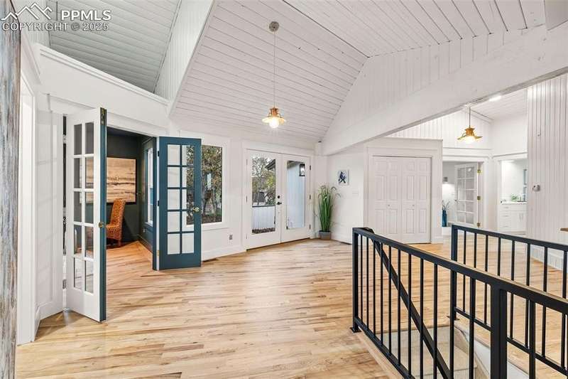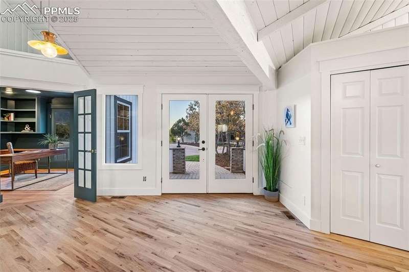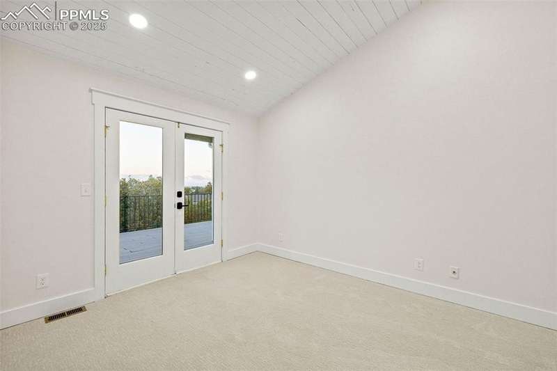 Rare Southern Cape Cod/Beach Style Retreat in Colorado Springs – City & Mountain Views! Welcome to this fully remodeled, one-of-a-kind Southern beach-inspired rancher perched in one of Colorado Springs’ most sought-after neighborhoods. Blending coastal charm with mountain living, this home offers breathtaking panoramic views of both the city skyline and the Front Range — a truly rare find in the region. Step inside and you will immediately notice the vaulted, beamed ceilings with tongue-and-groove detailing, setting a warm, airy tone throughout the open-concept main level. The heart of the home is a gourmet chef’s kitchen, featuring high-end GE Café appliances, double oven, and a stunning pass-through fireplace from both the kitchen and living areas. The expansive main-level master suite feels like a private retreat, boasting generous space, custom finishes, and spa-like elegance. Designer touches are found throughout the home, from curated lighting to premium flooring and custom cabinetry. Enjoy true indoor-outdoor living on the brand-new 1,800 sqft composite deck, perfectly positioned for spectacular city views and engineered for a drop-in hot tub. The walk-out basement offers additional living and entertainment space, seamlessly connecting to the beautifully landscaped yard. The home has new windows, deck, concrete patios, roof, A/C, all new landscaping and sprinkler system, interior/exterior paint, custom kitchen cabinetry, quartz backsplash, and everything cosmetic. This home is turn key and move in ready!