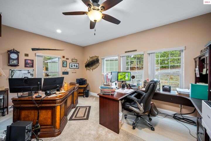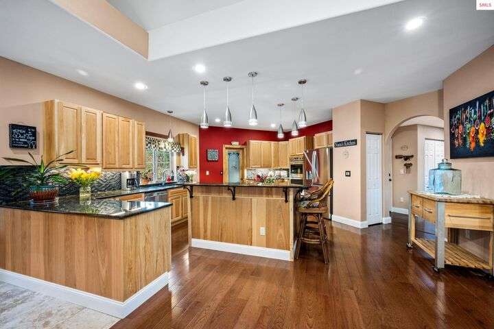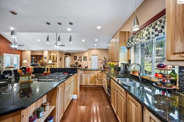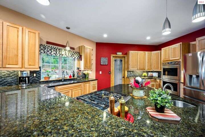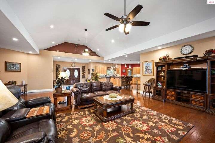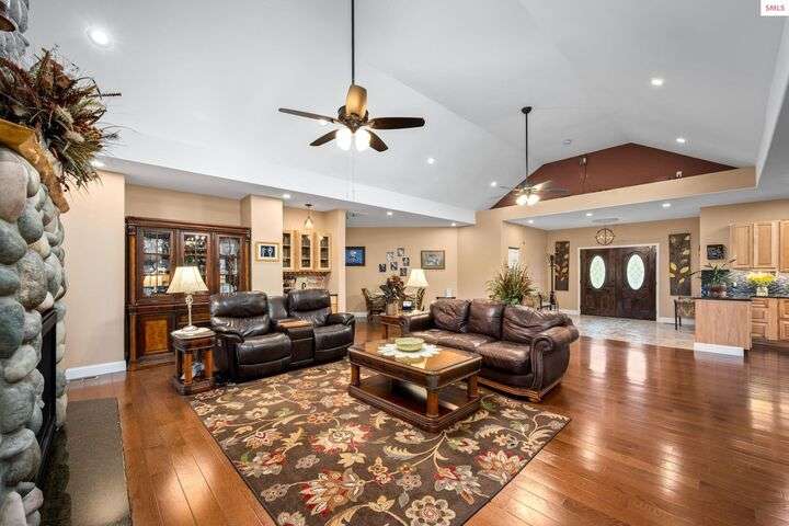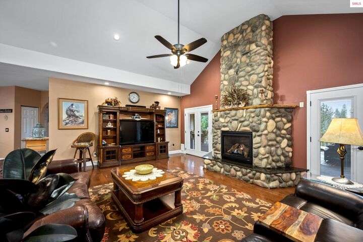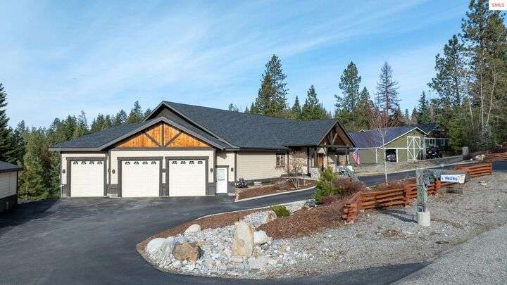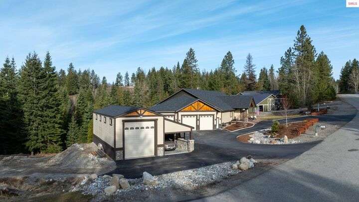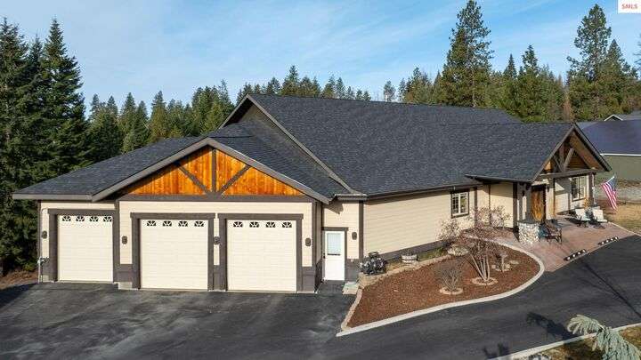 Nestled on 1.89 acres of peaceful, tree-lined land in Rathdrum, this custom-built home offers two master suites, making it ideal for multi-generational living or hosting guests in comfort and privacy all on one level. Built in 2020, this home features 4 spacious bedrooms, 2.5 baths, and an open-concept design. The stunning custom rock fireplace is the focal point of the vaulted main living space. The 32x45 shop provides ample room for all your vehicles and hobbies, while the covered deck is perfect for entertaining or relaxing. After a long day, unwind in the hot tub and watch deer pass by in the serene surroundings. Located just a short drive from town for all your shopping needs, this home also offers light CCRs, no HOA, a private well, and a whole-house backup generator. Plus, with an easy commute into Spokane, this property truly offers the best of North Idaho living.