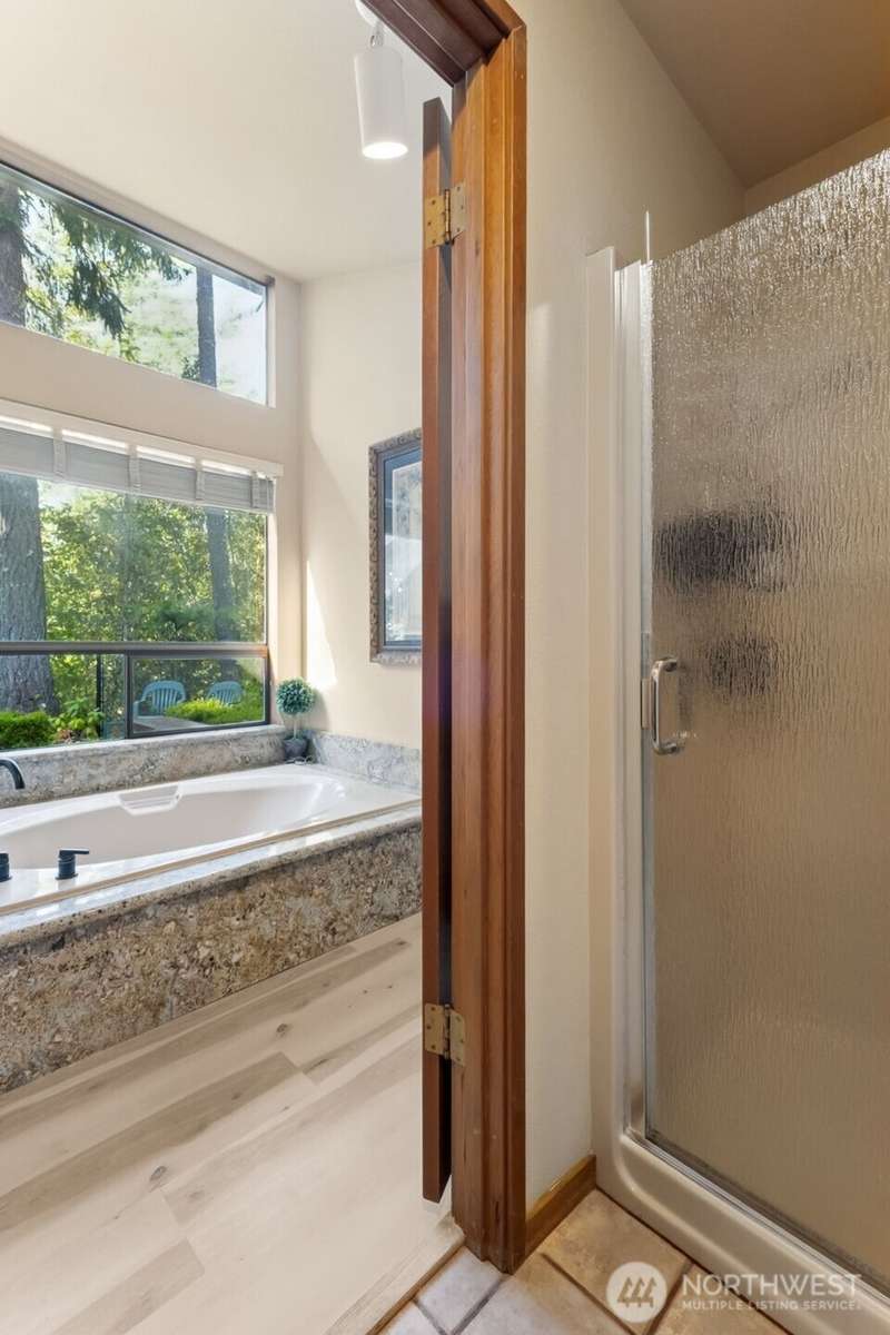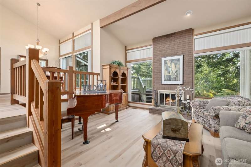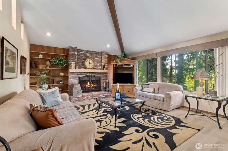 Welcome to this custom 2,800 sq ft multi-level 3-bed plus flex room, 2.5 bath home in the serene Highlands of Cedar River on .74 acre wooded lot. Main level includes entry, dining, newly remodeled eat-in kitchen, spacious family room w/fireplace & primary suite. Sunken formal living room w/vaulted ceiling & gas fireplace is great for relaxing. Quartz counters, new appliances & storage complete the gourmet kitchen. Expansive windows are designed to provide lots of light throughout. Generous deck space provides ample room for entertaining. Primary sliders access private patio. Large laundry w/abundant storage has room for everything! Garage/laundry access to massive storage area/possible extra room. 840 sq ft garage, wired for generator.