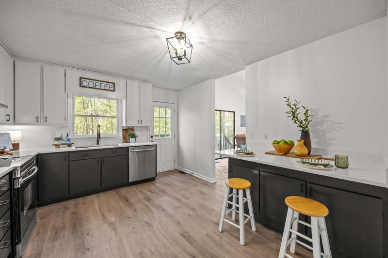 Chapel Hill Cutie! Fall in love with this 3 bedroom, 2 bath mid century modern ranch tucked into a peaceful, wooded 1.35 acre setting - a true nature lovers paradise with NO HOA! Live freely and enjoy the serenity of this tranquil property just minutes from all that Chapel Hill has to offer. This home has been beautifully updated with a new roof, fresh exterior paint & trim, new Luxury Vinyl Plank Flooring, crisp ''white'' interior paint, stunning Carrara Roma white quartz countertops, new stainless steel range, new ''farmhouse style'' spring handle kitchen faucet and sprayer, large 33 inch stainless steel under-mount sink with integrated workstation. (Molded ledge for sliding custom accessories including cutting board, drying rack and produce rinsing racks. A protective fitted steel grid draining rack lines the bottom. The interchangeable sliding accessories simplify meal prep, clean up and add additional meal prep space.) Enjoy a new stainless steel dishwasher, new whole house blinds, updated bathroom vanities, tub/shower inserts, and new commodes. You'll also appreciate the pretty new black farmhouse style lighting, coordinating faucets, door knobs and hinges. So many thoughtful touches that make this home shine! The laundry room is a great size and can accommodate extra storage needs. Each secondary bedroom has a nice size closet. The owner's suite has a large walk-in closet and pretty double vanity in the ensuite bathroom. Allergy sensitive or pet owners will love this ''NO CARPET'' house! The consistent use of the LVP flooring makes a beautiful ''stylistic'' approach but also provides ''clawshield'' which resists pet scratches and ''Activelife Shield'' that resists dents and abrasions. The Stainmaster brand is 100% waterproof, stain resistant and easy to clean for everyday wear and accidents. Plus rest easy as this Stainmaster Pet Protect luxury vinyl plank floor has a lifetime warranty! All bedrooms have new modern fans. Enjoy cozy fires in the woodburning fireplace & spread the fun outside while you entertain on the LARGE deck space! The backyard is a blank slate for added fun! Fenced yard is perfect for pets or play. Perfectly located within 5 miles to the Carrboro Farmers Market, under 7 miles to UNC Hospital and less than 20 miles to Duke Hospital. Neighborhood has covenants but not a HOA. Home is ideal for a primary residence or would make a wonderful investment opportunity as well! Only County Taxes. Enjoy the privacy and peaceful lifestyle you crave, while being just minutes from football games, dining & Chapel Hill charm!