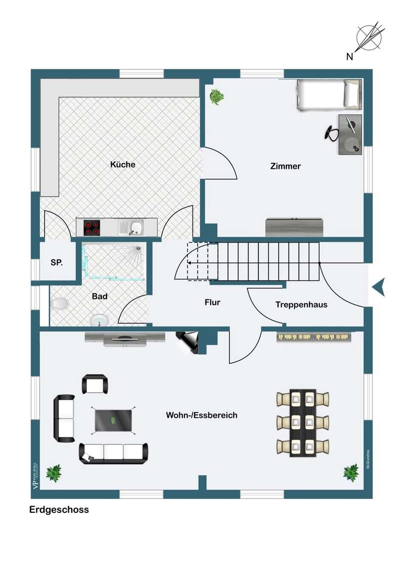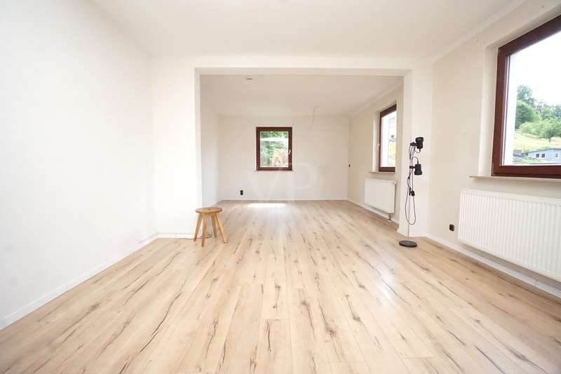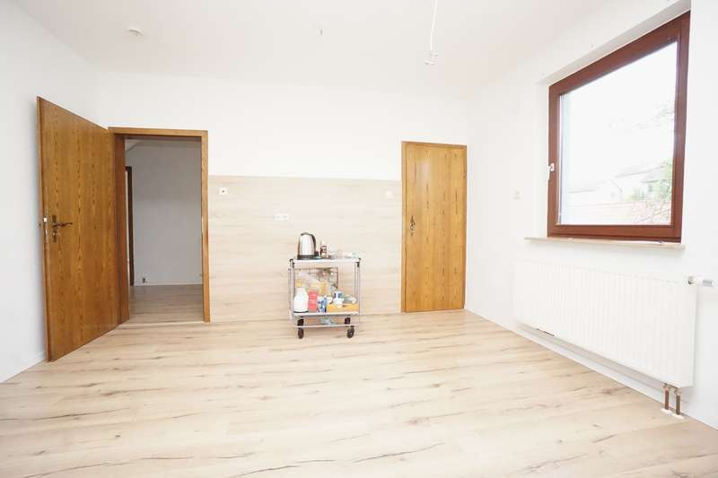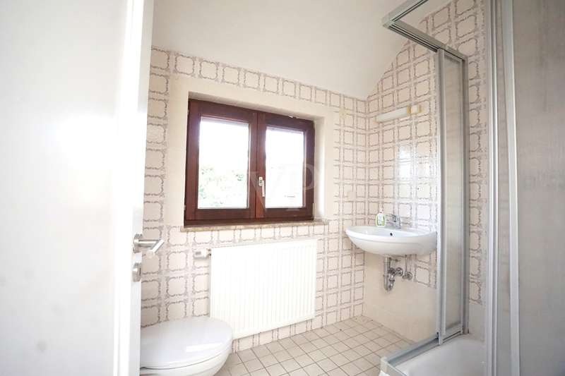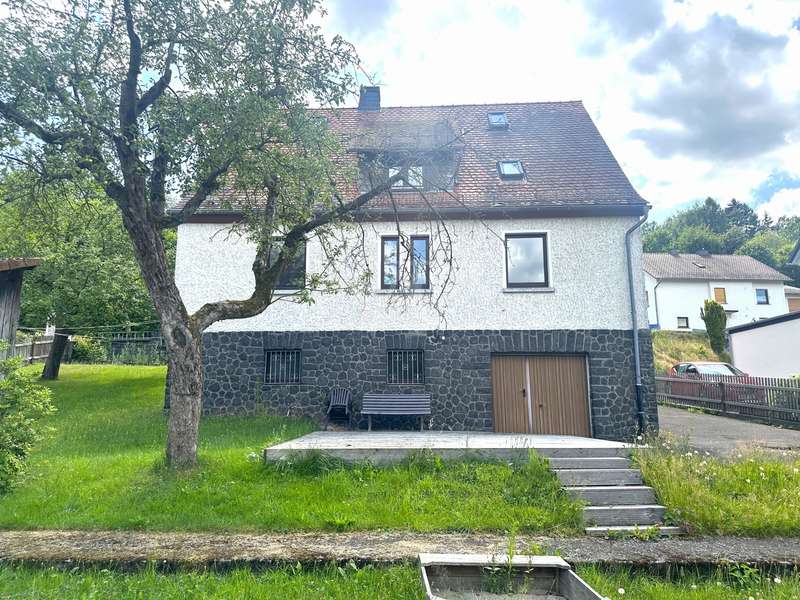 This detached single-family home stands on a beautiful, approx. 638 m² plot in a quiet location on the outskirts of the village. The solid building was constructed in 1951 and has a full basement. The living space, spread over the ground floor and attic as well as five rooms, totals approx. 128 m². On the first floor there is a bright living and dining area, a separate kitchen with a practical pantry and a further room that can be used as a children's room, study or guest room. There is also a modern daylight bathroom, which is equipped with a floor-level shower. On the top floor you will find the bedroom with its own dressing room, two further rooms, a daylight bathroom with shower and a storage room. The basement has ample storage space in the cellar rooms, a laundry room and a small garage, which can be used as a work or hobby room or for storing bicycles/motorbikes. The attic offers additional storage space and was clad with wood a few years ago. The idyllic garden invites you to linger, a wooden terrace has been laid out and offers space for a cozy seating area. A tool shed is also available. The property has been partially refurbished. The windows are predominantly double-glazed wooden windows from the 1980s. Three windows have already been replaced with triple-glazed plastic windows in 2022/23. The interior was renovated in 2017 and a timeless vinyl design flooring was laid. The heating system was also modernized in 2017 and the house was connected to the local heating supply (operated with wood chips + biogas plant). Energiegenossenschaft Poppenhausen eG has been supplying the house with heating and hot water since 2018. The property is being handed over freehold and can be handed over at short notice.