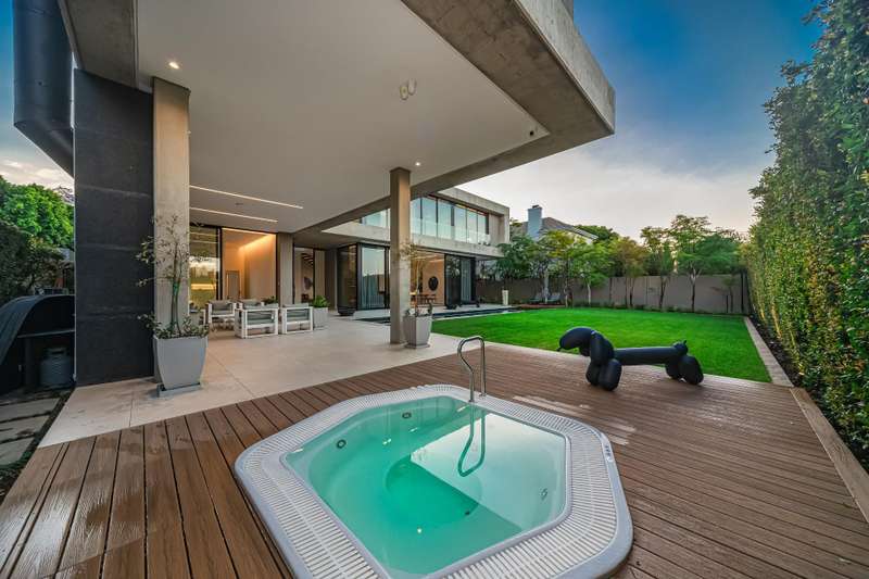 BRAND NEW LUXURY RELEASE Welcome to this exquisite, BRAND NEW Luxury Home in Hyde Park Sandton. This contemporary masterpiece is located within a double-gated private mini-estate, offering enhanced security measures with layered entry protocols. Perfectly positioned, the residence is just a short 500 meter stroll away from the prestigious Hyde Park Corner Shopping Centre, providing convenience at your fingertips. Gazing out from this magnificent property, you'll be treated to the exceptional panoramic views over the leafy green Hyde Park, a rare and breathtaking sight. Meticulously designed, by the pen of renowned architect Enrico Daffonchio , the creative mind behind this exceptional creation, has seamlessly blended modern aesthetics with timeless elegance. The result is a home that reflects the architectural brilliance akin to world renowned designers like Frank Lloyd Wright. This residence promises to transcend time itself, remaining an icon of bespoke design and contemporary living for years to come. As you enter the premises, an instant sense of opulence and luxury envelops you. The motor court welcomes you, with ample space to accommodate up to 7 vehicles in the parking garage, complete with automated feature doors. A grand double-volume bespoke solid steel front door sets the tone, commanding attention and adding a touch of exclusivity. Additionally, a private guard house ensures optimal security for your peace of mind. This impeccable, luxury home in Hyde Park Sandton is a true testament to sophistication, design and refinement. With every aspect of this home, carefully considered and meticulously executed, it represents a seamless fusion of architectural brilliance, luxurious comfort, and security. Don't miss the opportunity to call this extraordinary property your own and experience the epitome of high-end design and contemporary luxury living. LOWER LEVEL: - Triple Volume Ceiling Height - Grand Gallery And Entrance Hall - Spacious, Open Plan Lounge & Dining - Wood Burning Fireplace (Main Entertainment Space) - Gourmet Chefs Kitchen, With Cold Room - Stephen Pikus Light Design - Breakfast Nook - Guest Room, With En-Suite - Guest Bathroom - Scullery And Laundry - Seven Car Garage UPPER LEVEL: (Accommodation) - Luxurious Main Bedroom Suite, With En-Suite - Walk-In Wardrobes - Storage Room - Spacious 2nd Bedroom (With En-Suite) - Spacious 3rd Bedroom (With En-Suite) - Panoramic Views - Oggie Hardwood Flooring OUTSIDE SPACES: - Bespoke, Lap Swimming Pool - Jacuzzi - Outside Lounge Area - Built-In Braai And Alfresco Dining Area - Manicured Gardens ADDITIOAN SPACES: - Double Staff Quarters (Both En-Suite - Outside Terrance