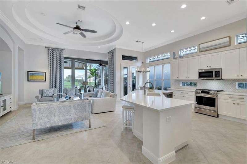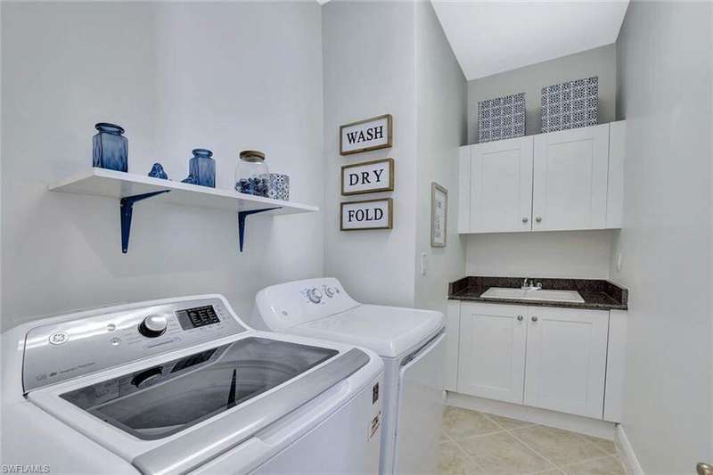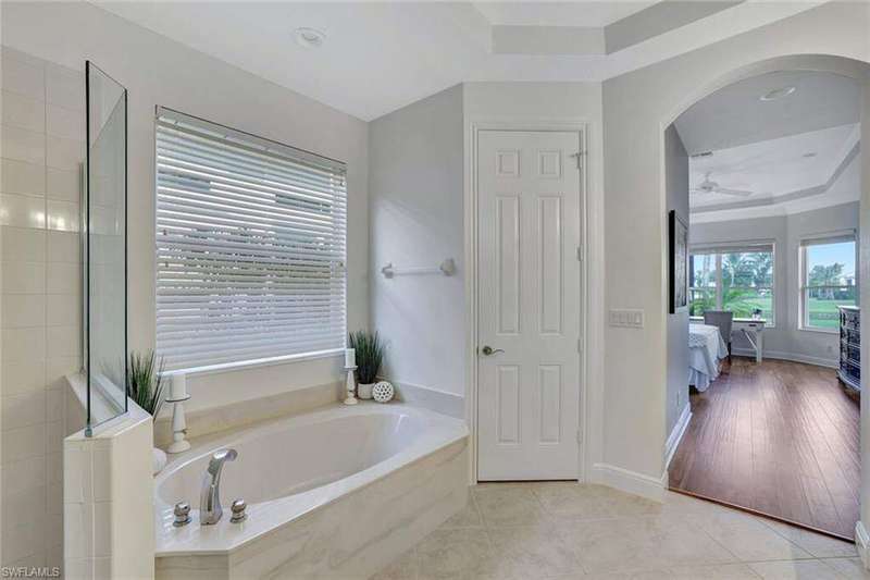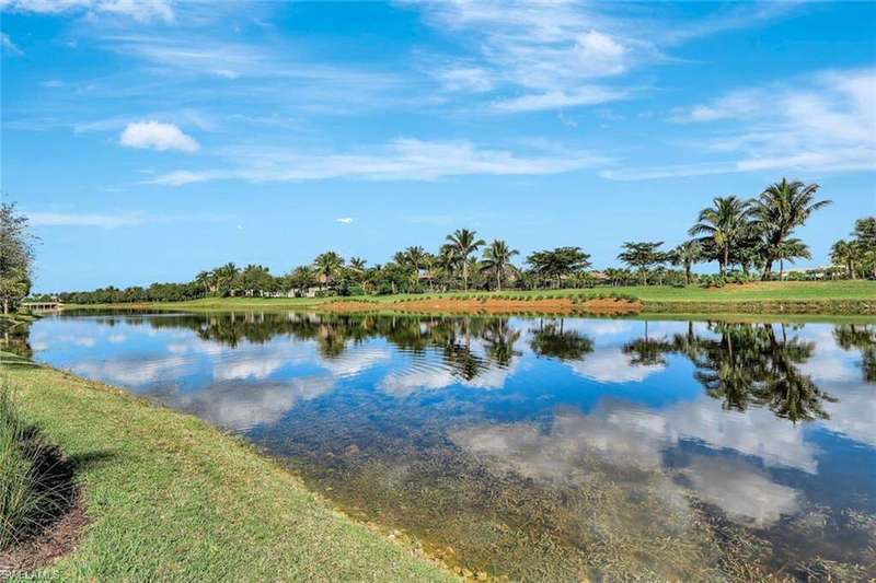 Welcome to this Gulf Bay-built, Primrose model featuring 3 bedrooms, 2 bathrooms, a formal dining/den space and plenty of room for entertaining. The front elevation of the property features elegant architectural elements including a stately wooden garage door, a quaint iron gate that leads into a charming courtyard, and a soaring turret. As you enter the foyer, you are greeted by generous amounts of natural light cast from the various accent windows and the formal dining room's French doors. Step into the great room featuring a stunning kitchen with white quartz counter tops, white cabinetry, and stainless steel appliances. The high ceiling, eat-in kitchen and expansive countertop-height island create an enticing atmosphere for your guests to mingle. The great room opens onto the lanai through zero degree sliders, creating a seamless transition between your indoor living space and the garden-esque tranquility of Fiddler's Creek. The Primary suite features walk-in closets, wood flooring and additional space for a reading nook or office. The home is further equipped with euro-glass shower doors, a Generac Generator, a tankless water heater, an epoxied garage floor, a cypress ceiling over the lanai, a panoramic lanai screen, a lanai awning and a large swimming pool. The award-winning, resort style community of Fiddler's Creek is enhanced by a club and spa, fitness center, swimming pools, two golf courses, tennis courts, pickleball courts, a bocce court, fine and casual dining, social activities, and miles of biking and walking paths. Optional beach club and marina memberships are available. Experience the epitome of luxury living, where every detail is thoughtfully curated to complement your lifestyle. Debt Service CDD PAID IN FULL