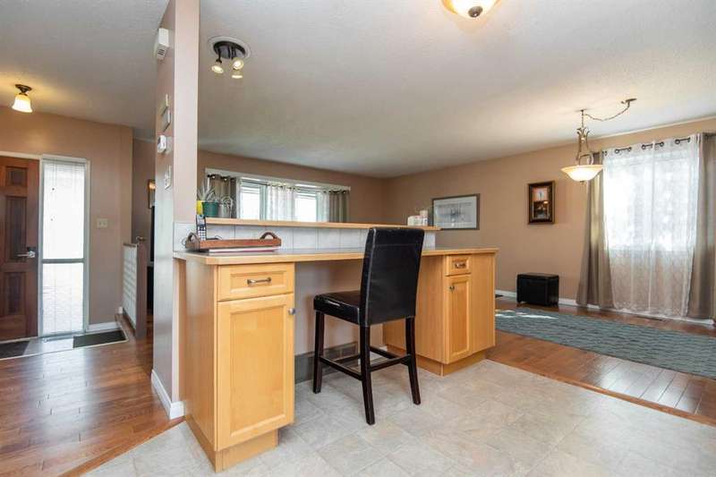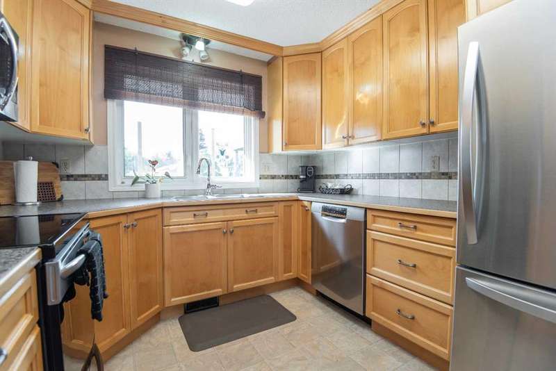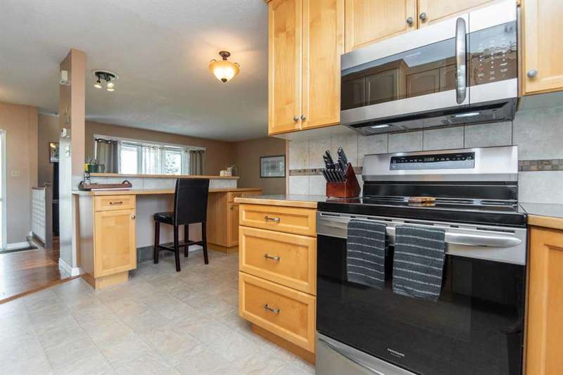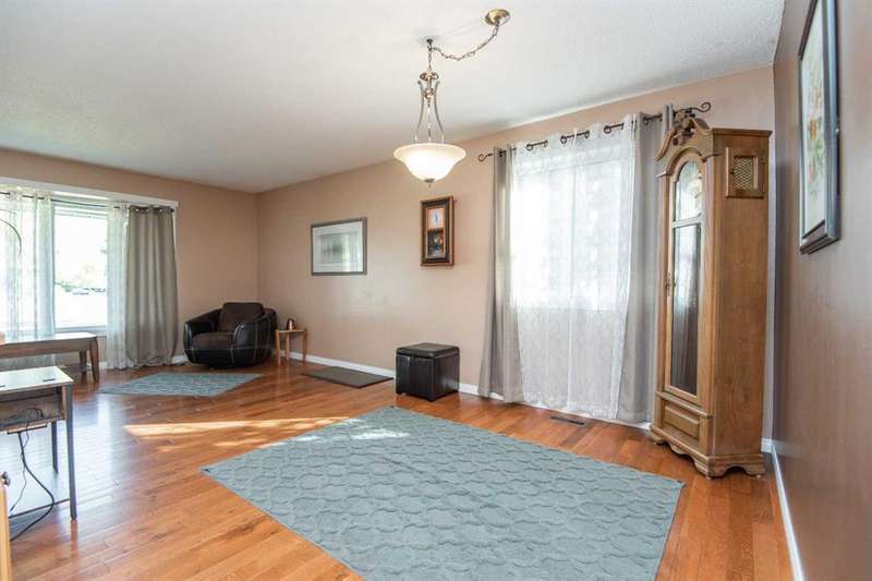 Welcome to this beautifully maintained 2,521 total square foot, 4-level split in the quiet, family-friendly neighborhood of Oriole Park. Situated across from a green space on a low-traffic street, this home offers both comfort and privacy. The main floor features an open-concept layout with a spacious living room, dining area, and a bright kitchen complete with a center island and stainless steel appliances. Fresh paint in select areas through out the home, new carpet, and vinyl windows add a modern, move-in-ready feel. A convenient 2-piece bathroom and laundry room are also located on this level. Upstairs, you’ll find three bedrooms, including a generous primary suite with a 3-piece en suite, plus a full 4-piece bathroom for the family. The lower level hosts a fourth bedroom, a 3-piece bathroom, spacious family room with a masonry fireplace, and a storage room. Heading into the basement is an open canvas with potential for another bedroom (window would need to be measure for egress) another living space and plenty of storage. Enjoy the outdoors in the large, private and fully fenced backyard, surrounded by mature trees and featuring an apple tree for seasonal charm. The freshly stained deck spans the entire back of the home, perfect for entertaining or relaxing evenings. A double detached garage (23.5'x25.6') adds convenience and functionality. This is a clean, well-kept home with thoughtful updates, ready for its next family to make memories.