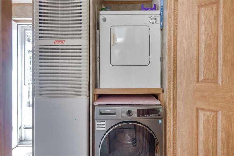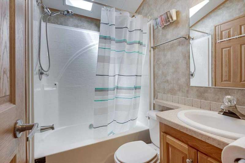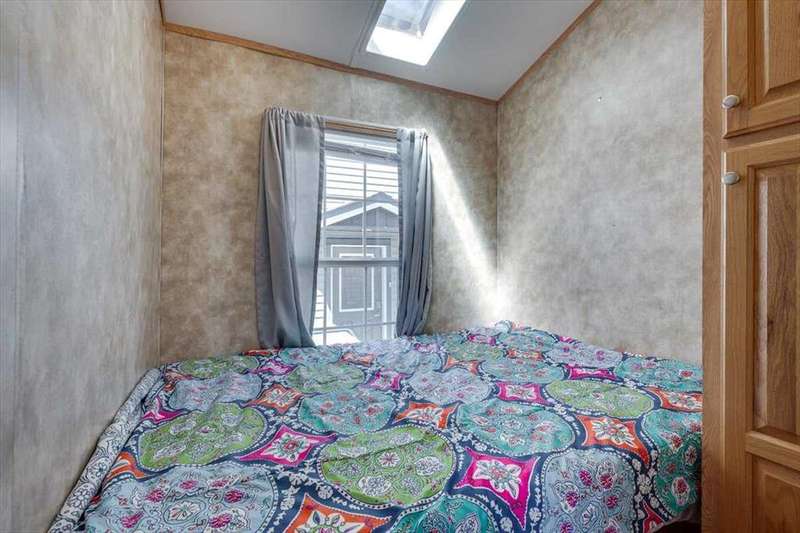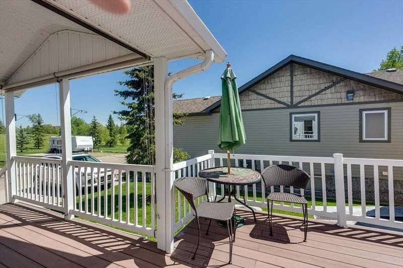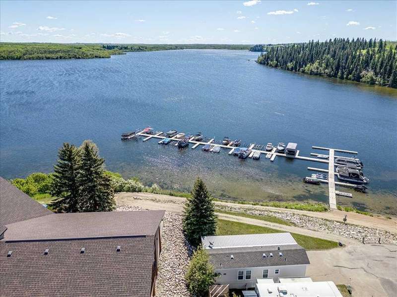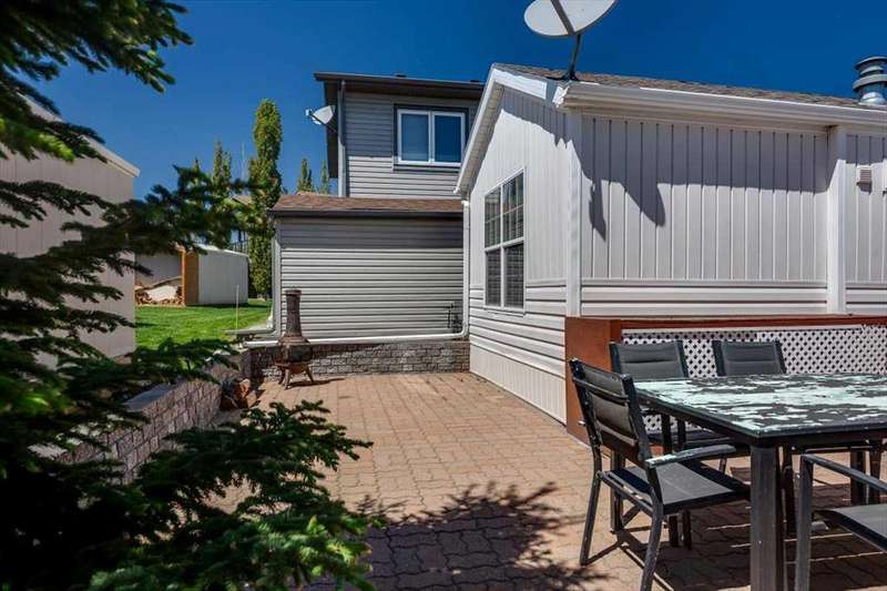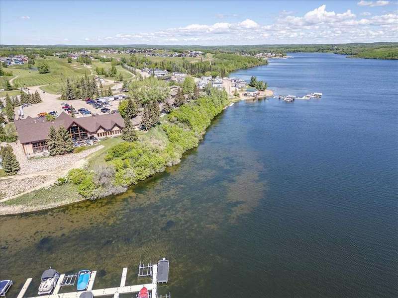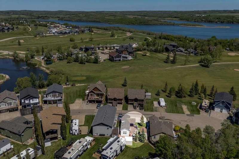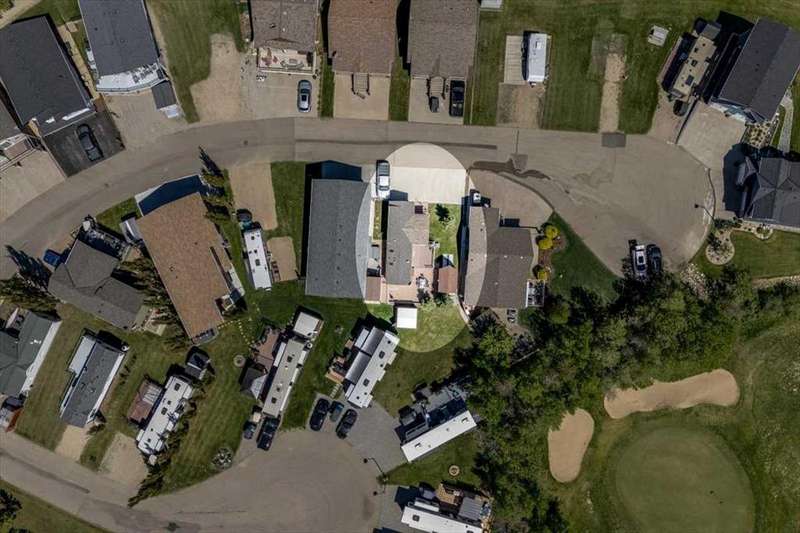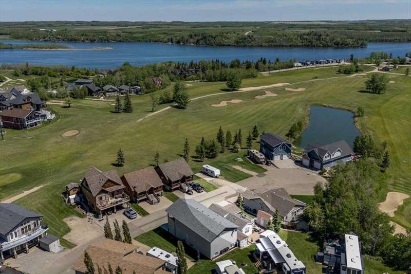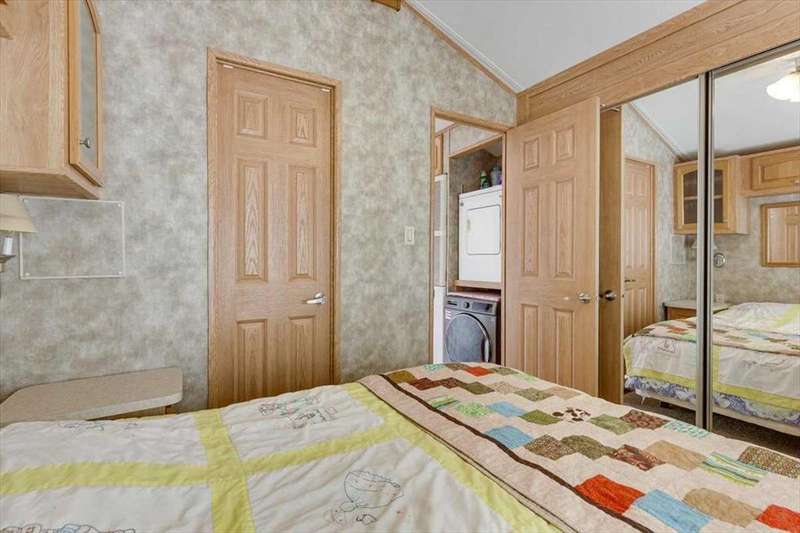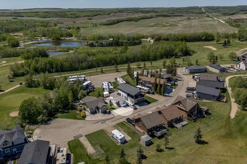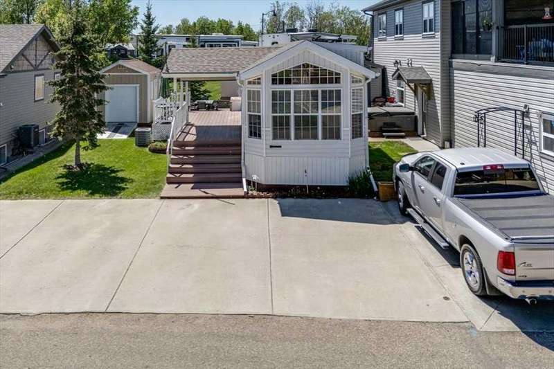 Escape the hustle of city life and enjoy year-round living at the beautiful Whispering Pines Golf & Country Resort. This property is situated on stunning Pine Lake, offering the perfect setting for relaxation, recreation, and creating lasting memories. This lot features an exceptionally clean and well-maintained park model unit, ideal for those looking to downsize, enjoy a peaceful retreat, or entertain family and friends. Just unpack and start enjoying resort living. This fully winterized park model unit features an open-concept layout with vaulted ceilings and floor-to-ceiling windows that flood the space with natural light. The spacious living area includes an electric fireplace for cozy evenings, while the modern kitchen is equipped with a gas stove, fridge, microwave, down the hall, you have a stacked washer/dryer. You will be very comfortable with 2 bedrooms, the primary bedroom has beautiful built-ins for storage. Also enjoy a spacious 4 piece bath. Step outside onto the south-facing composite deck, partially covered for all-weather enjoyment. Patio pavers along the side and back provide extended outdoor living space, perfect for morning coffee or enjoying a night under the stars. A 12x9 insulated shed is included for extra storage. Never worry about parking for your boat or golf cart with a 4 car concrete driveway. As a resident of the Whispering Pines gated community, you’ll enjoy access to a wide array of resort-style amenities designed for all ages and lifestyles. Highlights include a scenic 18-hole golf course, an indoor pool and hot tub, a full-service restaurant and bar, sports courts, a playground, a 55-slip marina, and a private beach. Your monthly condo fees provide exceptional value, covering services such as water and sewer, snow removal, professional property management, reserve fund contributions, and full access to all shared amenities, as well as year-round grounds maintenance. Close enough for convenience, far enough for peace just 90 mins from Calgary and 30 mins from Red Deer and Innisfail. Live where others vacation, make Whispering Pines Golf & Country Club Resort your new home.