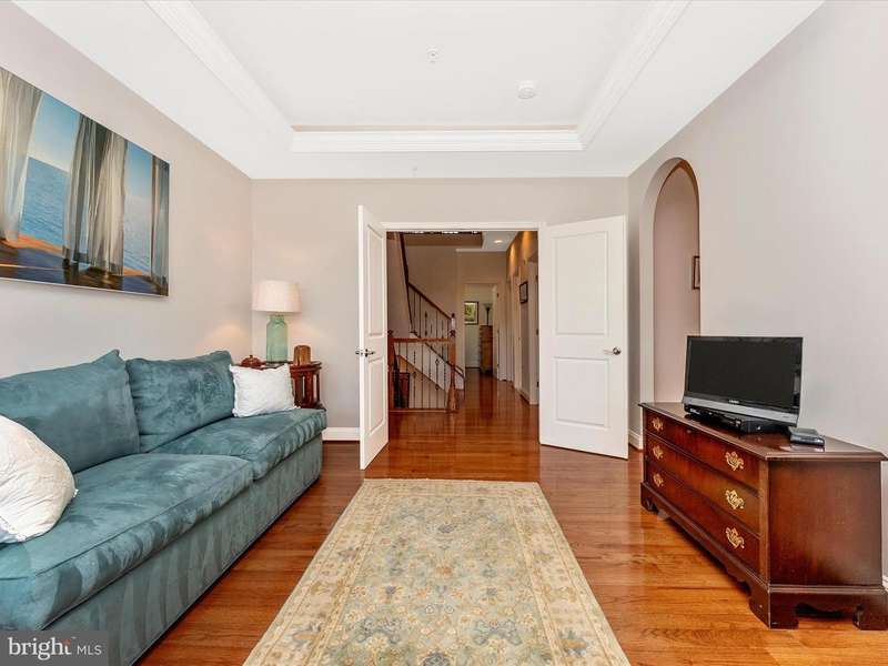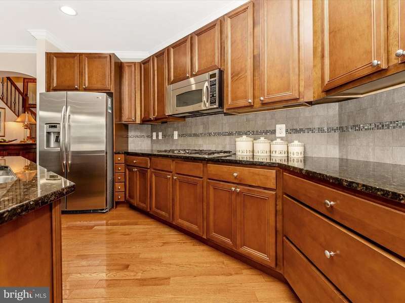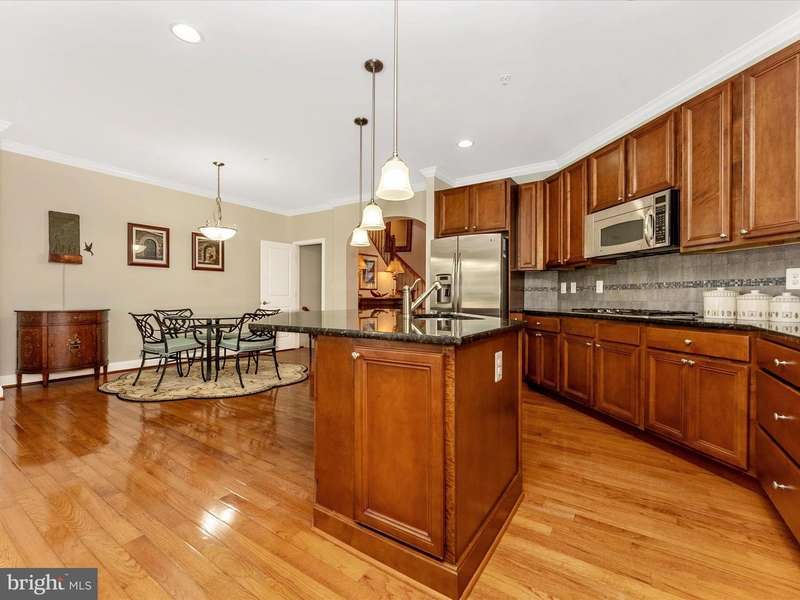 This beautifully designed townhome offers 4 spacious levels and is filled with high-end finishes and thoughtful details throughout offering the perfect blend of space, style, and convenience. Step into a hardwood foyer that leads seamlessly into an open-concept main level featuring elegant hardwood floors throughout. The gourmet kitchen is a chef's dream, boasting 42"" soft-close cabinets, a double pantry, a spacious island, and a 5-burner gas cooktop. The kitchen opens to a cozy family room with a gas fireplace and access to a beautifully landscaped backyard oasis with no grass to mow. A detached 2-car garage with a built-in shelving system adds functionality and ample storage. Upstairs, the owner's suite offers a peaceful retreat with a lighted tray ceiling, two walk-in closets, and a luxurious en-suite bath featuring dual vanities, a soaking tub, a large tiled shower with built-in seat, and a private water closet. Two additional bedrooms on this level share a well-appointed hall bath. The top level is a spacious hardwood loft-ideal for a home office, creative studio, or bonus living space. The finished lower level includes a versatile recreation room, a full bath, and a dedicated craft room or hobby area. Perfectly located just minutes from downtown Frederick, this home offers easy access to restaurants, grocery stores, urgent care, fitness centers, and major commuter routes. You'll enjoy the clubs and groups this community offers such as dinner clubs, book clubs, and pickleball groups. The community also offers retail and dining options within the Village at Worman's Mill shopping center. Don't miss this opportunity-schedule your showing today before someone else calls this exceptional property home!