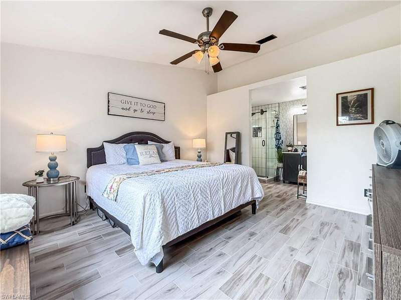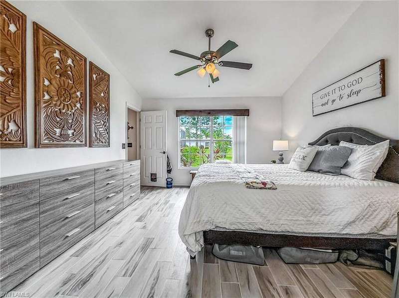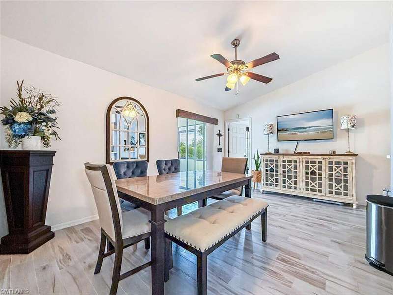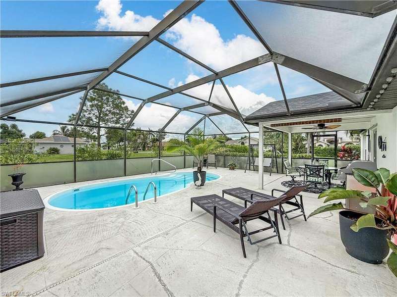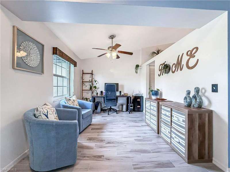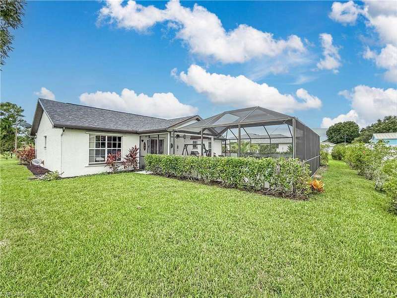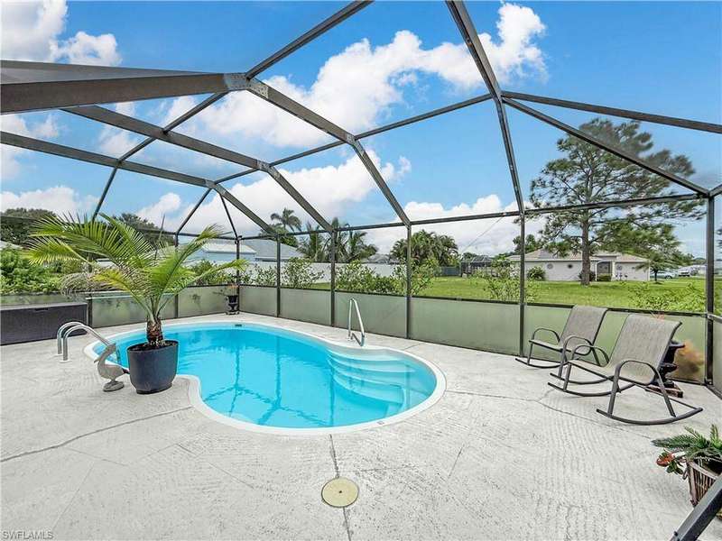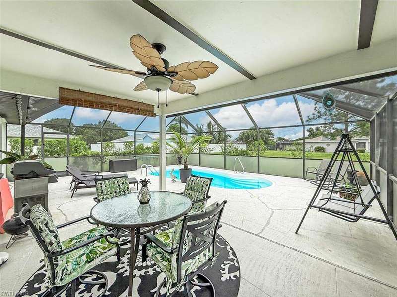 Discover your oasis in the heart of Cedarwood, Lehigh Acres. This charming 3 bed plus den, 2-bath pool home blends modern updates with timeless appeal on a spacious corner lot. Beautiful tile flooring flows seamlessly throughout this nearly 1300 sqft home. Both bathrooms have been fully renovated with sleek quartz countertops, offering a fresh and elegant touch. The home also features a brand-new appliance package added within the last year, an in-house laundry, a spacious two-car garage, and a screened lanai perfect for relaxing or entertaining. Outside, the well-manicured lawn and thoughtfully designed landscaping enhance the home's curb appeal. Recent upgrades include a new roof (2023) and a newer AC system (2021), ensuring comfort and peace of mind. This property is on city water and sewer and uses a well for irrigation, offering efficiency and convenience. Located in a non-gated community, in a non-flood zone, with no HOA fees, this home provides freedom and ease of living. Enjoy the Florida lifestyle with a sparkling pool, lush surroundings, and outdoor spaces ready for gatherings, quiet mornings, or sunset evenings.