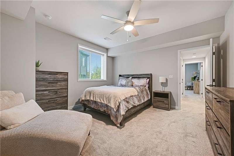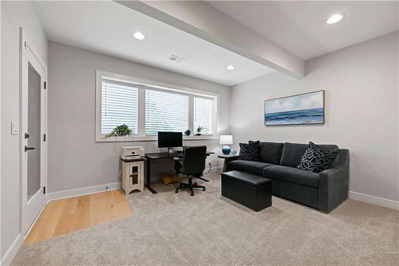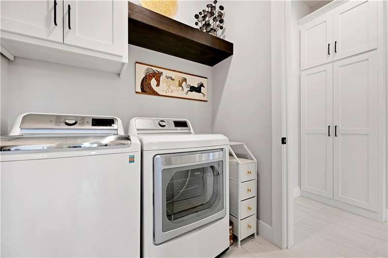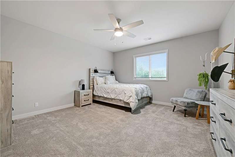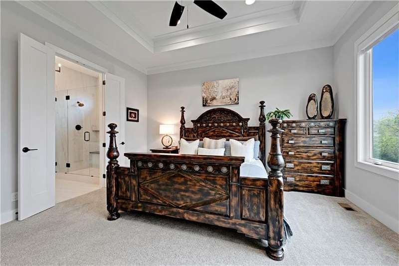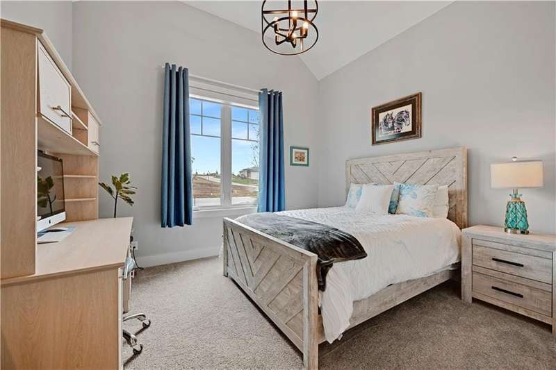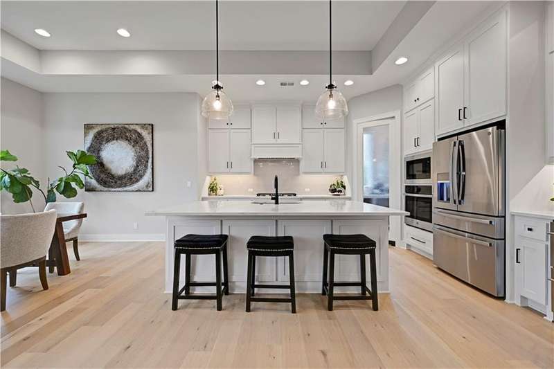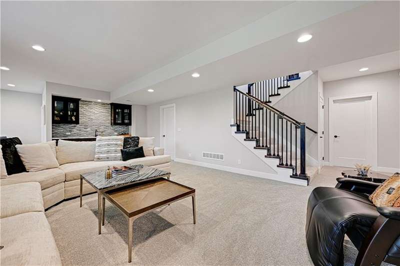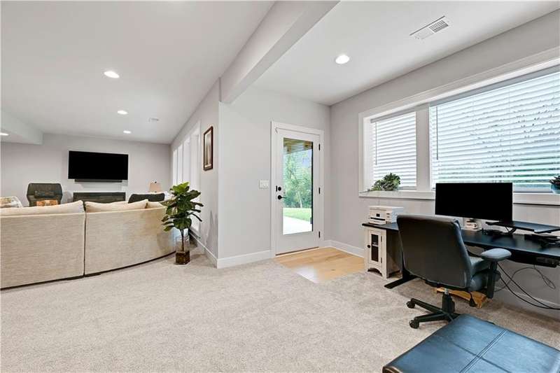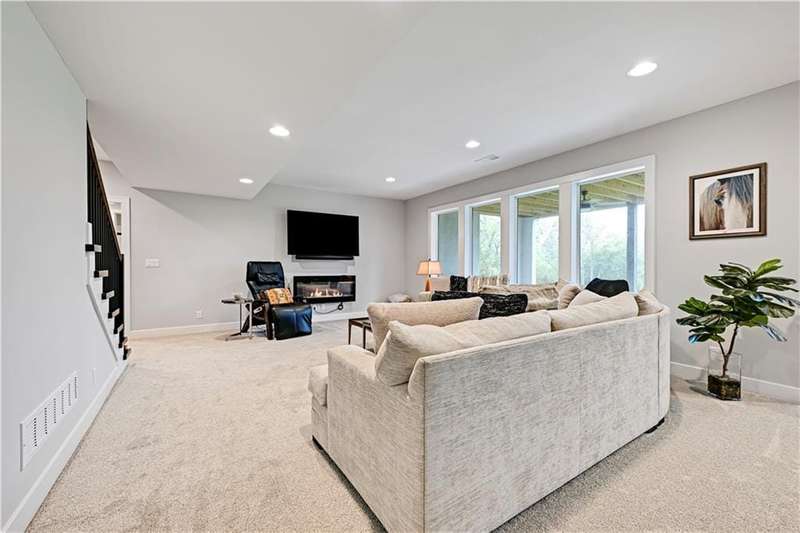 Tucked on a huge private walkout lot with mature trees and surrounded on 3 sides by green space, this expanded Avala reverse by JS Robinson offers easy main-level living at the Villas at Hidden Lake in Cedar Creek. Lived in less than a year and better than new, the home includes nearly 1,900 sq ft on the main floor with a vaulted great room featuring pine beams, a full wall stone fireplace with mantle, accent floating shelves and expansive full-light views. The chefs kitchen offers ceiling-height custom cabinetry, island seating, high end appliances including a built in oven, microwave, gas range, and beverage fridge. The oversized pantry has a rain glass swing door, coffee bar with display shelves and a huge window adding light to the entire kitchen. The large covered deck off the expanded open dining area offers a private and peaceful spot for taking in the amazing backyard and Kansas sunsets. Wide stairs open to the beautiful walkout lower level ideal for entertaining with a large family room, wet bar, wine/storage room, game area, and two additional bedrooms that share a jack and jill bath with large shower. A Sonos sound system serves the interior as well as both the covered deck and lower patio, creating a seamless indoor/outdoor experience. The backyard feels private and natural, with upgraded landscaping including added aspen and maple trees and boulders.A Vivint security system is already installed, and maintenance is easy with lawn care and snow removal included.