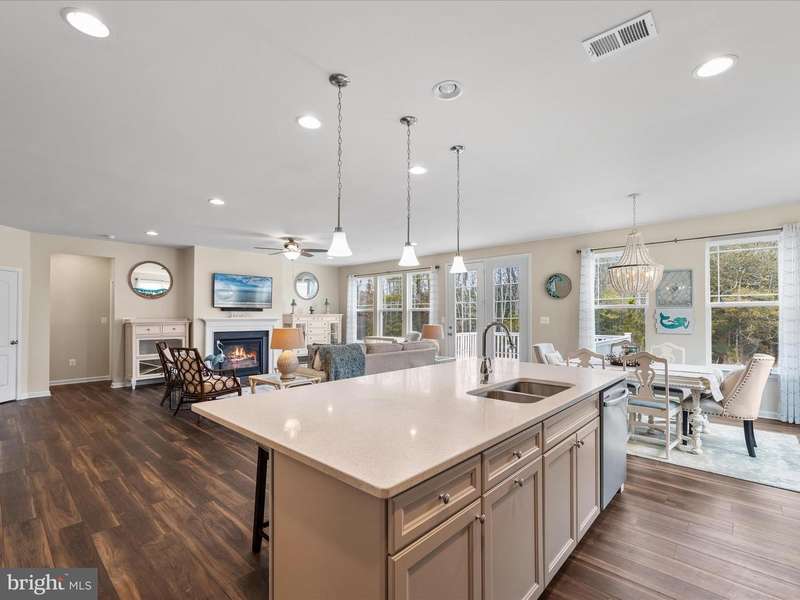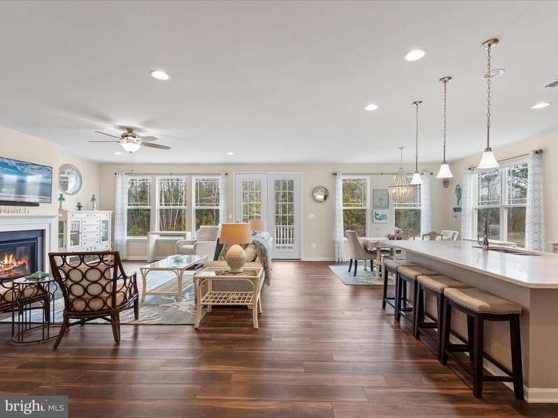 This must-see, like-new single-level home is meticulously maintained and backs to a serene, wooded lot, offering privacy and peaceful views. Step inside to discover a light-filled interior with a neutral color palette and durable modern plank flooring, creating a timeless and welcoming atmosphere. The impressive foyer leads to an open-concept living space, perfect for effortless entertaining. The gourmet kitchen is a chef's delight, featuring 42""Â? soft-close cabinetry, stunning quartz countertops, Samsung stainless steel appliances, and a walk-in pantry for ample storage. A large island with a deep undermount double sink and built-in dishwasher doubles as a gathering spot for casual meals or refreshments with guests. The space seamlessly flows into the dining area and a spacious living room, complete with a cozy gas fireplace and expansive picture windows framing the lush outdoor views. An atrium door leads to a low-maintenance composite deck, ideal for alfresco dining or relaxing in the warmer months. Retreat to the primary suite, a private oasis with a completely renovated ensuite bath. The spa-like bath boasts a dual-sink vanity, a custom stall shower with bench seating, and a private water closet. Two generous walk-in closets complete the suite. Off the foyer, two well-appointed guest bedrooms offer comfort and privacy, served by a beautifully designed hall bath. A nearby home office, enclosed by elegant French doors, creates the perfect work-from-home space. A powder bath is conveniently located near the mudroom and a fully equipped laundry room. The mudroom provides access to the spacious, insulated 2-car garage with a mini-split system and side exit door. Leased solar panels add energy efficiency, and a flat-screen TV conveys with the home. Located in Seabrook, known for its low HOA fees and exceptional amenities, this home offers lawn care, snow removal, trash service, and access to a community pool. Situated in the Long Neck area of Millsboro, Seabrook is just minutes from the renowned Rehoboth Beach, as well as shopping, dining, and entertainment options. Don't miss this incredible opportunity to own a beautiful home in an unbeatable location!