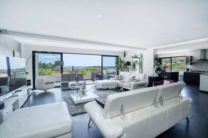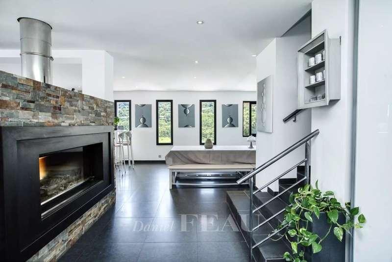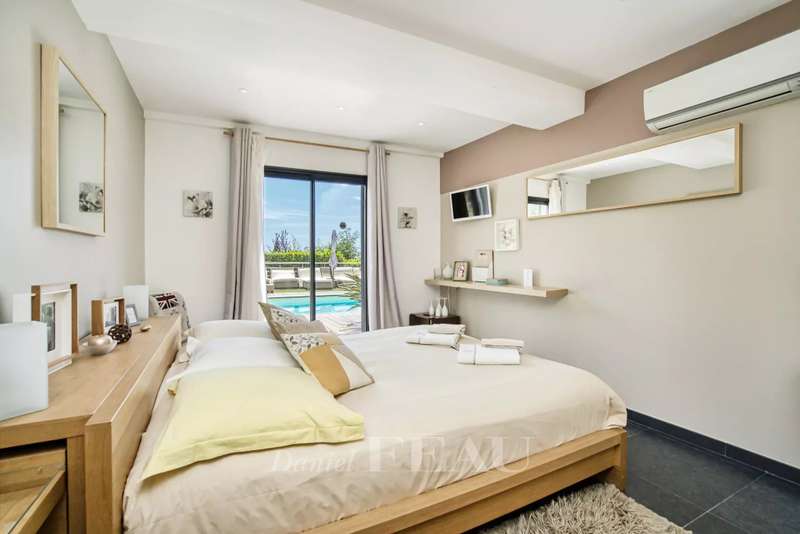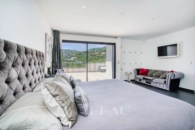 This 380 sqm contemporary property set in over 2000 sqm of grounds is in a prime location between Saint-Tropez and Le Lavandou. It includes a superb living/reception room benefiting from wide patio windows enjoying sea views, two bedrooms and a bathroom. The upper floor comprises a master suite with a shower room and a spacious dressing room opening onto a terrace commanding a panoramic view of leafy greenery and the sea. Five bedrooms all with shower rooms are on the garden level. With a self-contained apartment. The garden features a swimming pool and a boules pitch. A superb property in a sought-after neighbourhood near the shops and beaches.