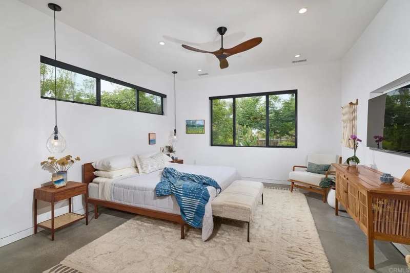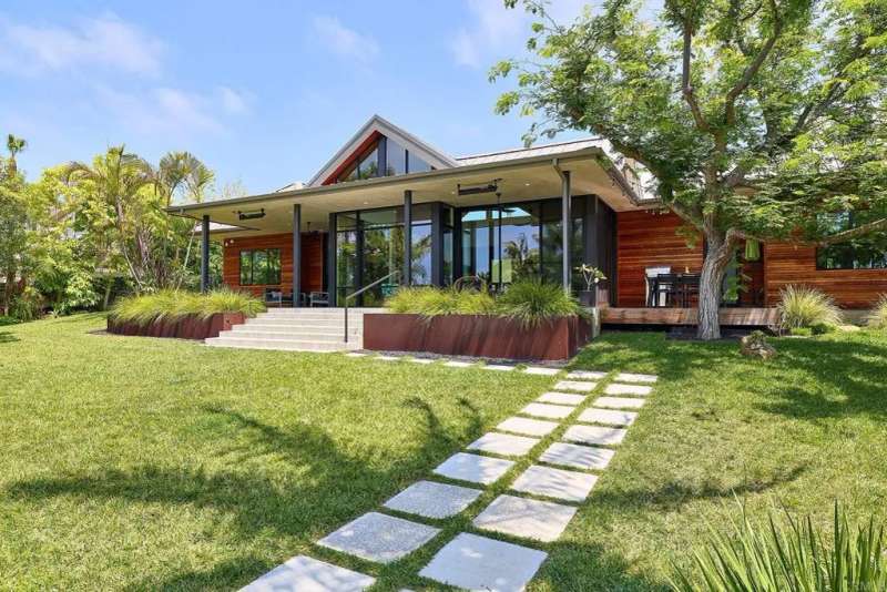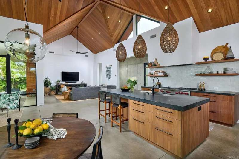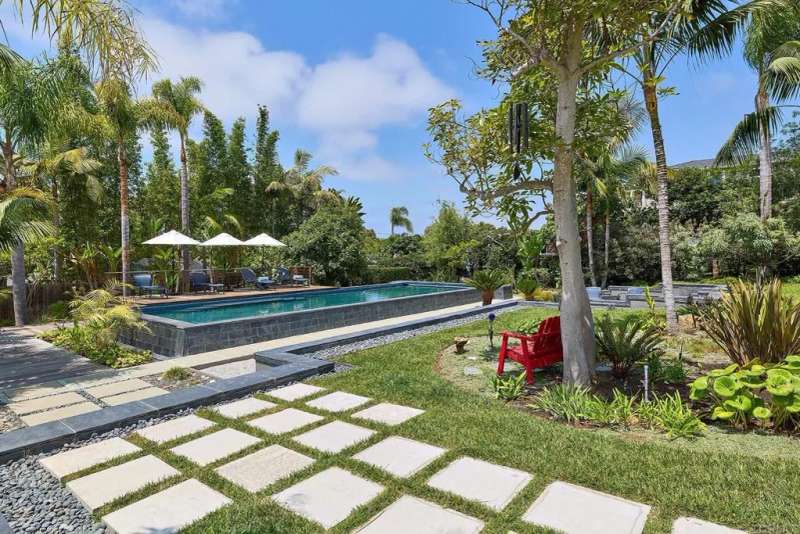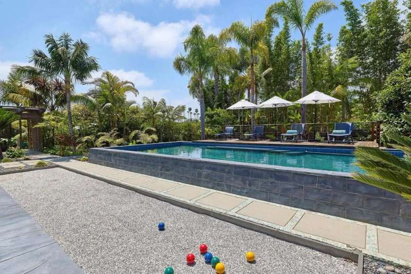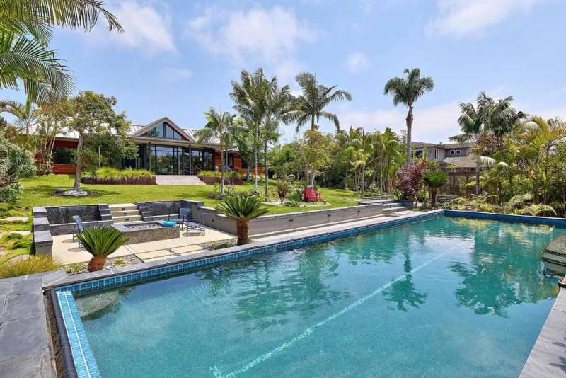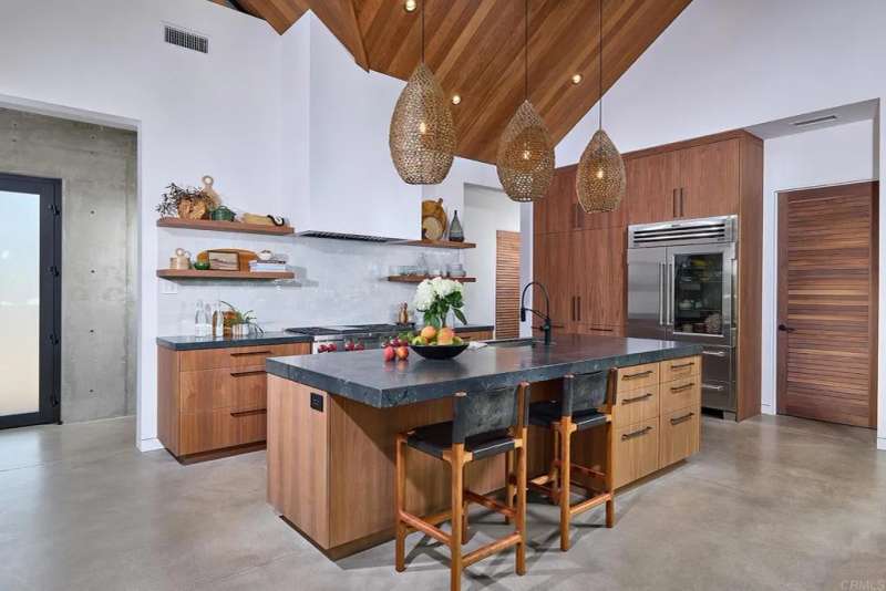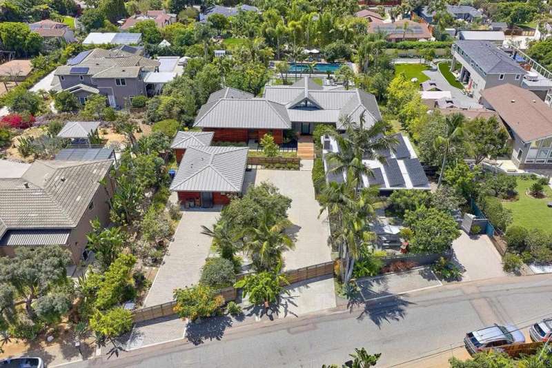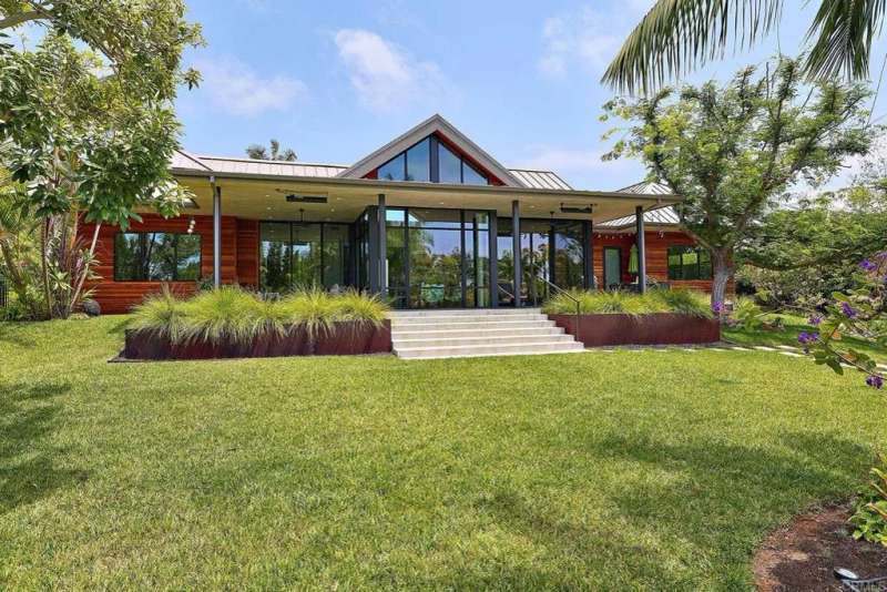 A rare offering, this secluded gated -acre estate is a Contemporary Hawaiian-inspired sanctuary blending resort-style living, sustainable design, and uncompromising craftsmanship. The 2,571-square-foot main residence features two grand bedroom suites and spa-like baths, complemented by a detached 1,624-square-foot ocean-view guest bungalow with two additional bedrooms and baths. A separate private office and a detached garage, already plumbed with a half bath, expand the propertys flexibility and future potential. Designed for both intimate living and extravagant entertaining, the home centers around a striking chefs kitchen with Sub-Zero and Wolf appliances, honed black granite, and a walk-in pantry. Walls of glass and soaring Epi wood ceilings create seamless indoor-outdoor flow to covered lanais, lush gardens, and a Balinese-inspired pool with outdoor lounge, waterfalls, firepit, and bale dining. Thoughtful sustainability46 solar panels, EV chargers, chemical-free UV pool, and a whole-home water purification systemcomplements everyday luxuries like a skylit laundry, a curated mud room, surf shower, greenhouse, and mature fruit orchards. A private sanctuary of rare artistry and vision, this estate stands among Southern Californias most distinctive properties.