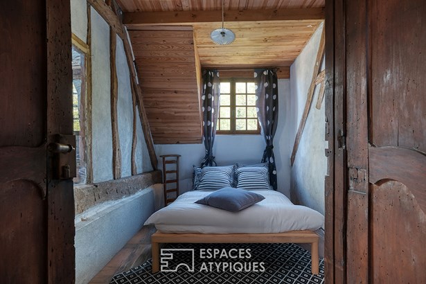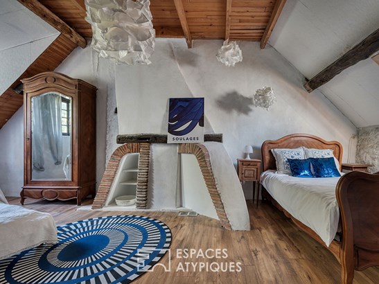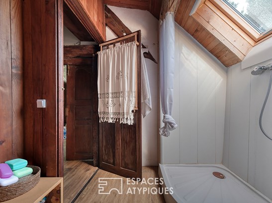 The vast living room on the ground floor, warm and friendly, is organized around a fitted and equipped kitchen, opening onto a dining room and a cozy living room. The wood-burning stove and the fireplace punctuate the seasons and offer moments of comfort. A shower room and a laundry room complete this level.