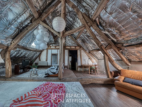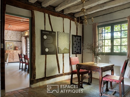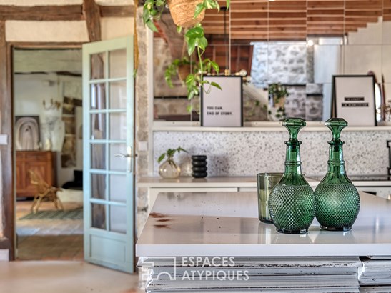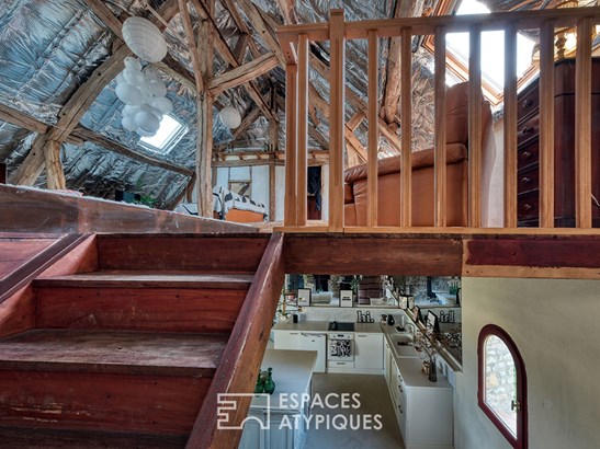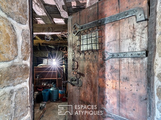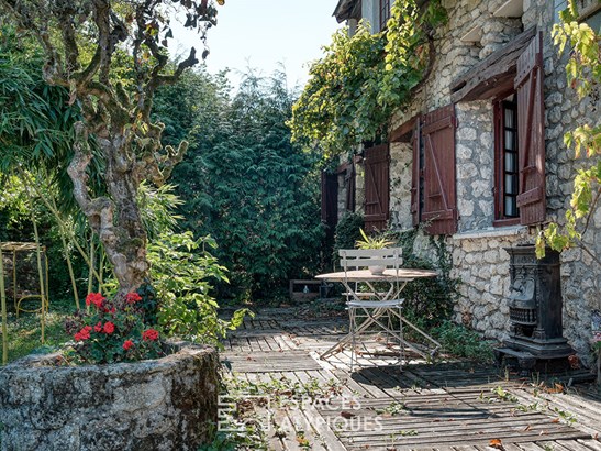 Outside, an enclosed garden houses a workshop, accessible both from the outside and directly from the living space, leaving room for imagination to create a leisure or DIY space.