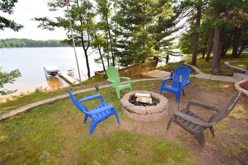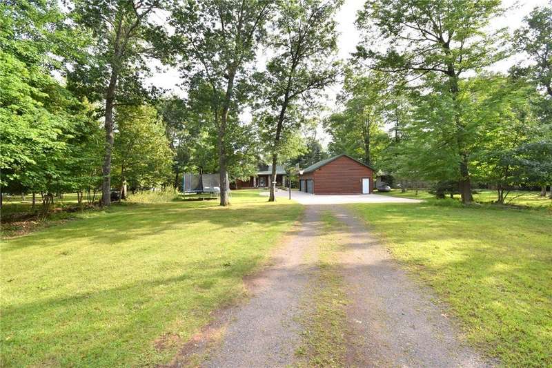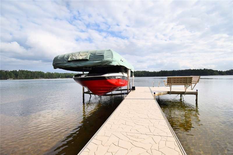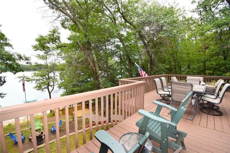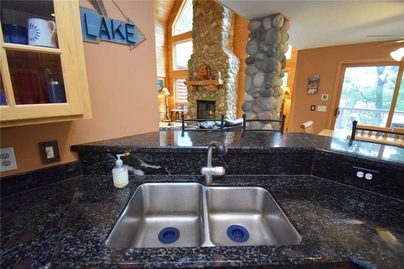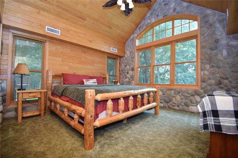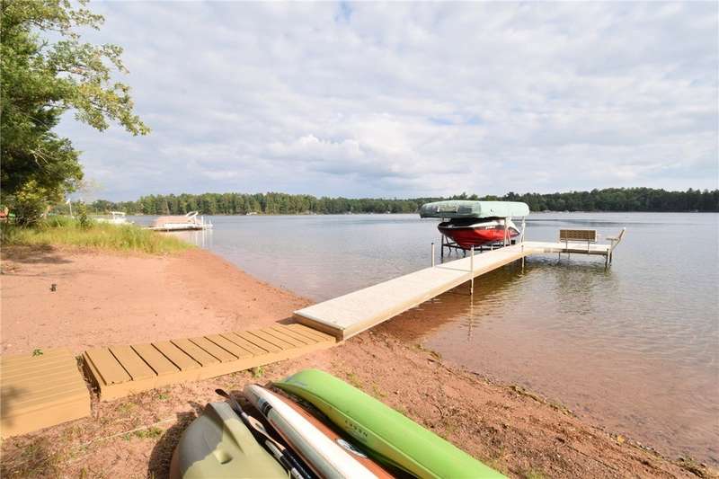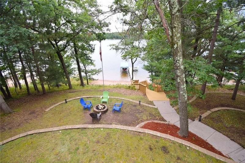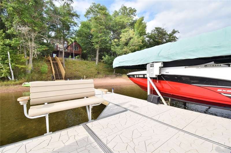 Executive 5 BR, 4 BA log-sided chalet on highly sought-after Long Lake in Webb Lake! This stunning, turn-key property offers 100' of sand beach, crystal-clear water, & southern exposure. Impressive soaring great room with a floor-to-ceiling fieldstone gas fireplace & a wall of glass framing unforgettable views. The kitchen features stainless steel appliances, breakfast bar, & adjoining dining space. Tongue & groove pine, wood floors, spacious entry, & main-floor laundry add warmth & convenience. Private master suite retreat has lakeside deck access, & a spa-like bath with slate tile walk-in shower. Ensuite loft with Jacuzzi tub. Walkout lower level w/wood burning fieldstone fireplace, wet bar, pool table, sauna, & abundant storage. Beautifully landscaped grounds, outdoor shower, firepit & lakeside deck, vacuum in garage. Welcoming covered porch leads to a 4-car insulated/heated garage w/concrete drive & ample parking. Don't miss making this your new northwoods lakeside retreat!